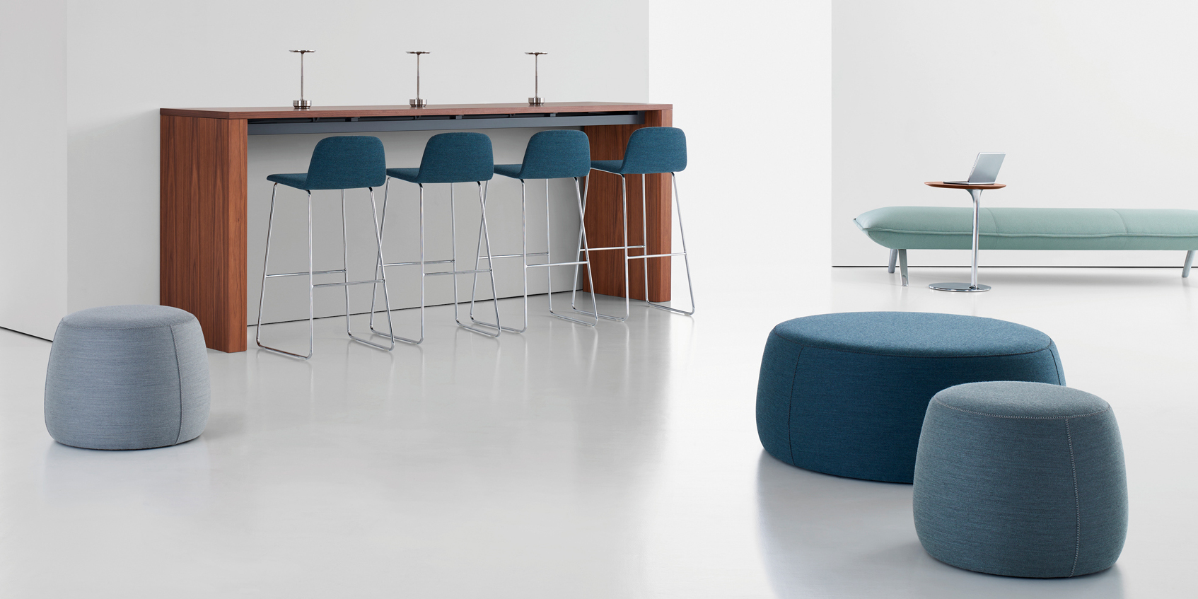 Apel is a family of benches and ottomans created to maximize spontaneous interactions. The collection can be grouped into ‘clusters’ that serve as stationary hubs or used individually as mobile ‘satellites.’ Stylistically versatile and highly customizable, Apel is adaptable to many commercial and residential environments.