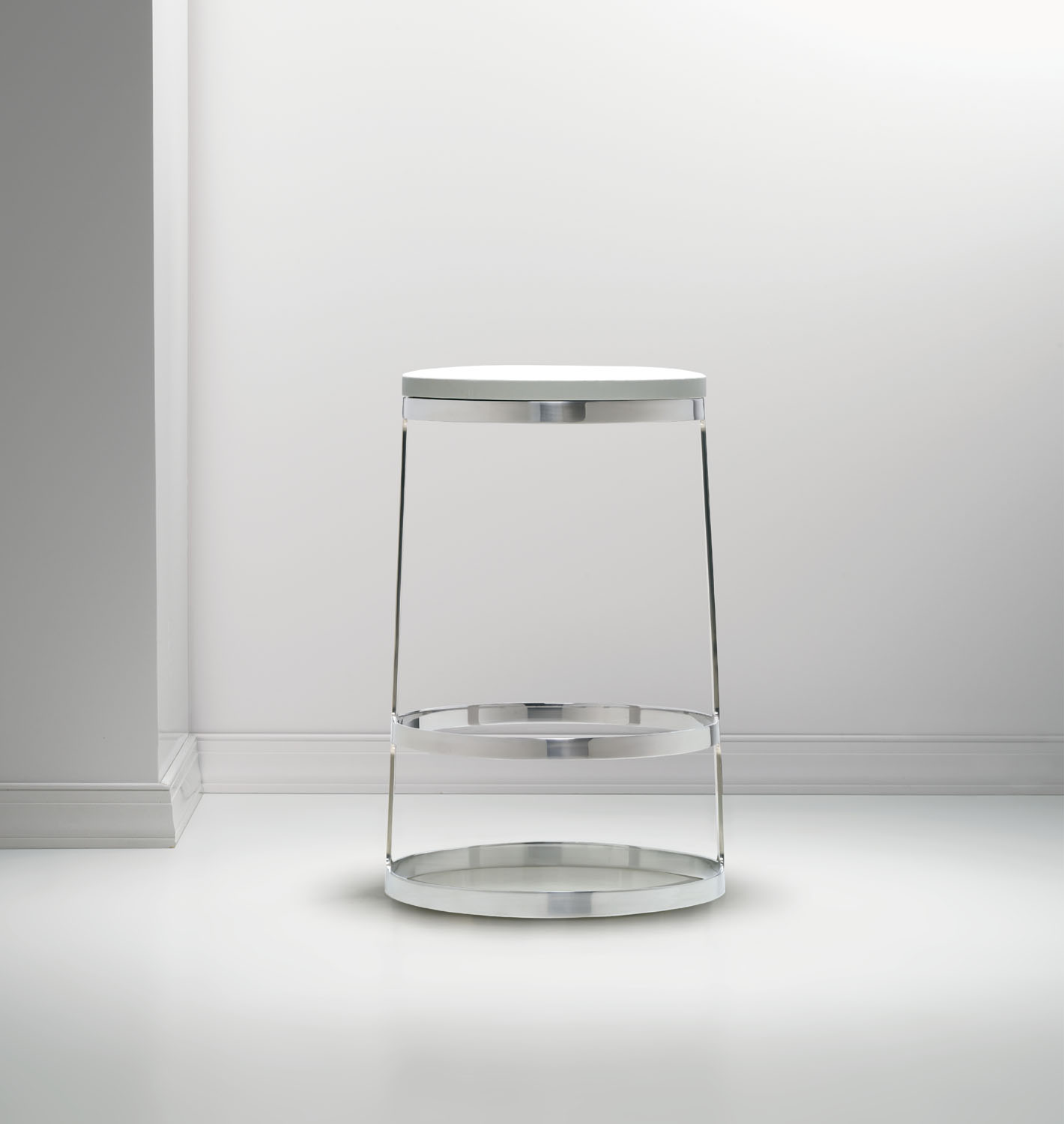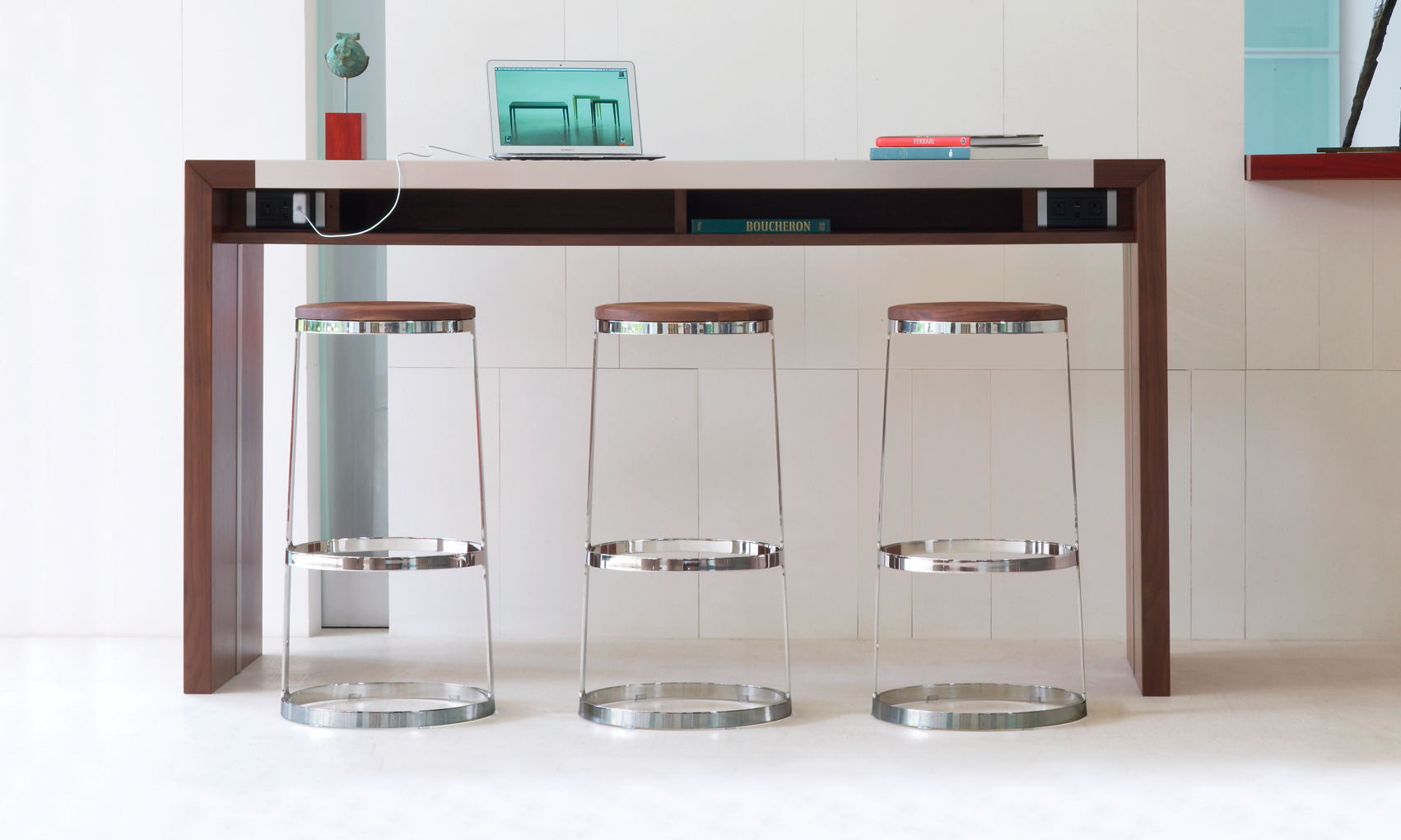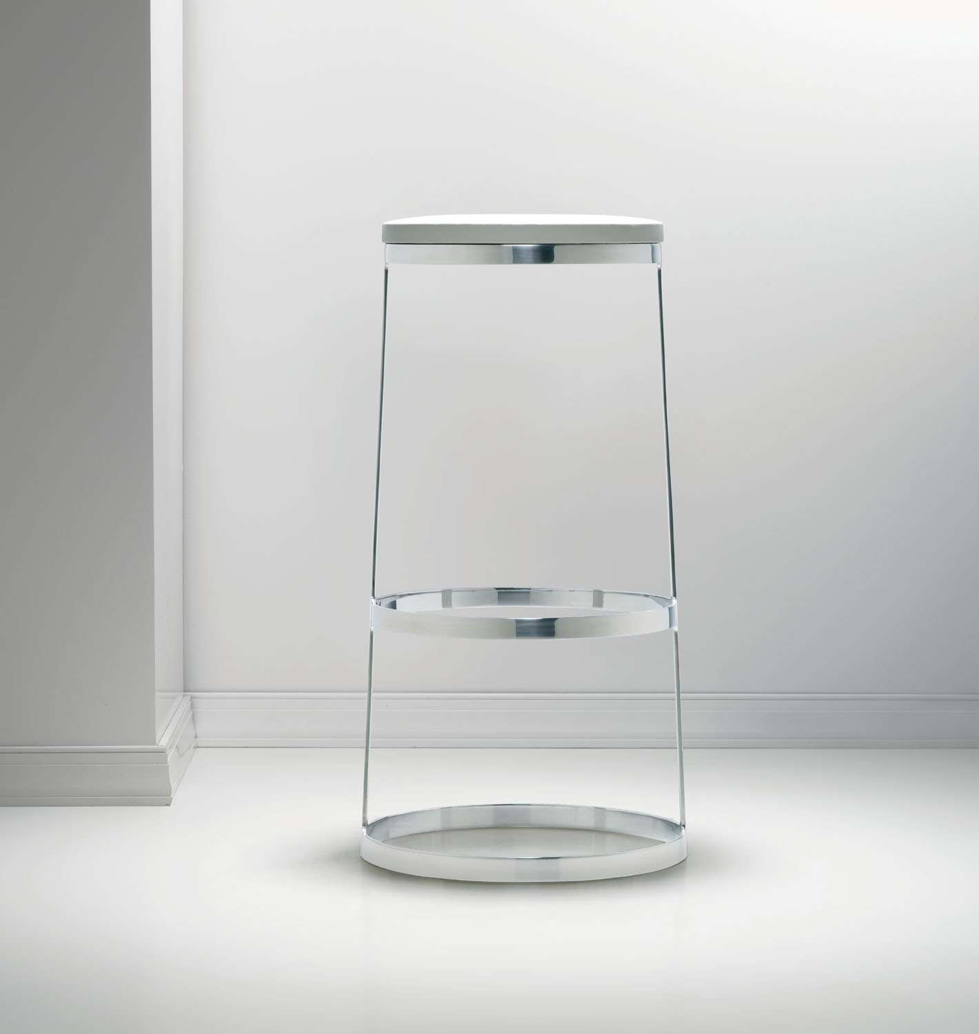 A minimalist icon and engineering marvel, the Aro stool is sophisticatedly simple in form and materials. The solid wood seat with hidden swivel is perched atop an almost impossibly slender base sculpted from a single piece of polished stainless steel. With a choice of seat and height options, the Aro stool stands out at any bar or table.