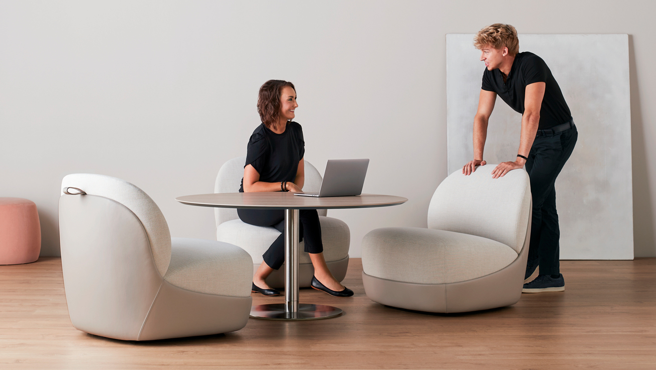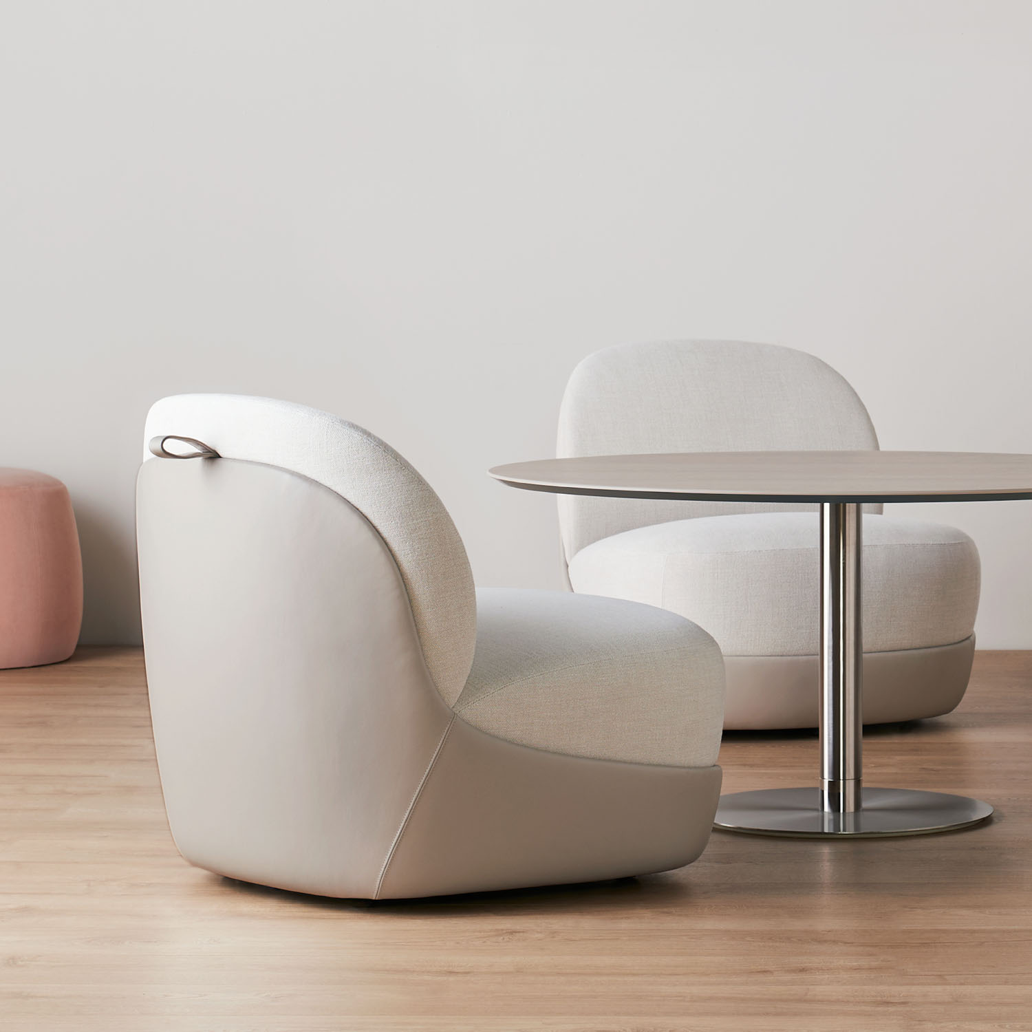 A lounge chair designed for both comfort and practicality, Automatic literally ‘goes where you go,’ with the help of a tailored pull-strap and concealed casters. Its unique design is ideal for today’s open spaces. When the need for privacy arises, the lightweight chair can be easily moved to a quieter space.