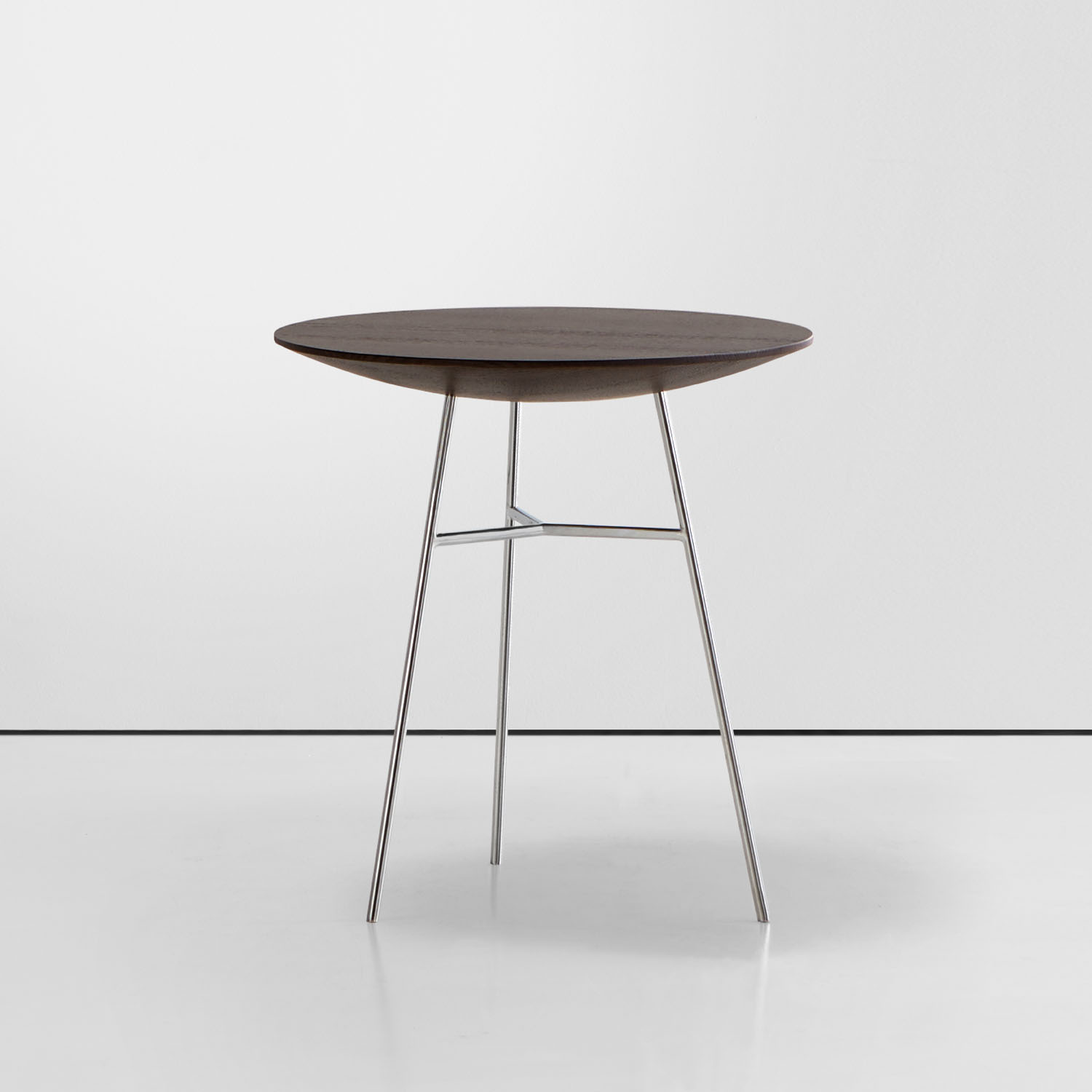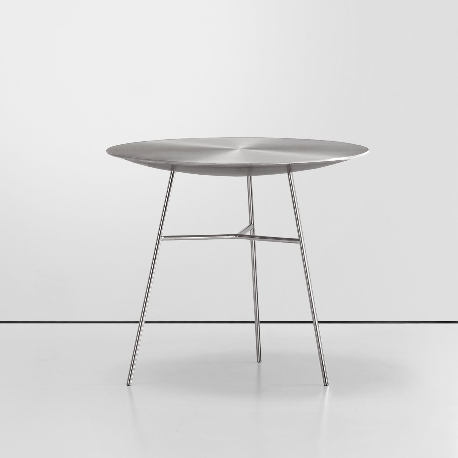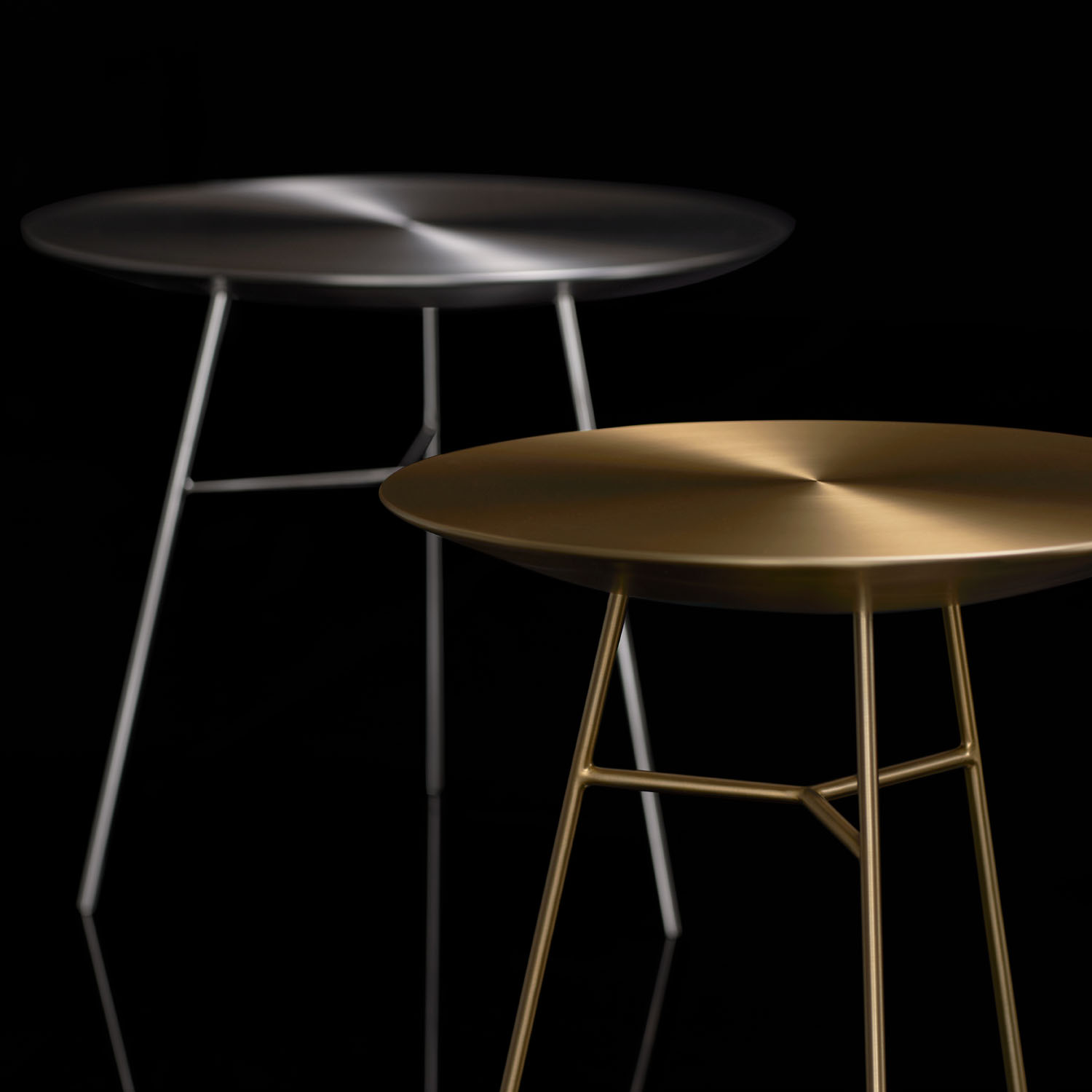 Bassa is an unusual marriage between the futuristic vision of UFO’s and the clean aesthetics of contemporary Scandinavian design. The solid bowl-shaped top contrasts with the thin round legs, heightening the design’s tension. The collection of occasional tables is designed to function individually or as a grouping.