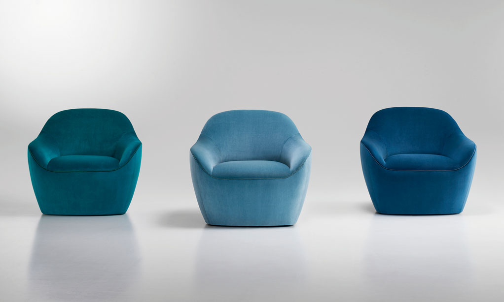 The grouping ranges from club chairs, settees, and sofas to a collection of modular pieces.