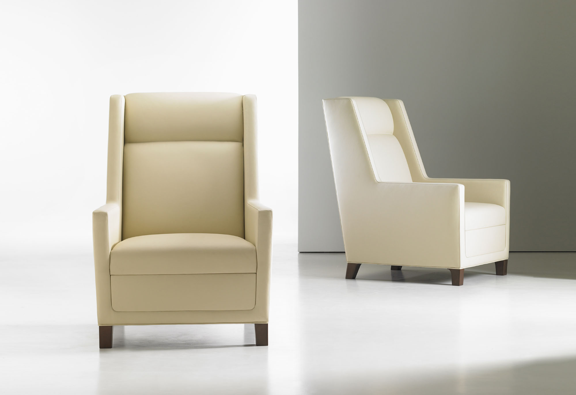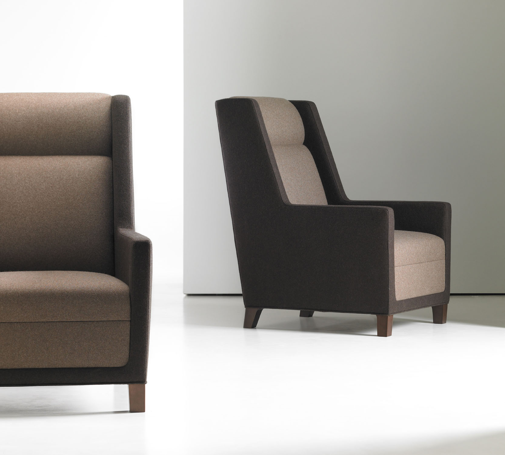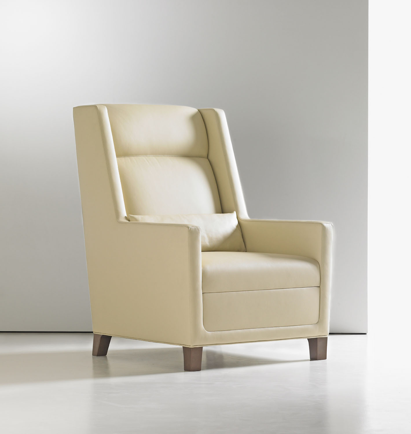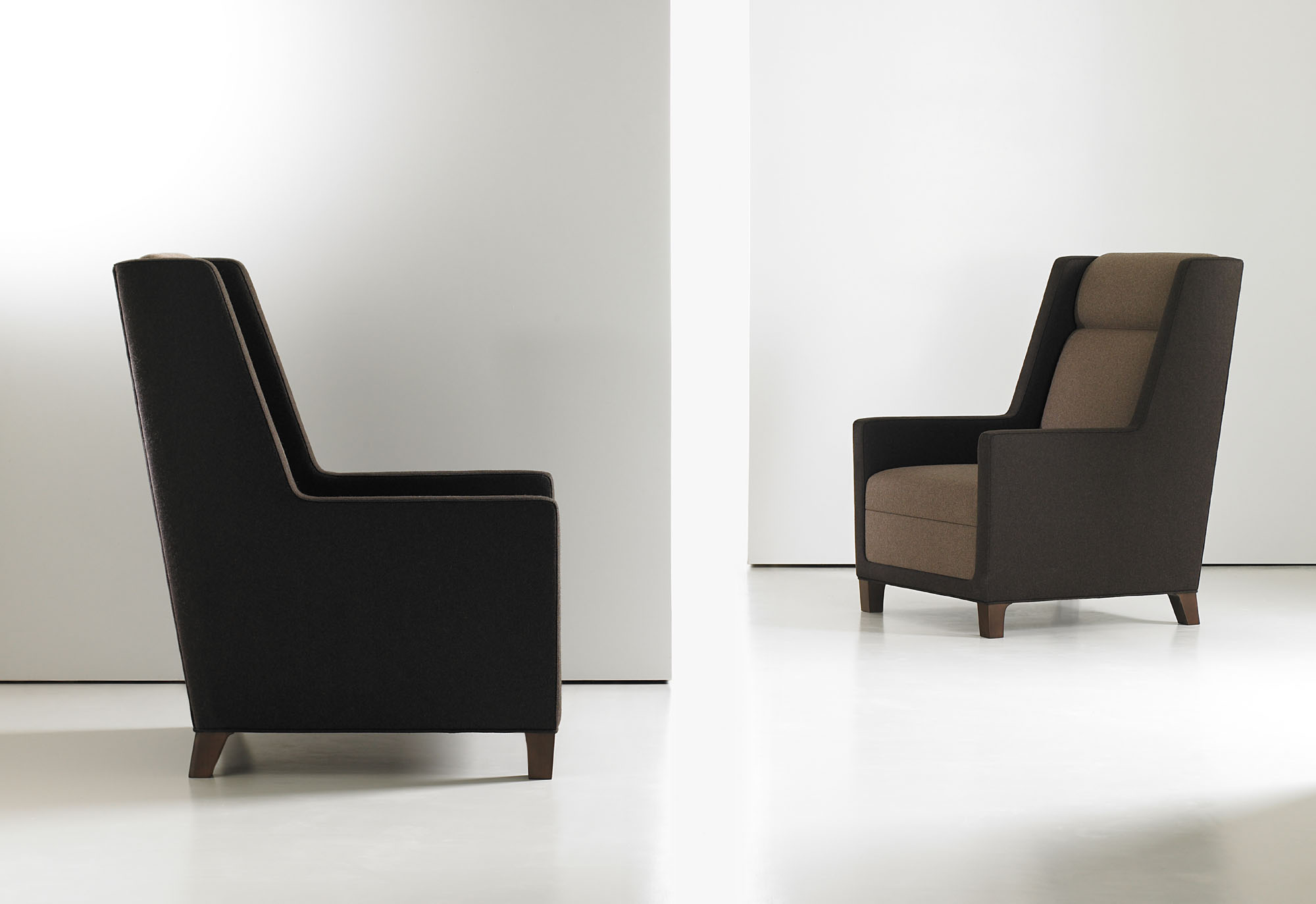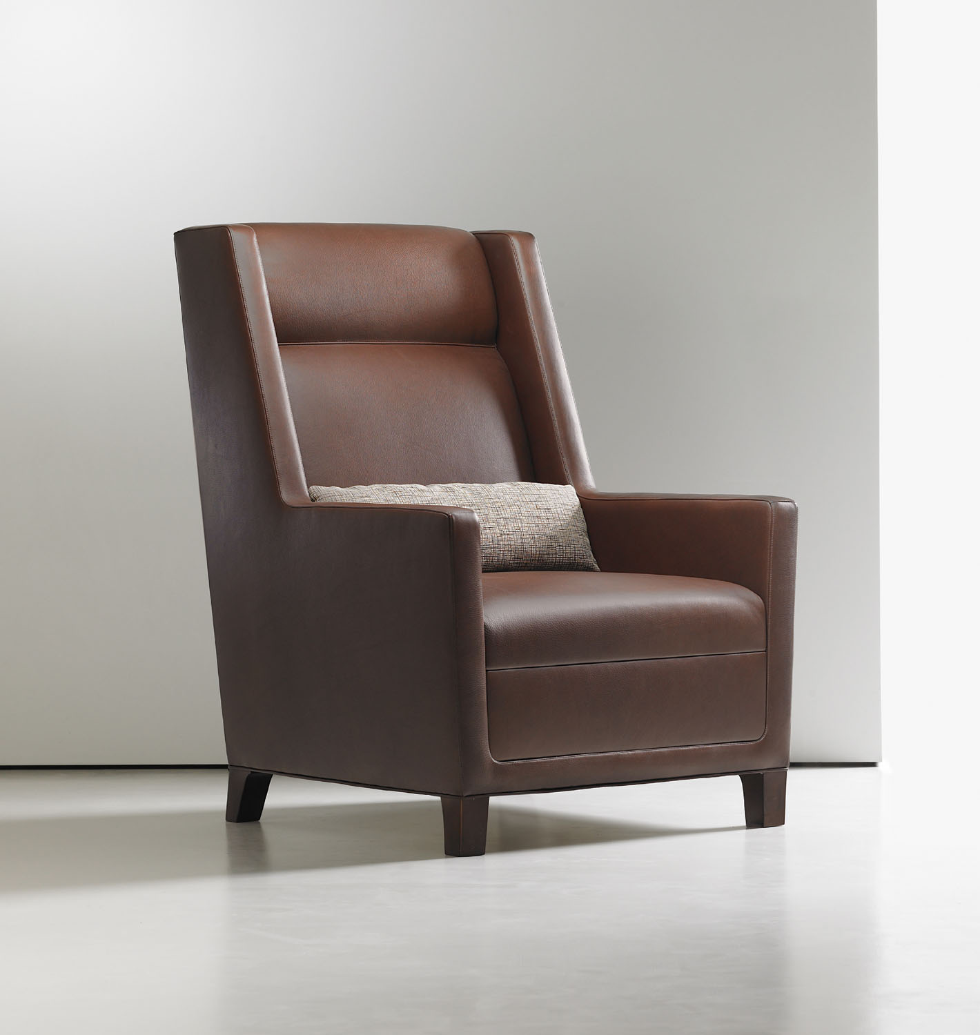 Blaine.02 is a high back lounge chair with a comfortable headrest. As an option, a semi-attached lumbar pillow provides additional back support.
