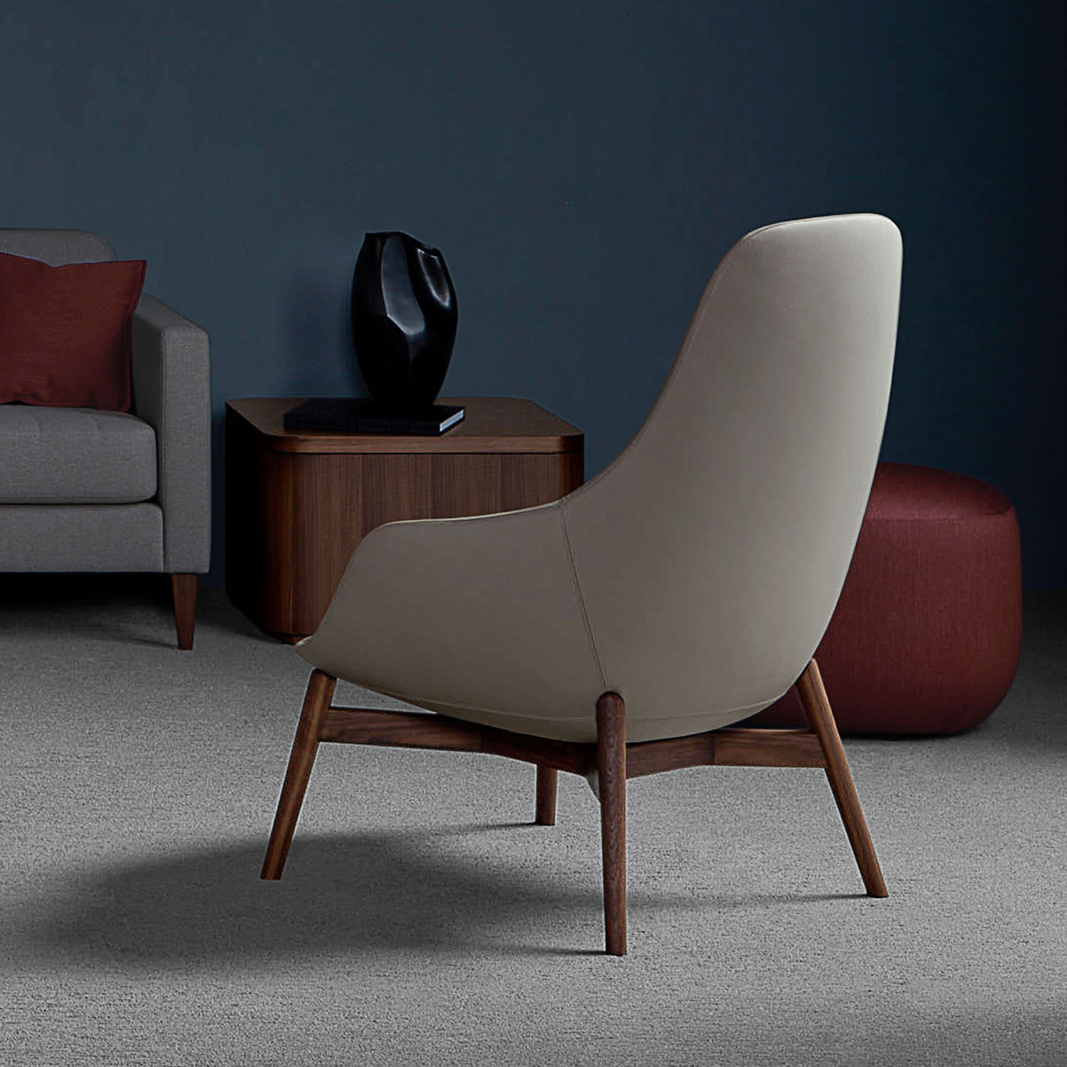 The aesthetic of this lounge speaks the language of simplicity and gracefulness, making Canelle a chair destined to be the focal point of any modern space. Its design accentuates an elongated slender back and gently sloping arms, evoking a visually intriguing silhouette with beautifully tapered lines.