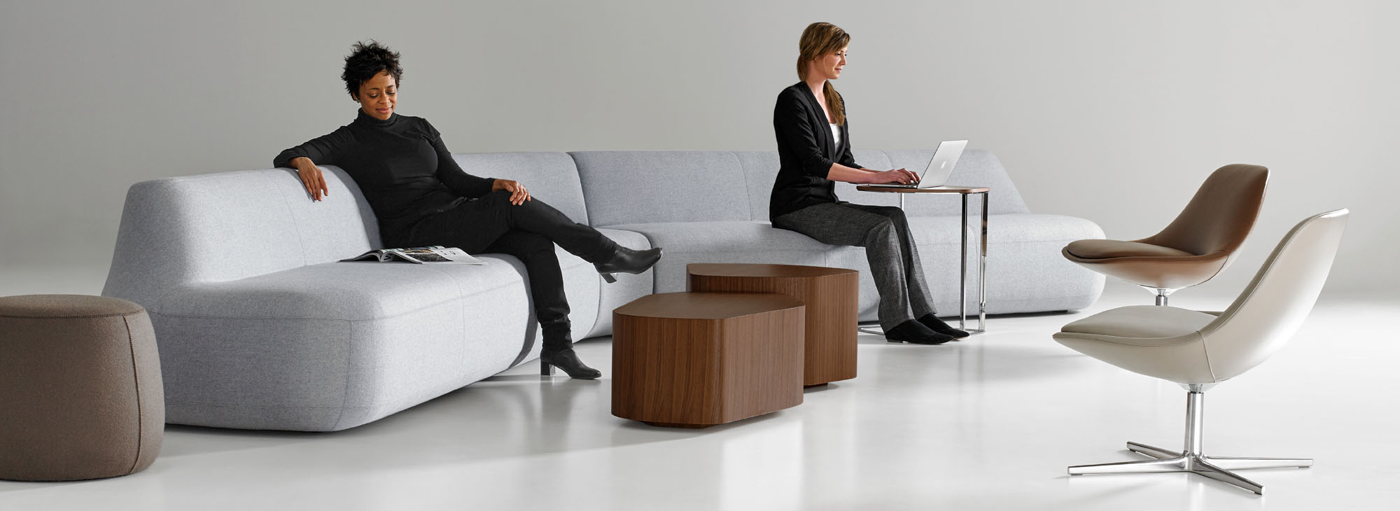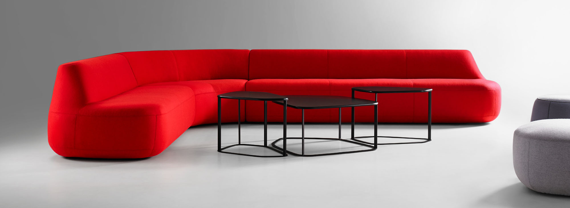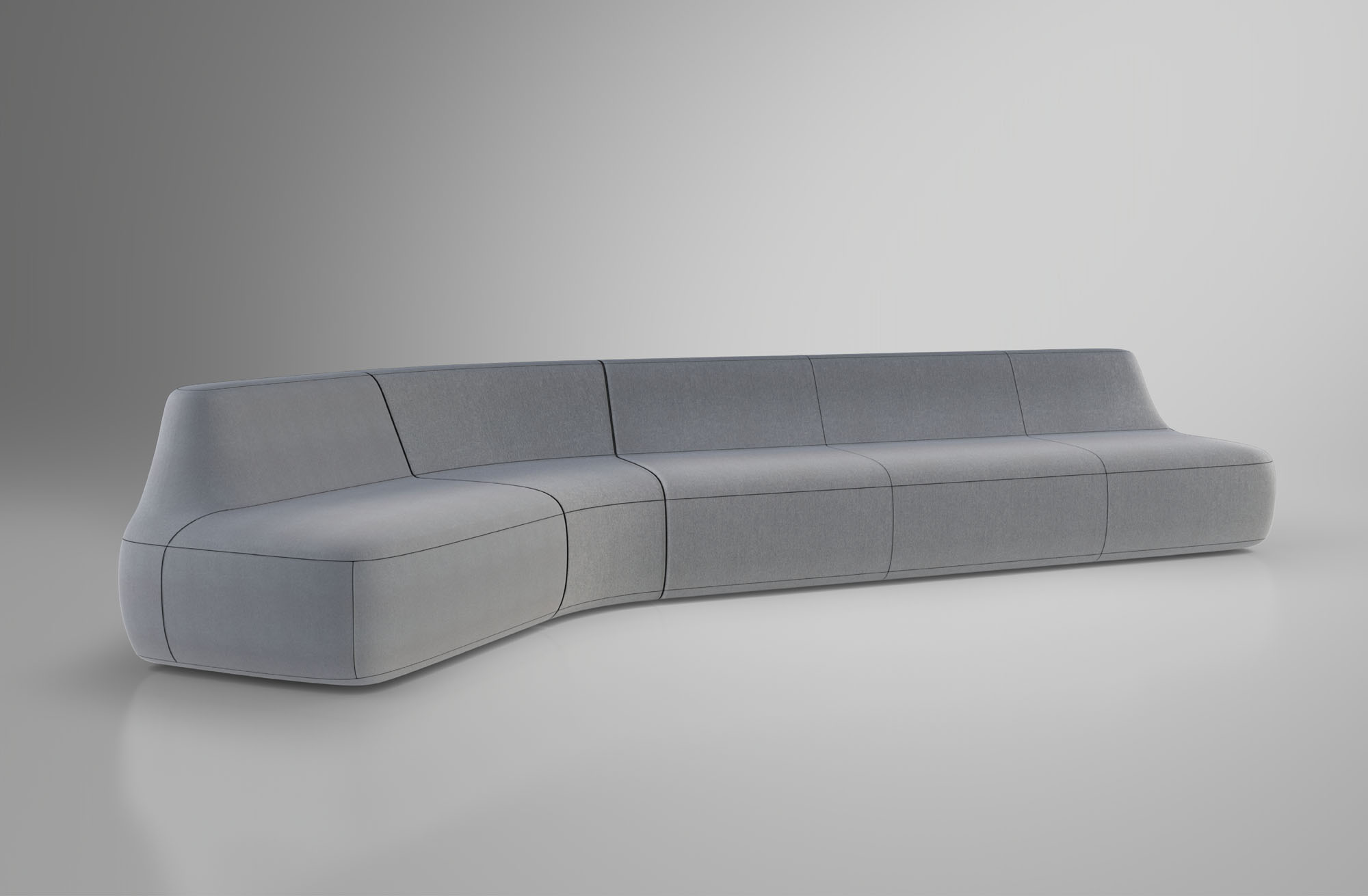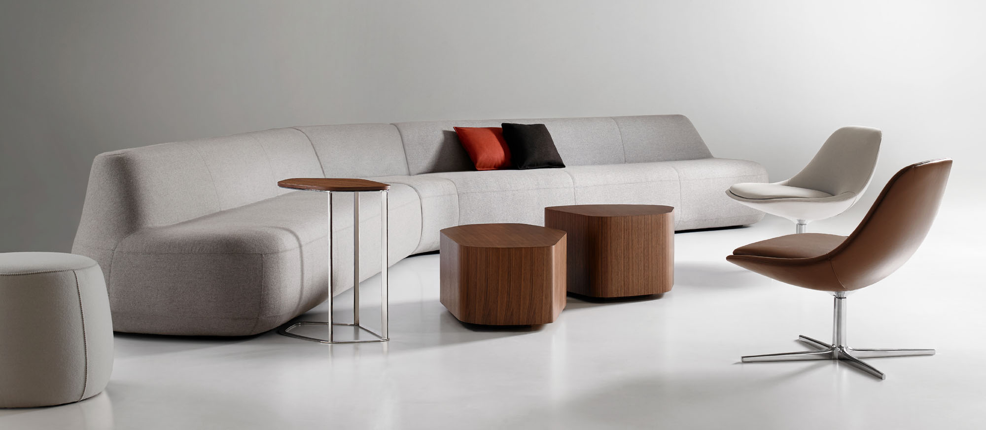 The collection is comprised of modular pieces that work together to create configurations as diverse as a simple loveseat or as unique as a serpentine sofa.