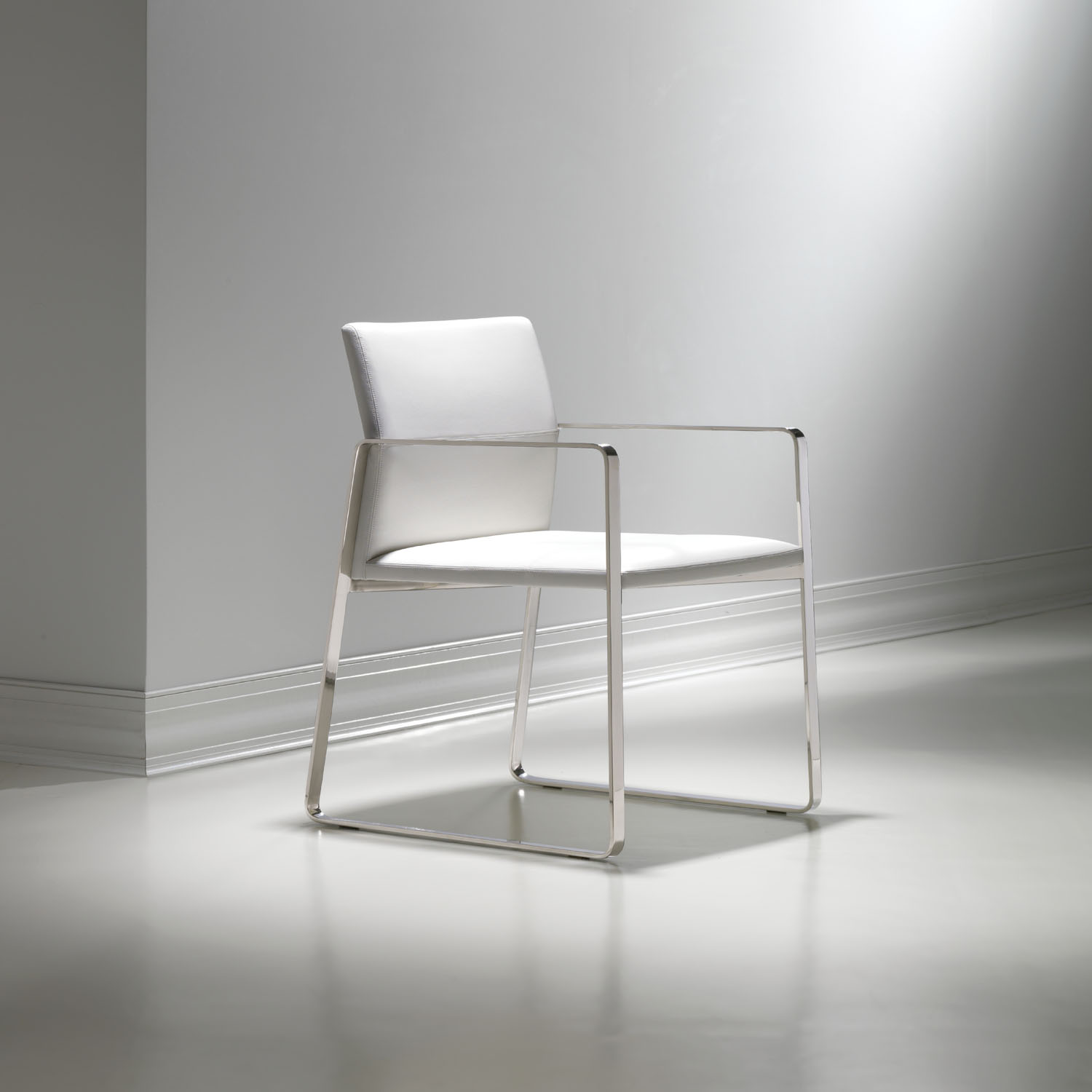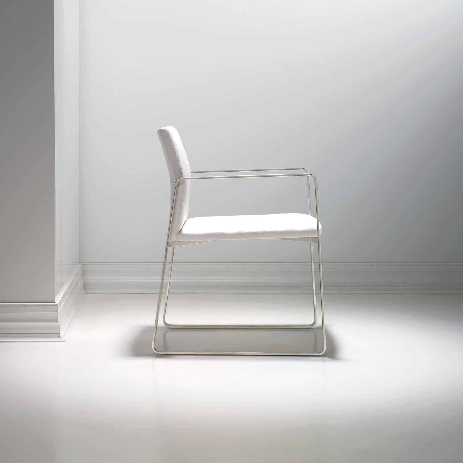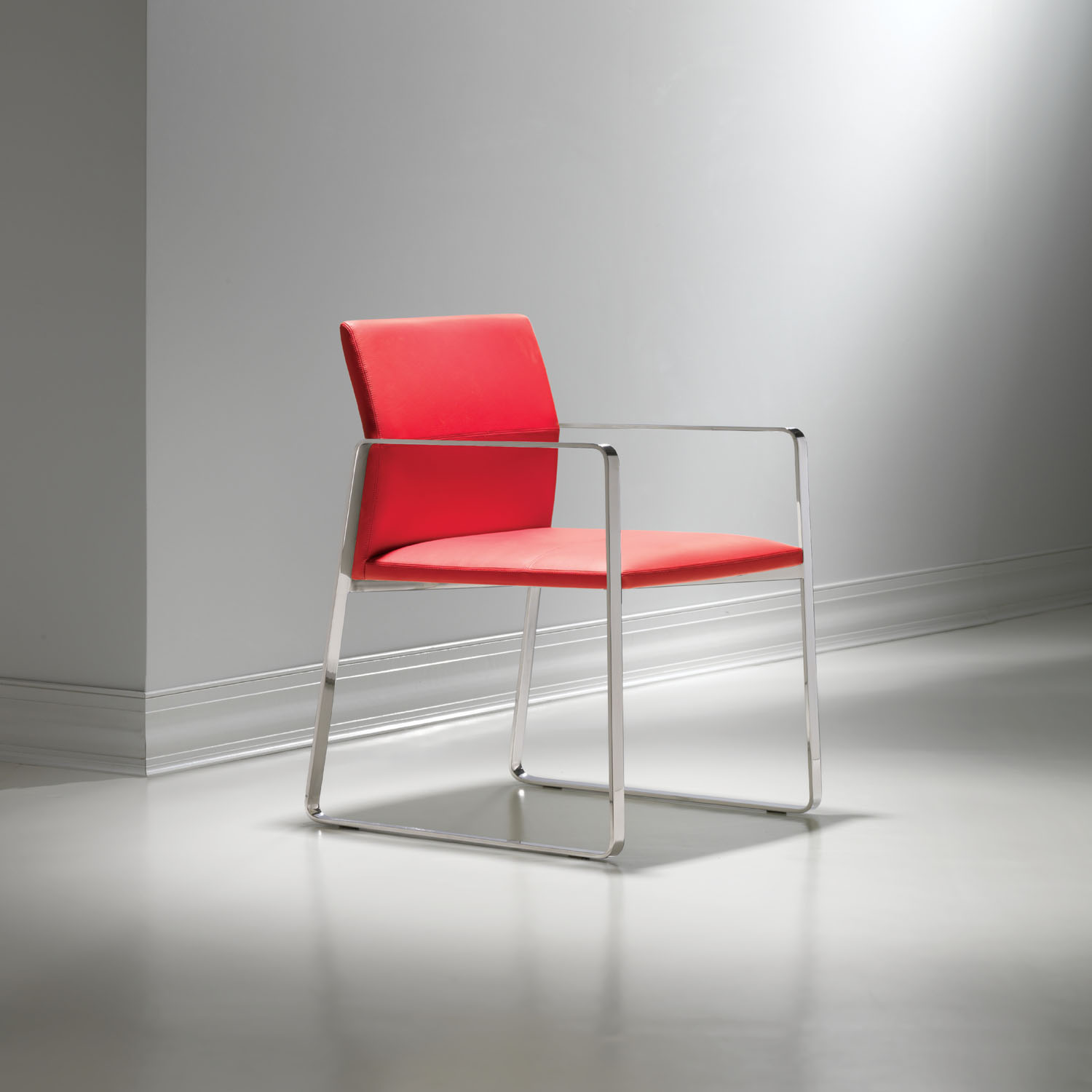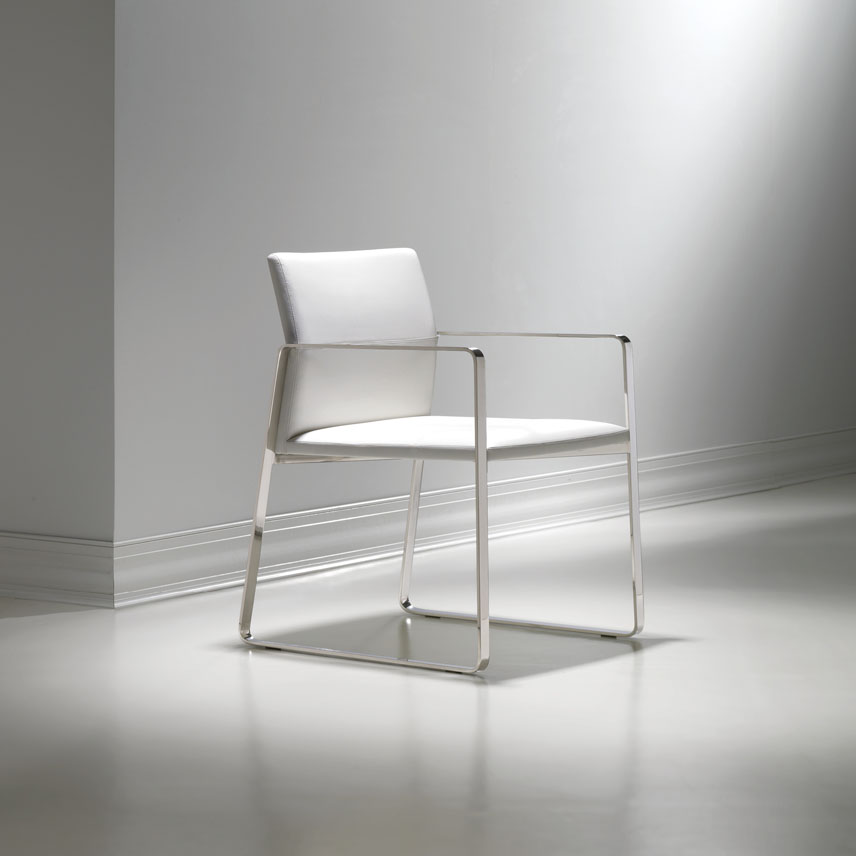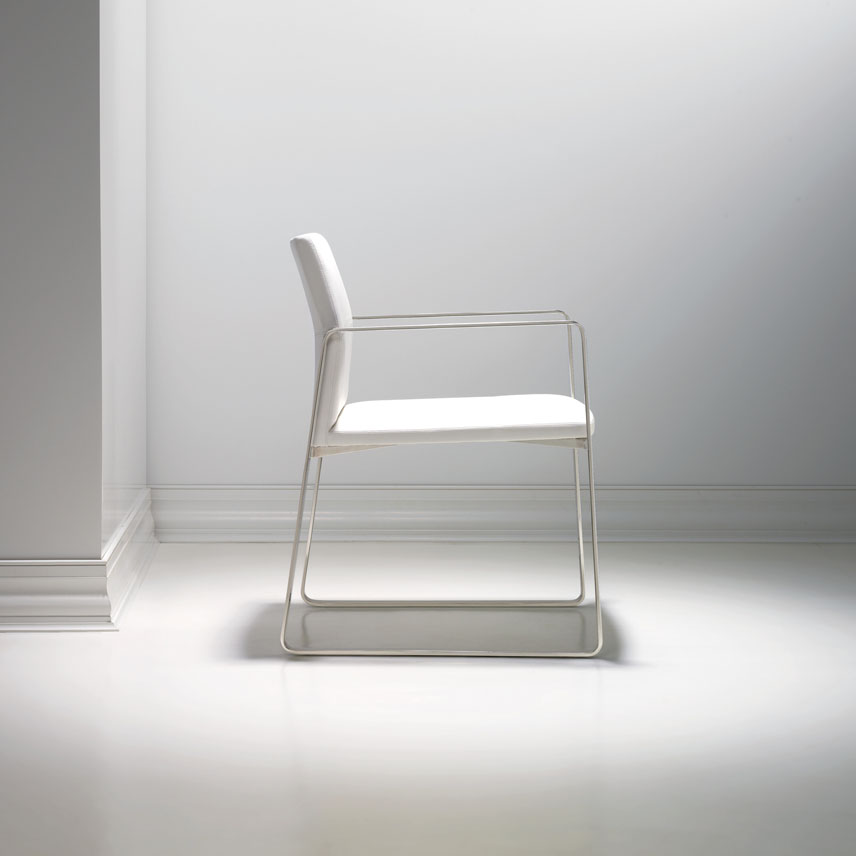 The Celon chair presents the perfect balance of an exposed metal frame with streamlined upholstery, offering an upscale seating option for any environment. The slight angle of the backrest provides ergonomic support and emphasizes the topstitching detail. Though minimal in form, Celon is adaptable in application, from large cafes to smaller, elegant dining areas.
