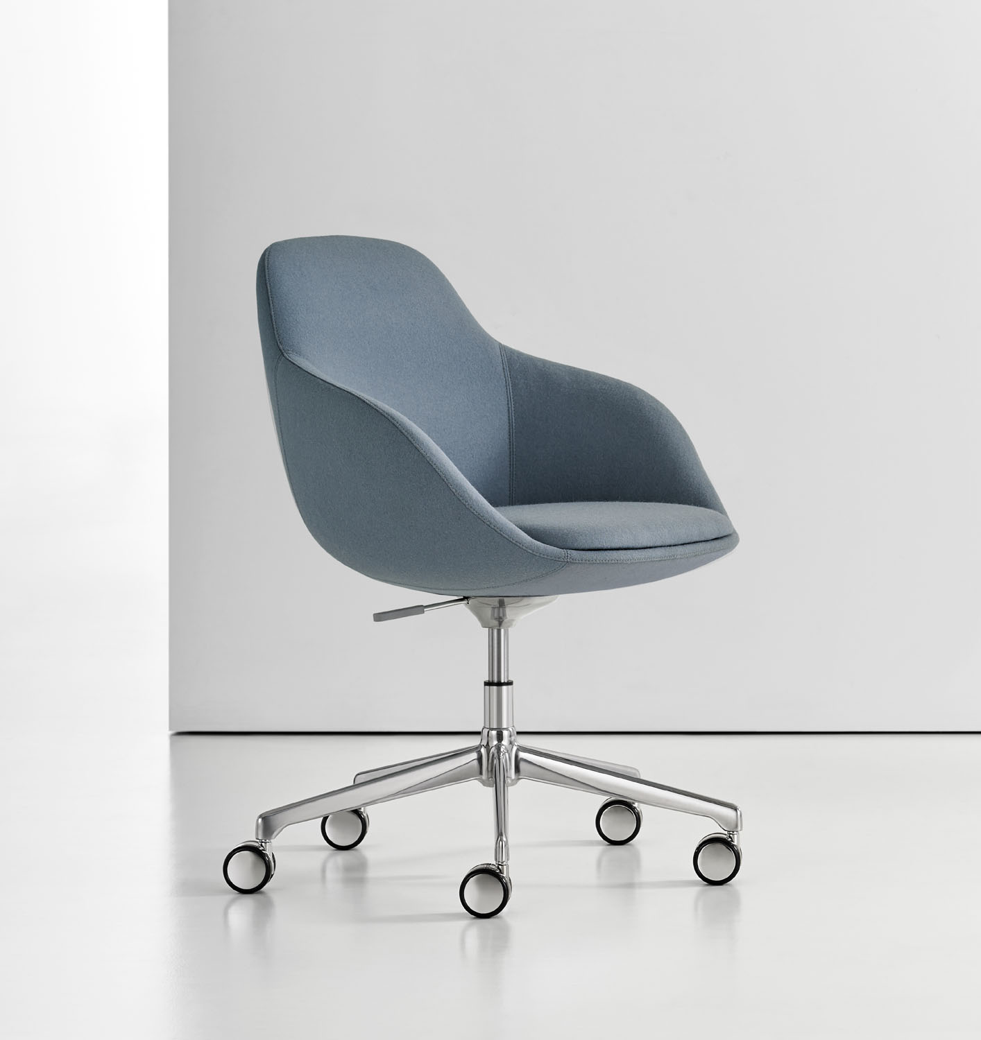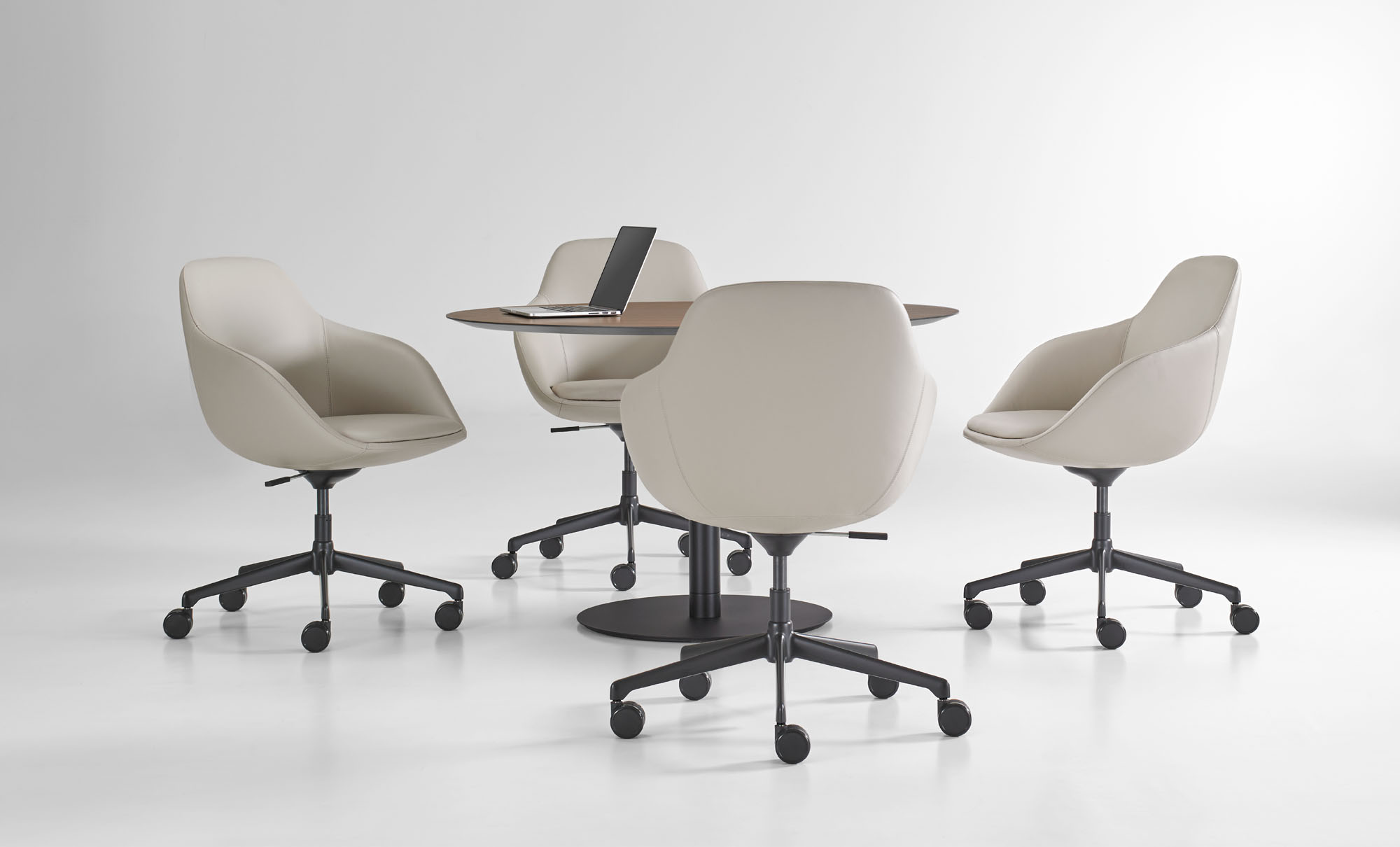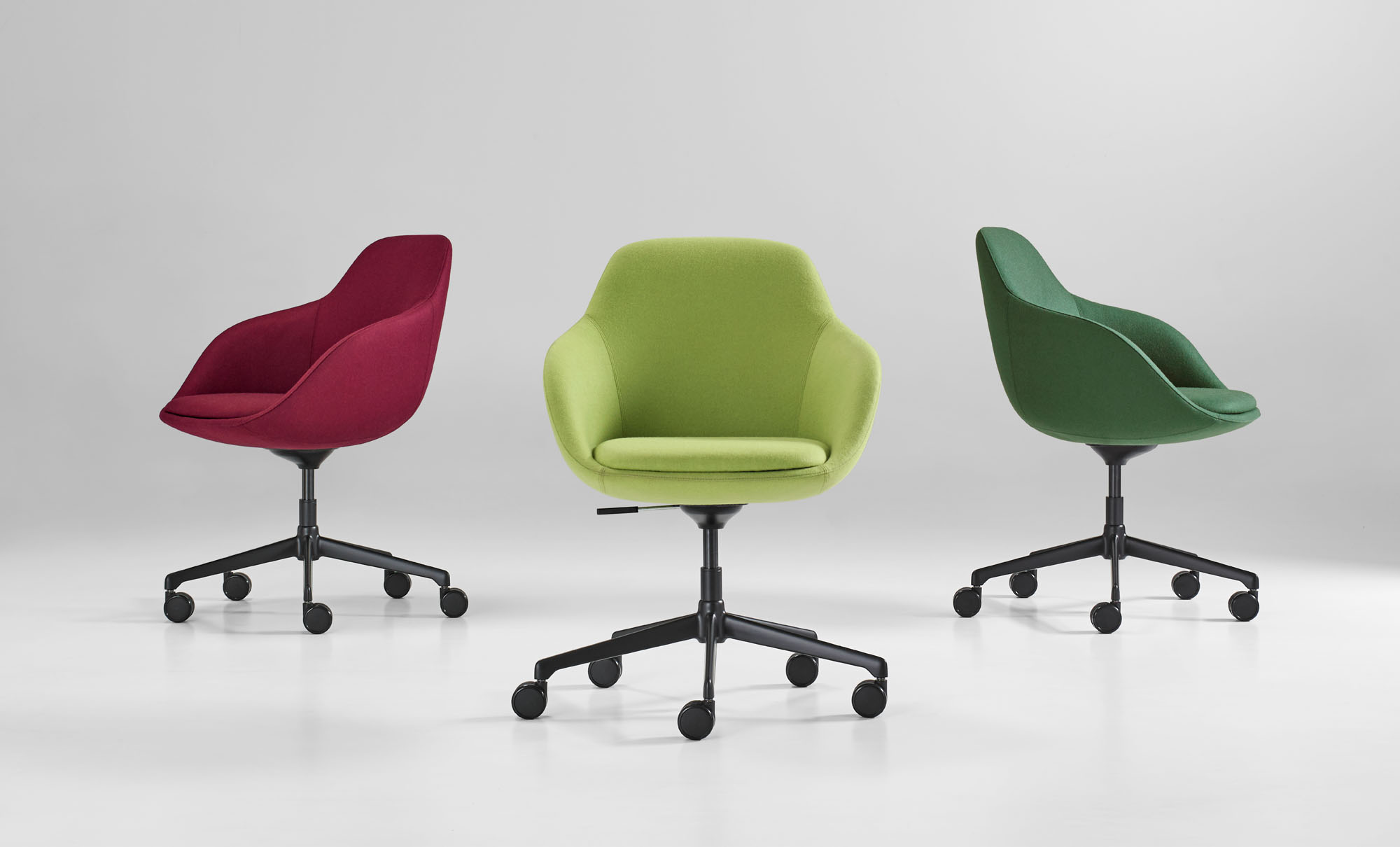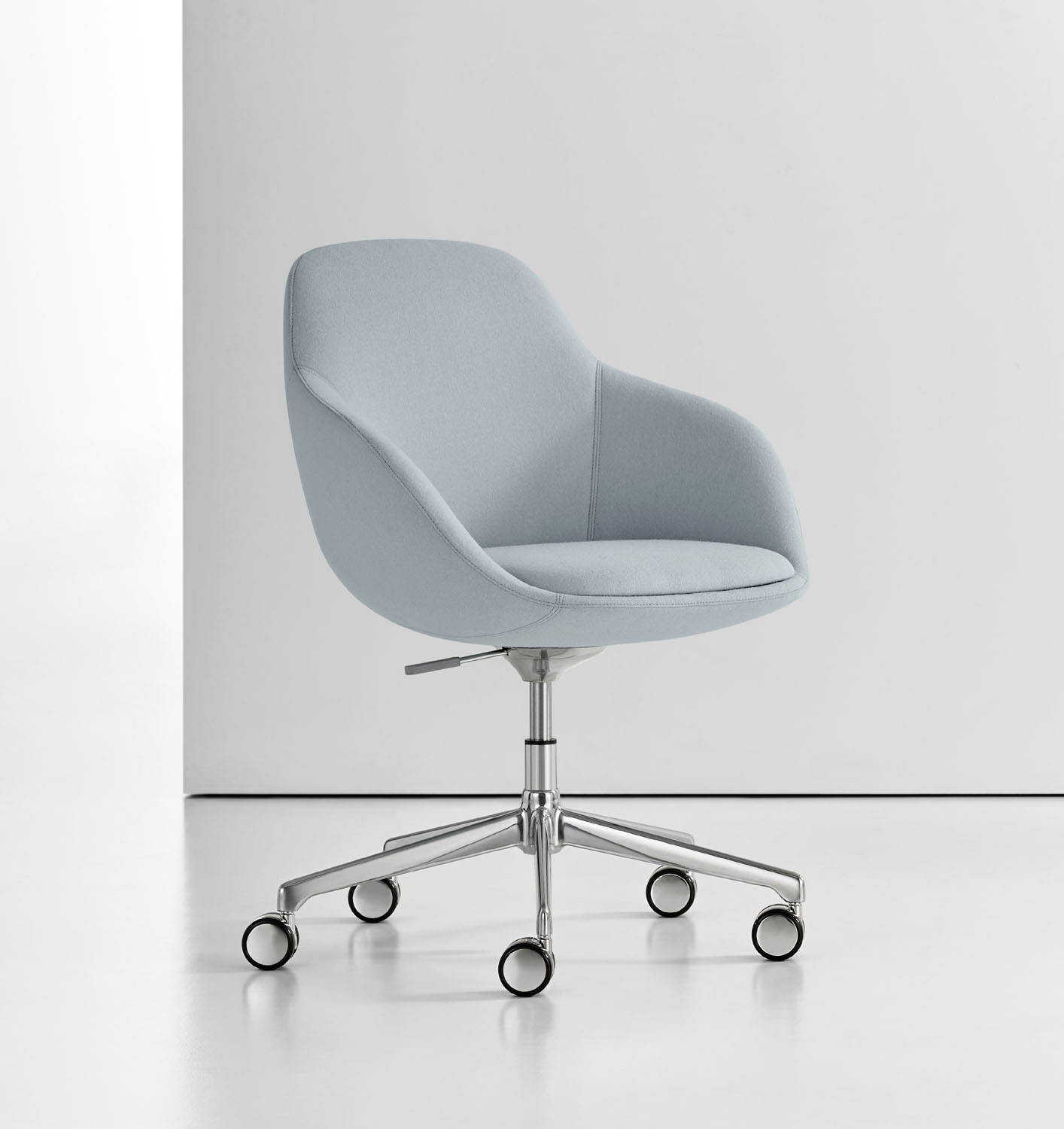The Chantal swivel chair was created to add gracefully rounded forms to collaborative workspaces. Its seat offers a substantial cushion while maintaining a streamlined look with modern lines. Chantal also provides exceptional back support as one is enveloped in the curved shell. Successfully merging function and style, Chantal is suitable for a diverse range of spaces from boardrooms to home offices.