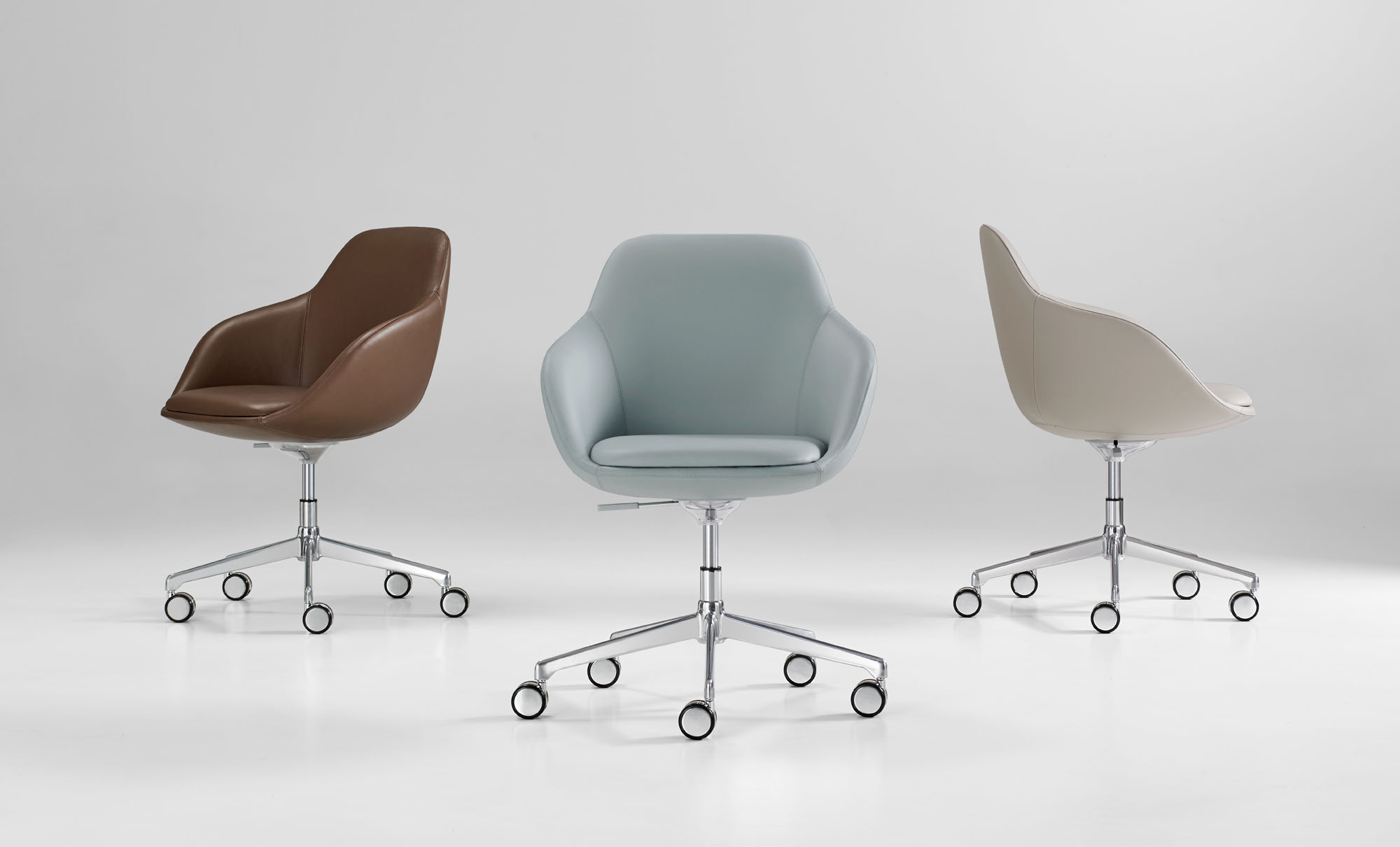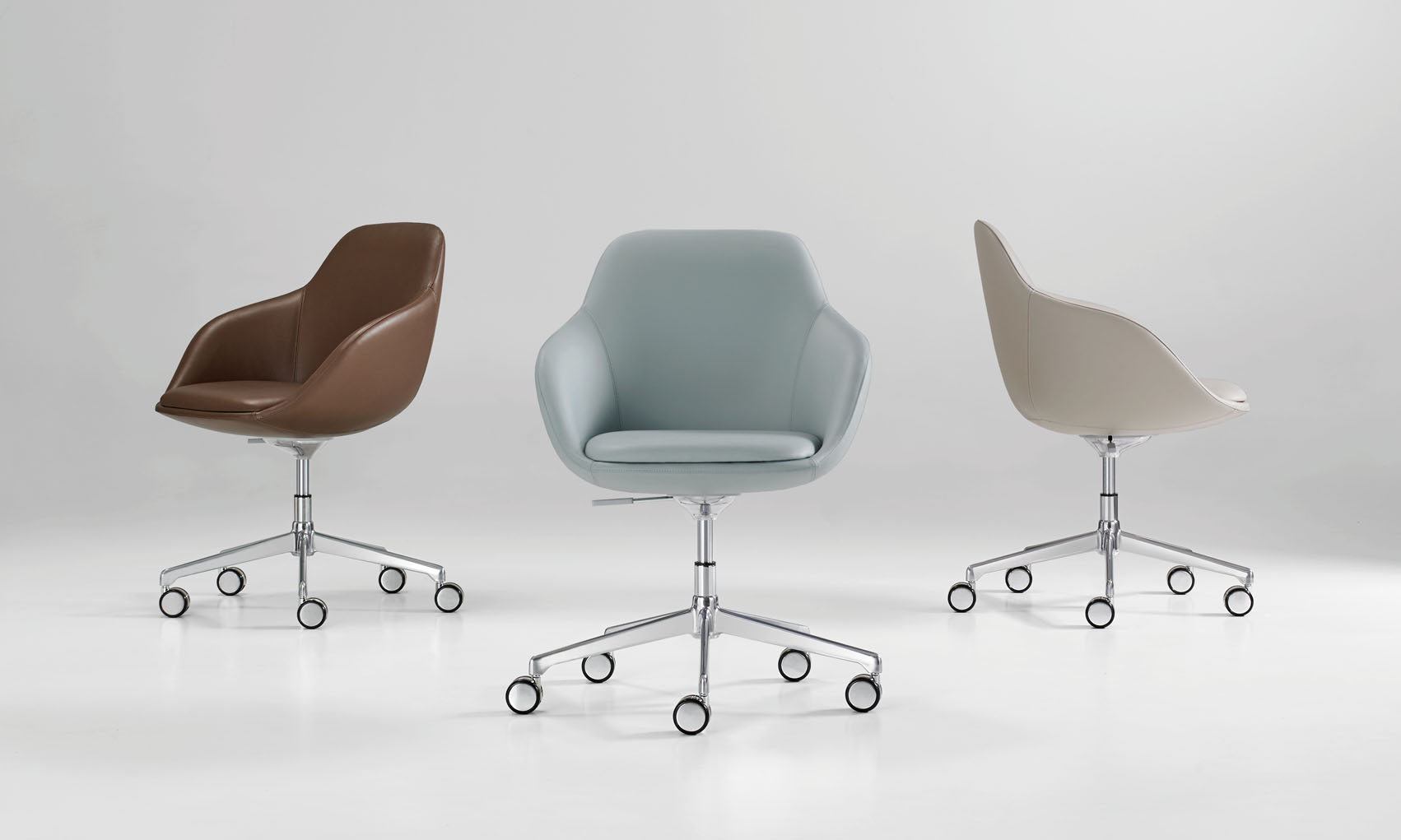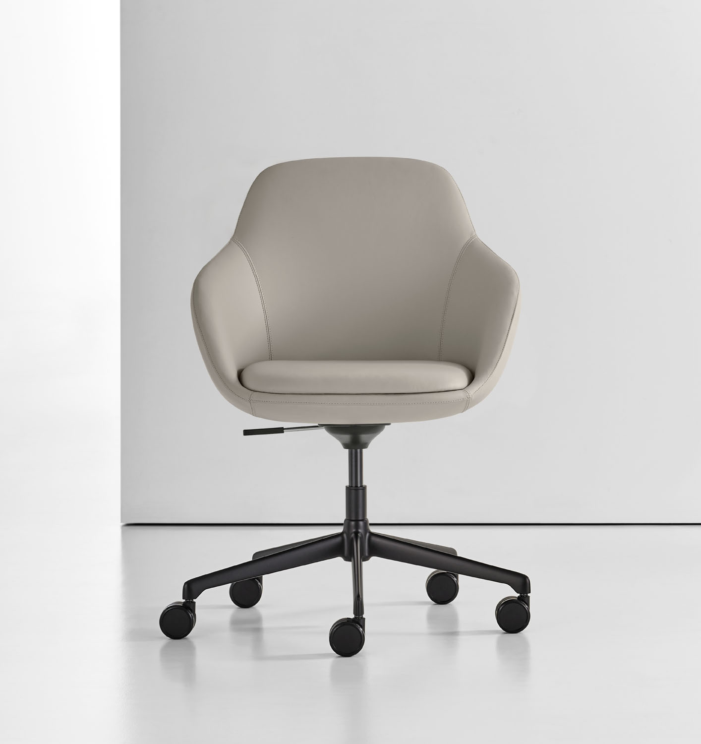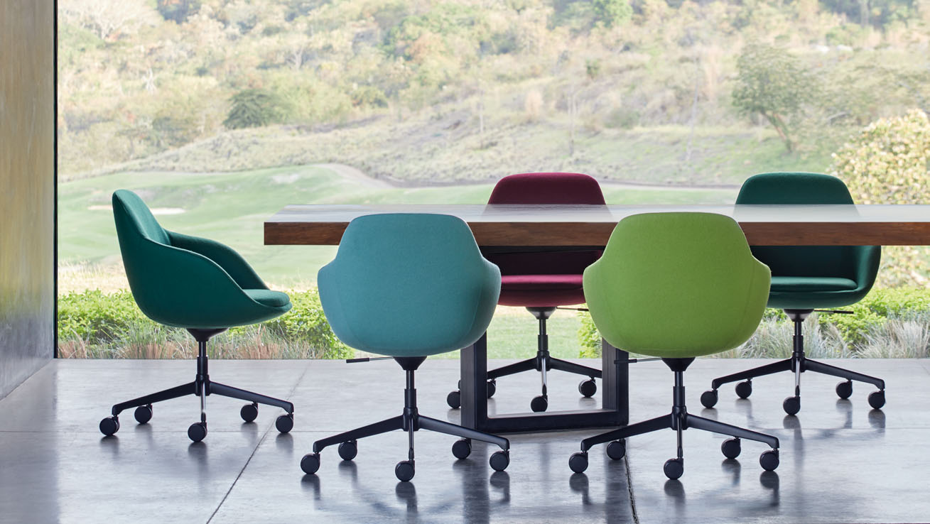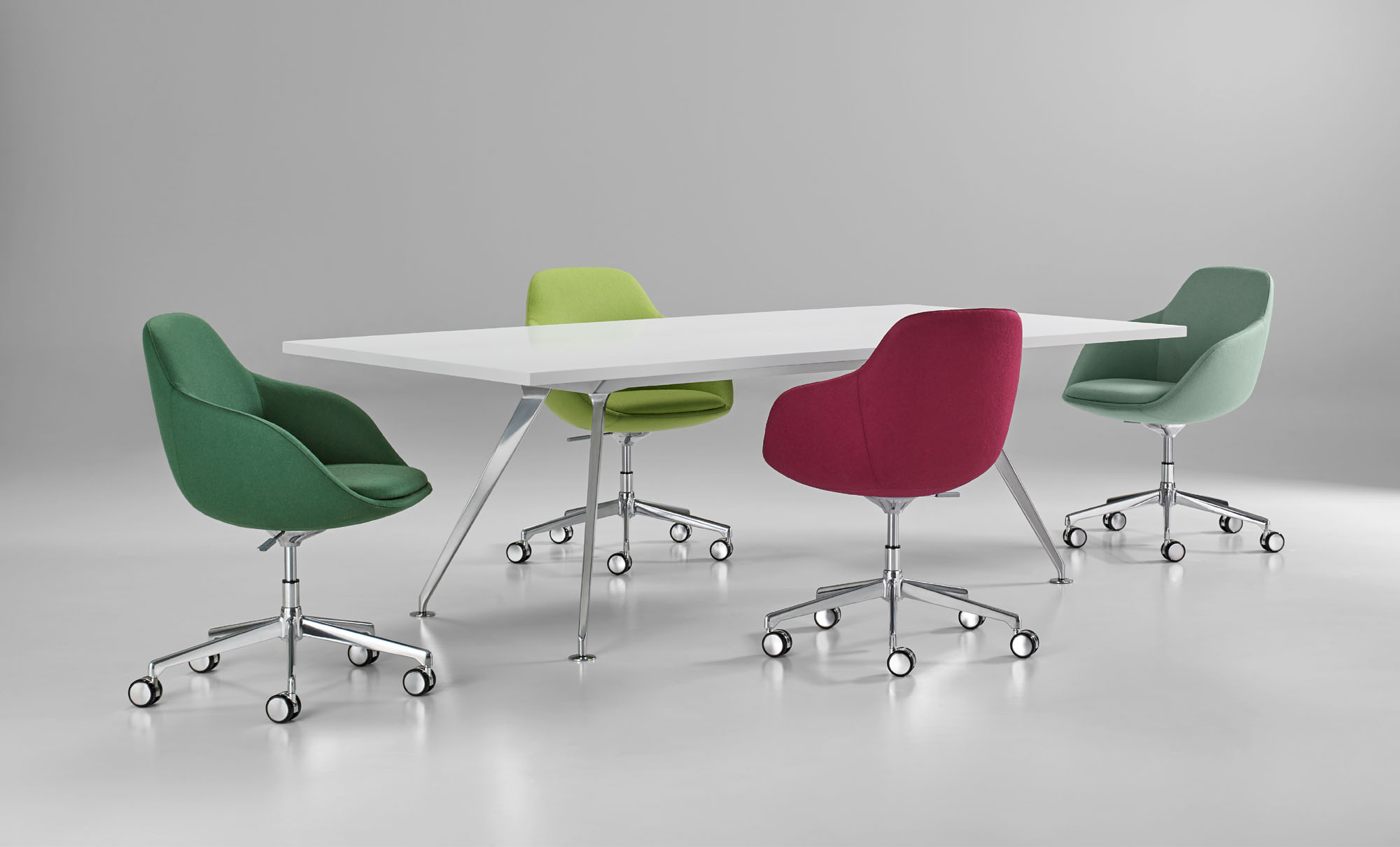 The Chantal swivel chair was created to add gracefully rounded forms to collaborative workspaces. Its seat offers a substantial cushion while maintaining a streamlined look with modern lines. Chantal also provides exceptional back support as one is enveloped in the curved shell. Successfully merging function and style, Chantal is suitable for a diverse range of spaces from boardrooms to home offices.