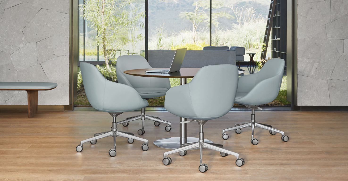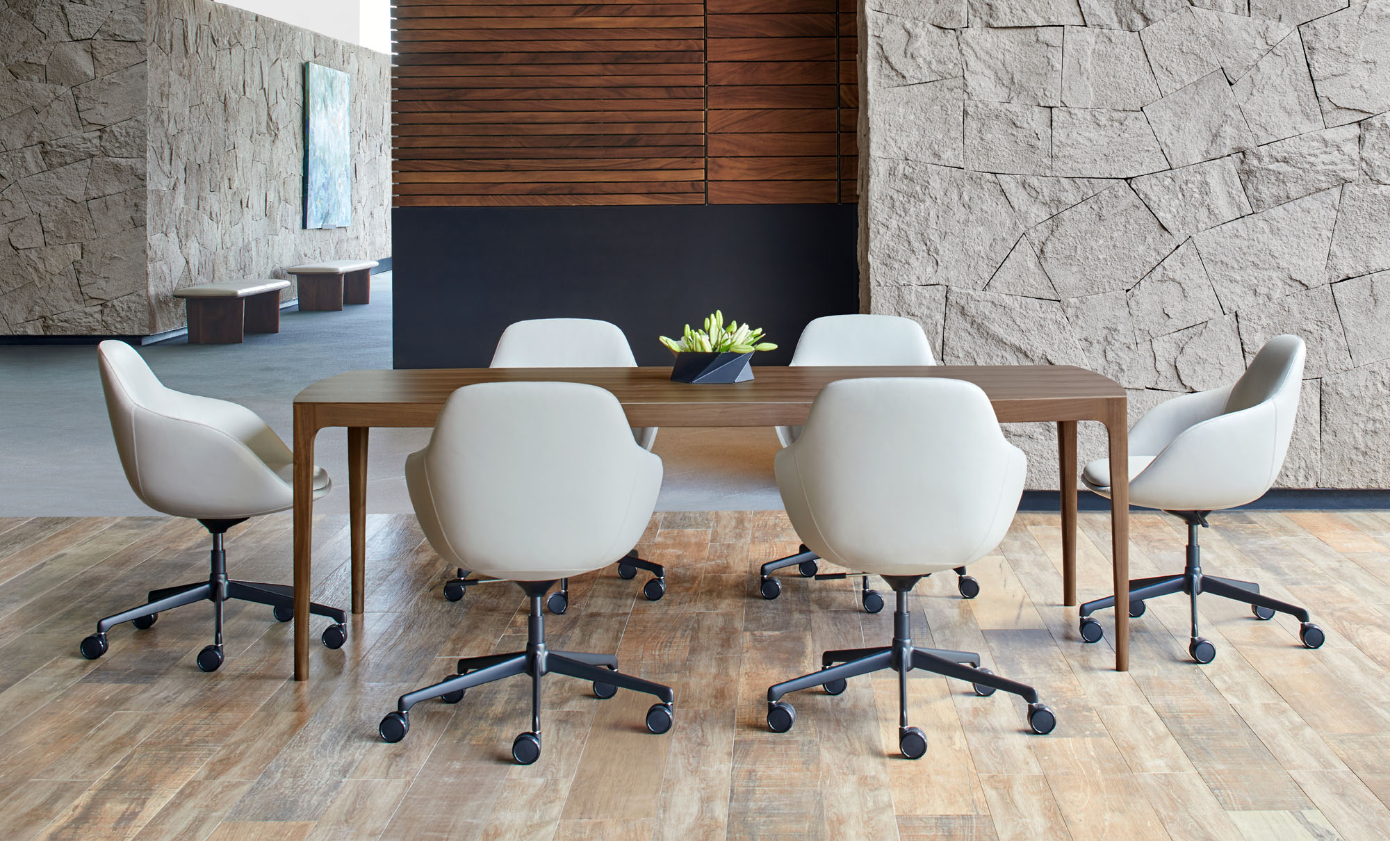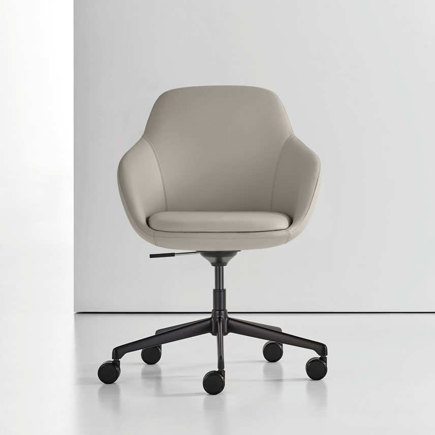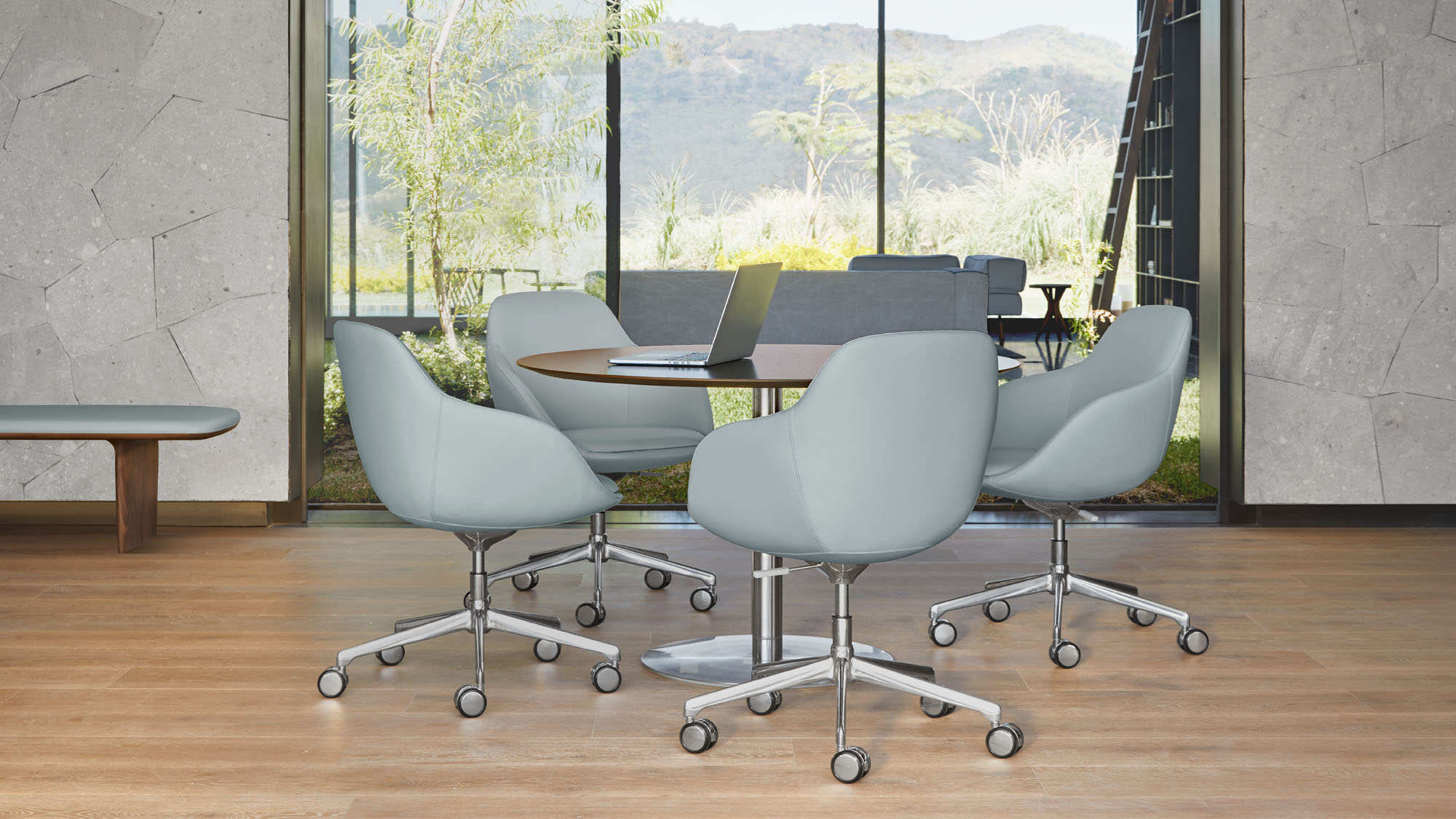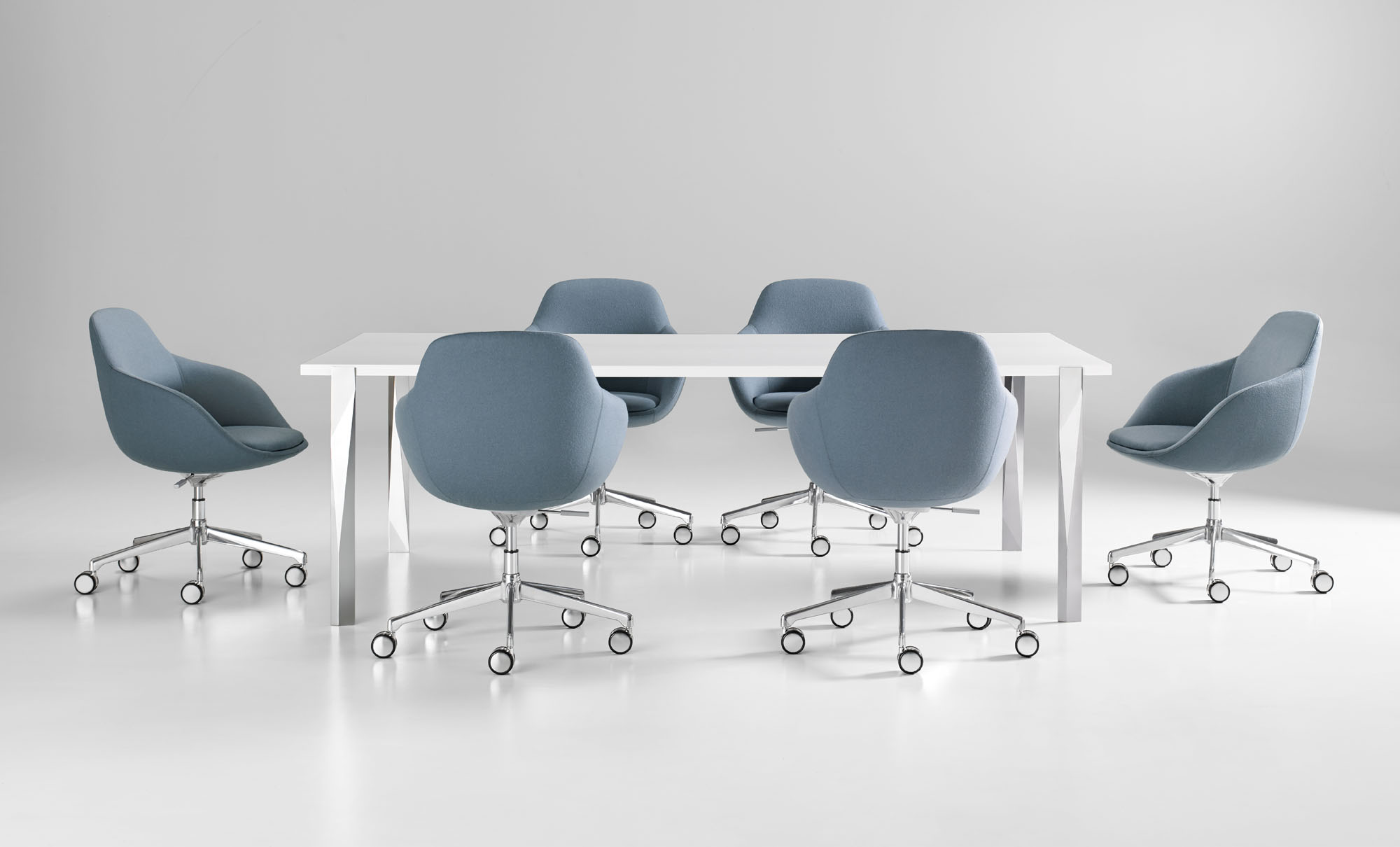 The Chantal swivel chair was created to add gracefully rounded forms to collaborative workspaces. Its seat offers a substantial cushion while maintaining a streamlined look with modern lines. Chantal also provides exceptional back support as one is enveloped in the curved shell. Successfully merging function and style, Chantal is suitable for a diverse range of spaces from boardrooms to home offices.