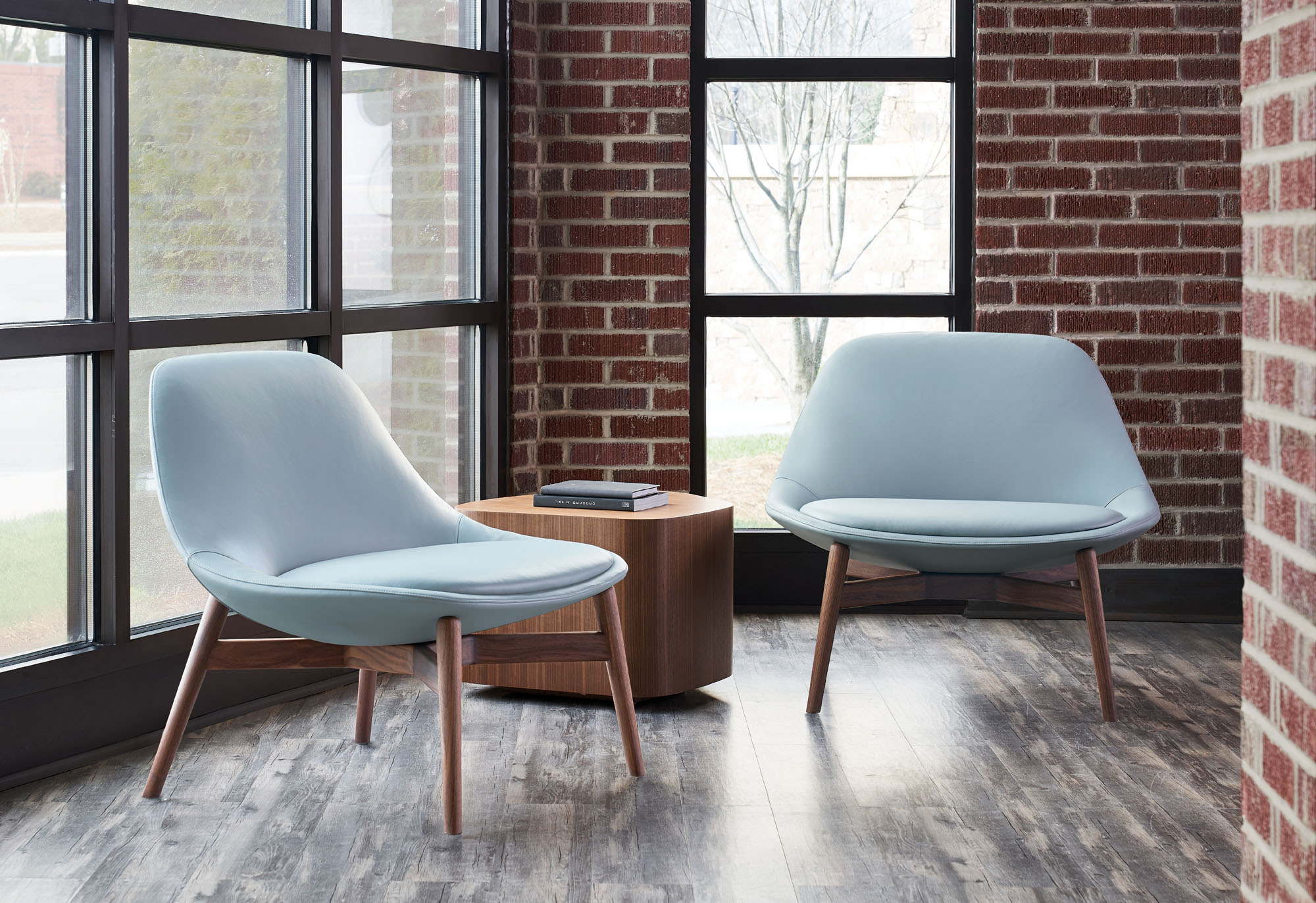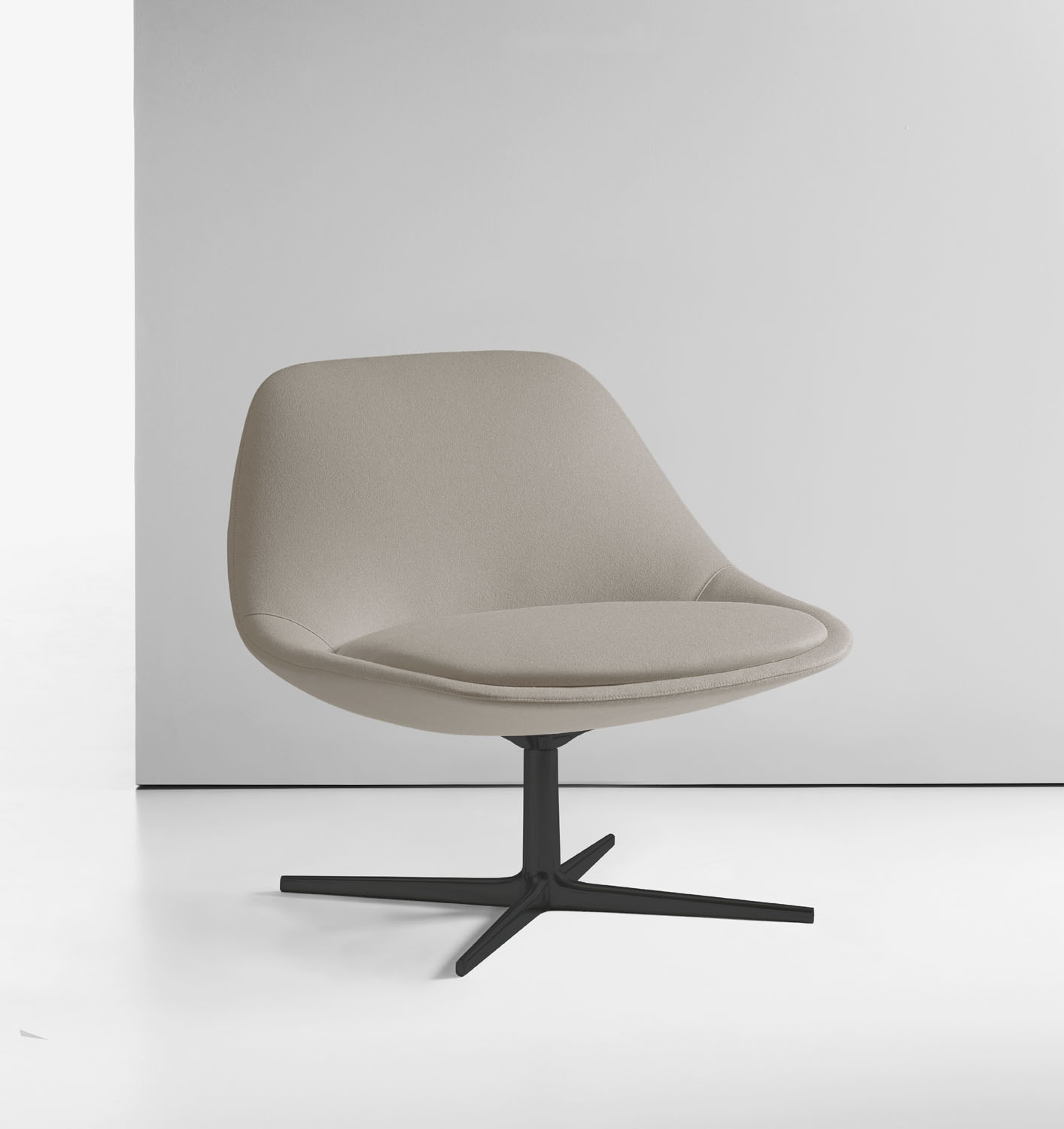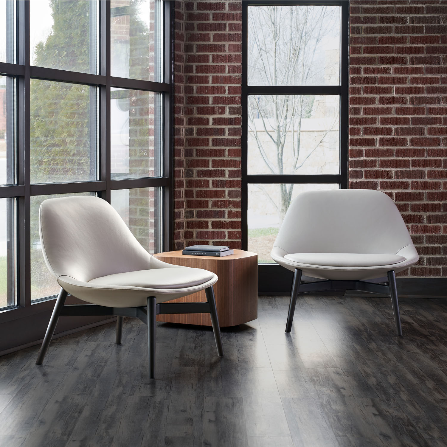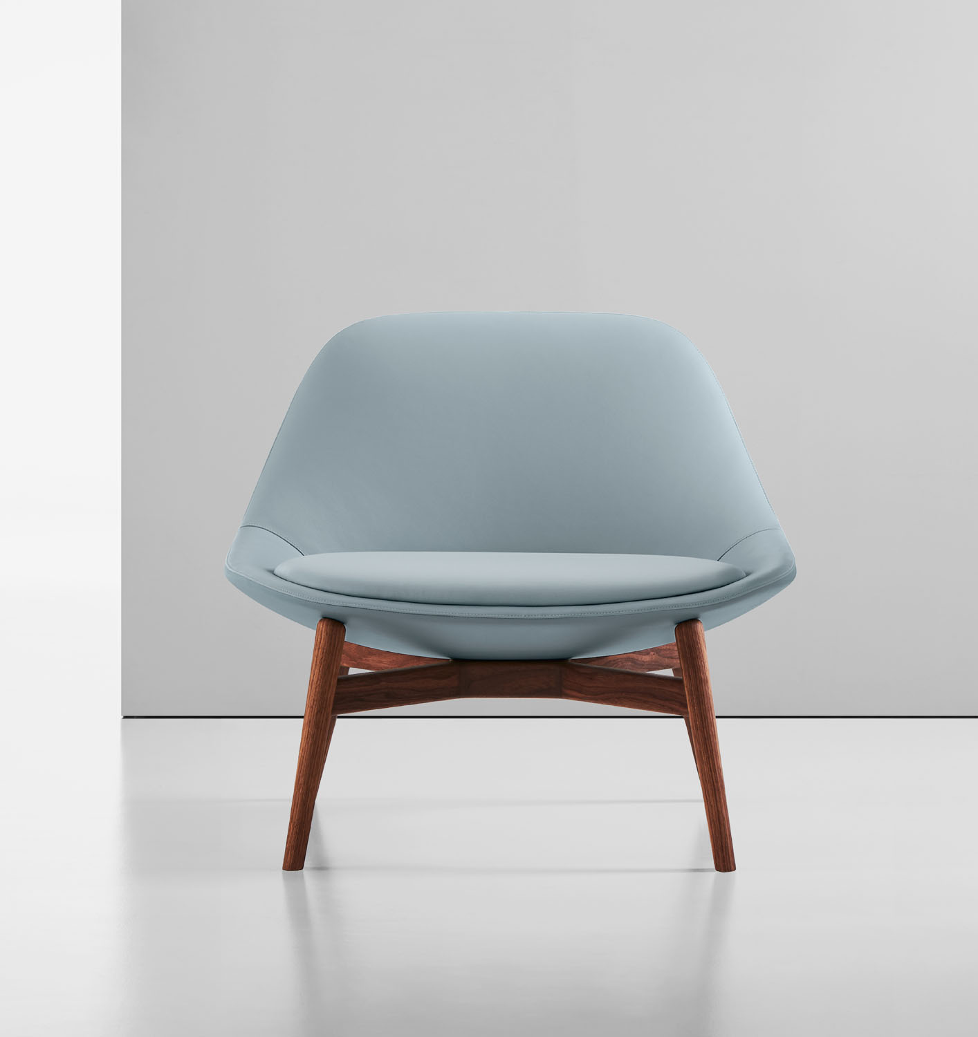 Chiara is a modern lounge chair with a generous open seat and gentle flowing curves. Inspired by the shapes of flower petals and leaves, Chiara’s seat cradles without enveloping. Its design is tailored to provide refuge from overstimulation caused by technology.