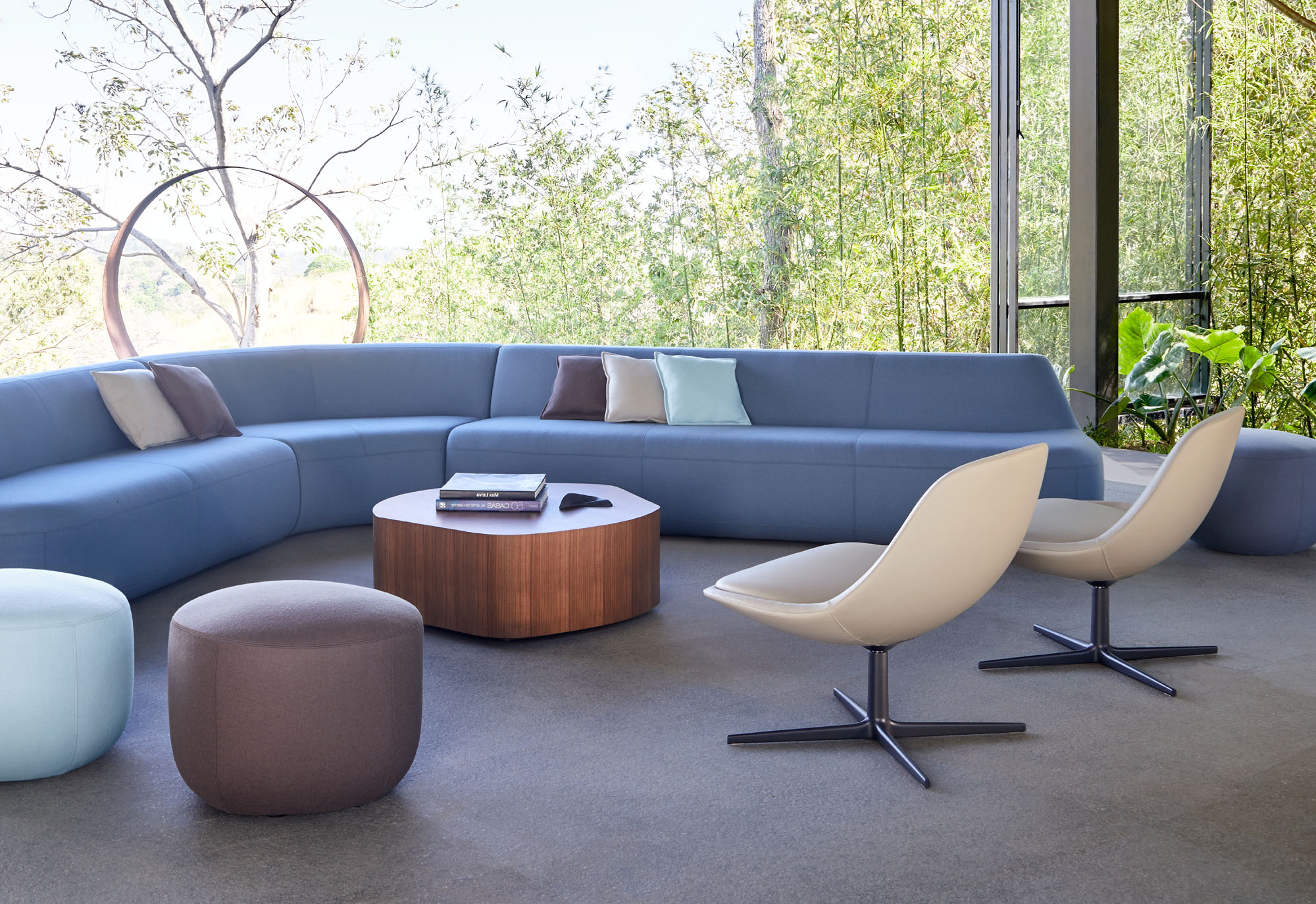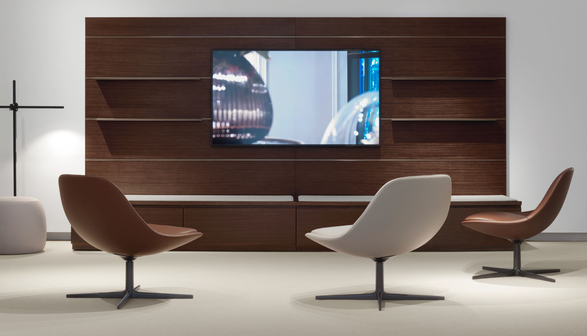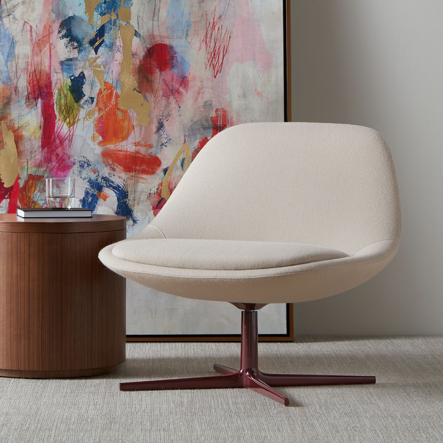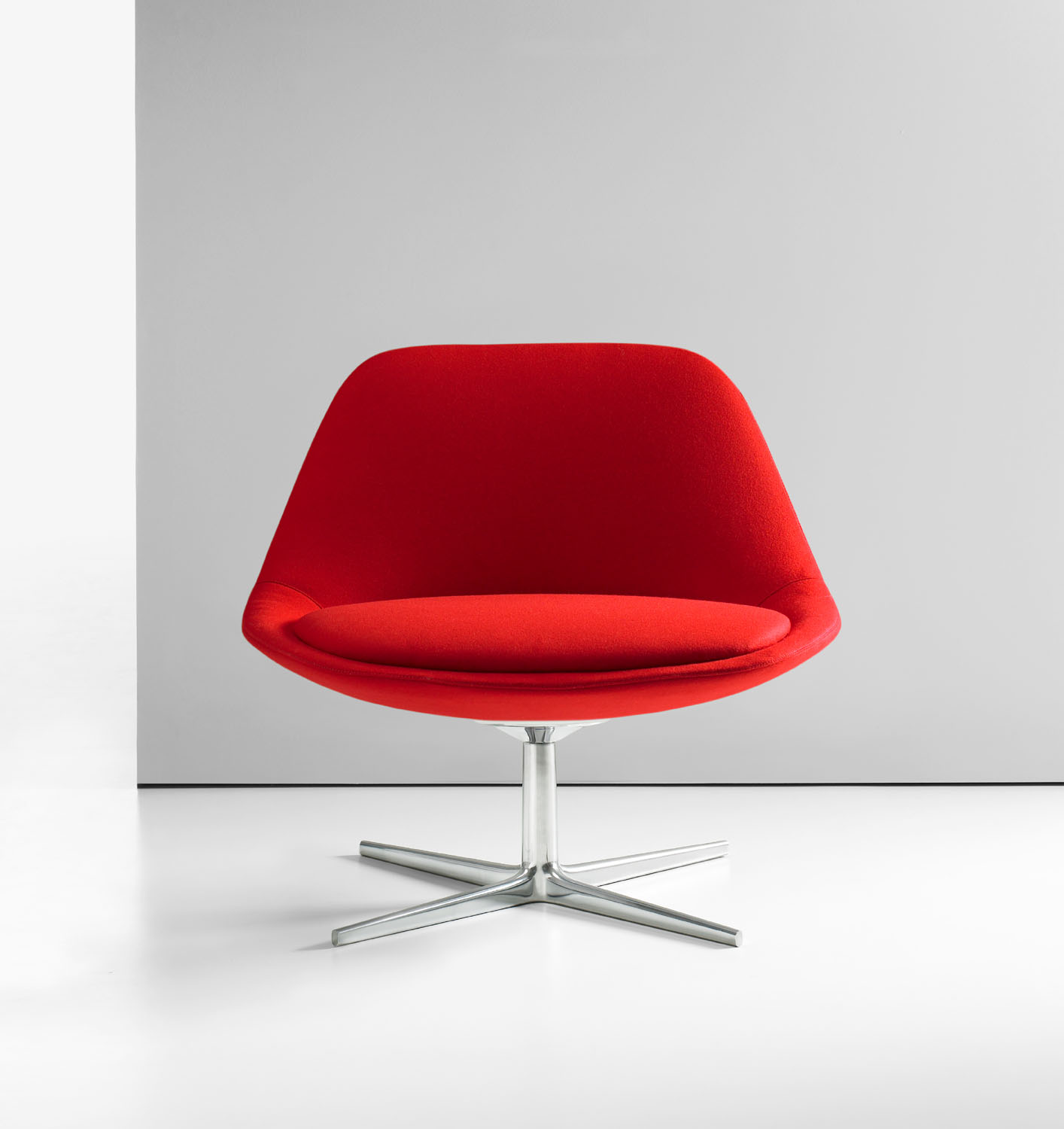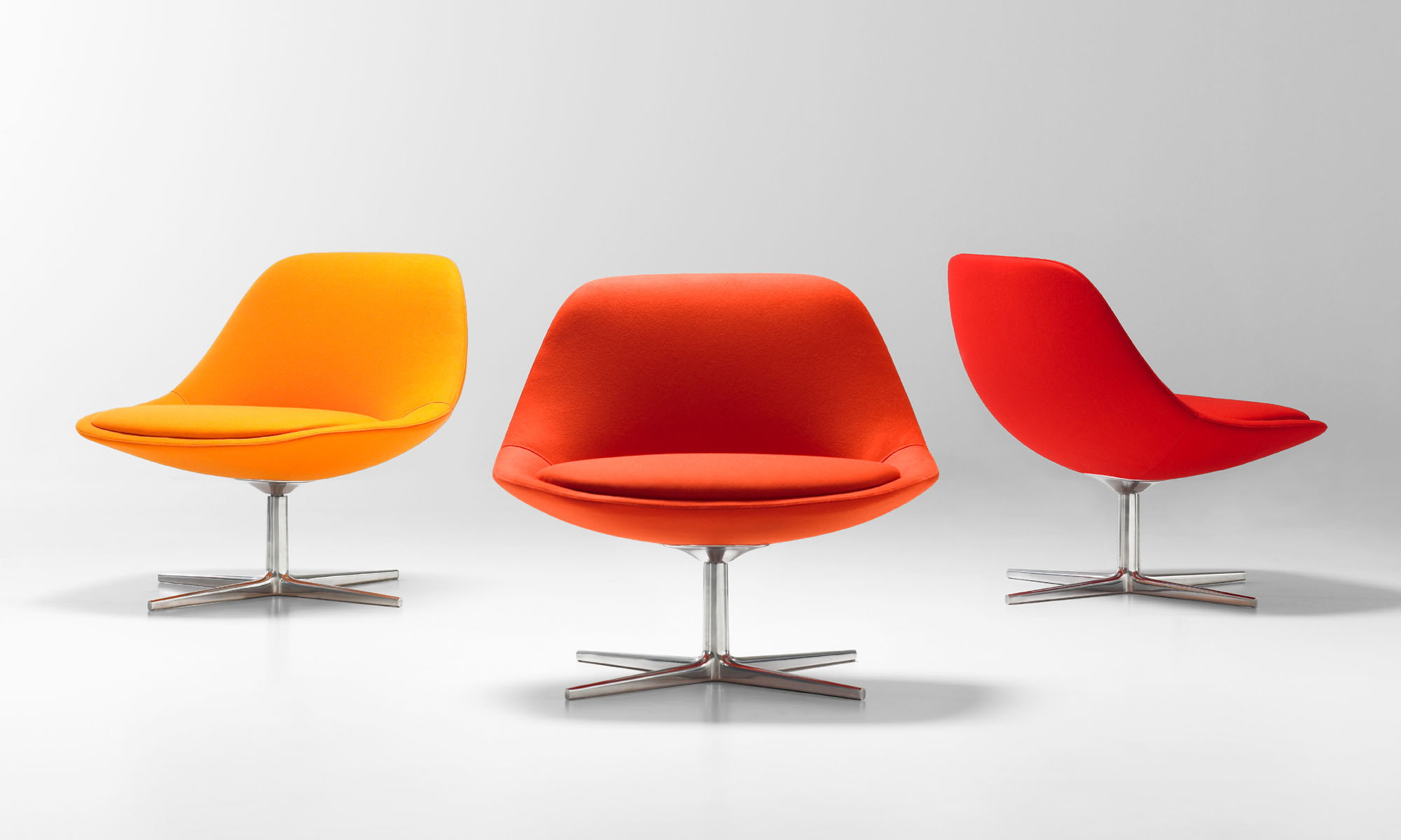 Chiara is a modern lounge chair with a generous open seat and gentle flowing curves. Inspired by the shapes of flower petals and leaves, Chiara’s seat cradles without enveloping. Its design is tailored to provide refuge from overstimulation caused by technology.