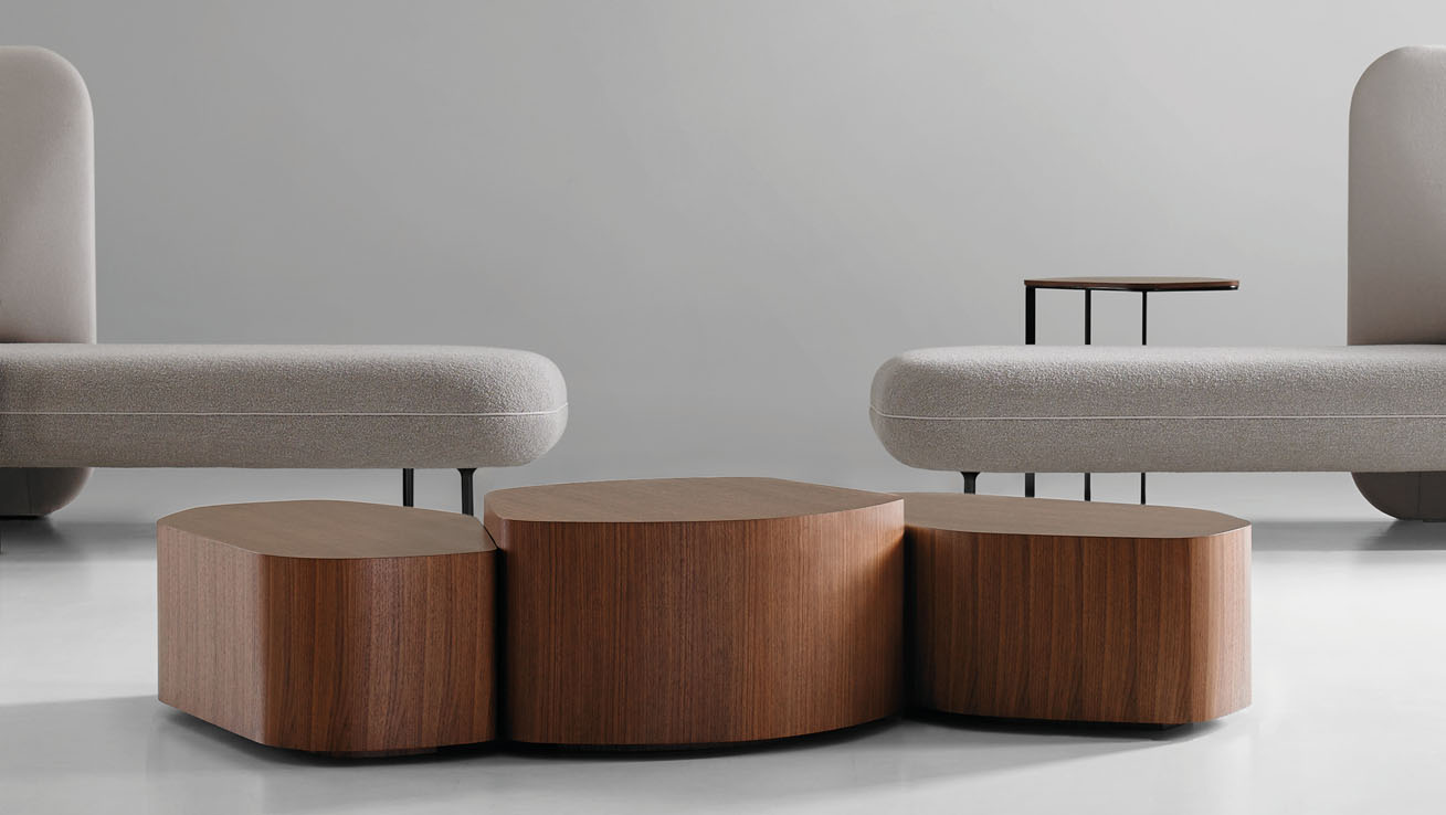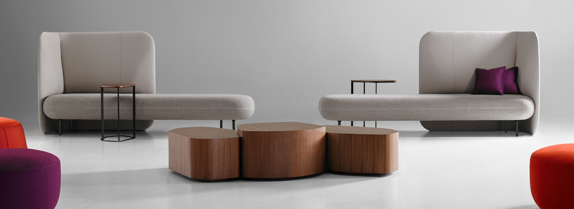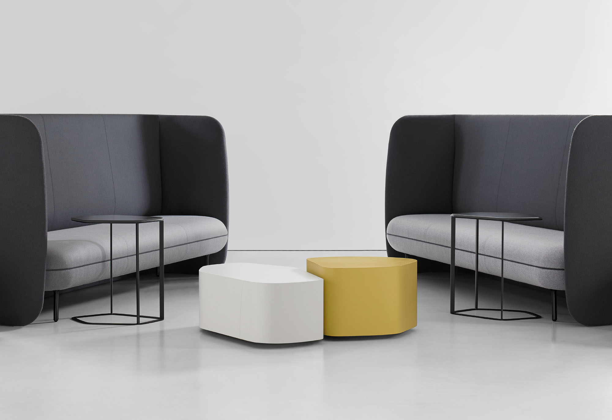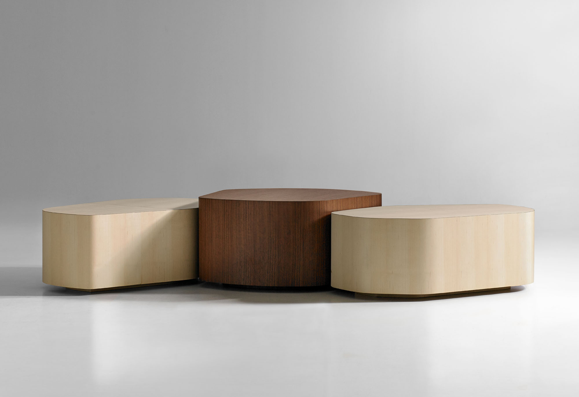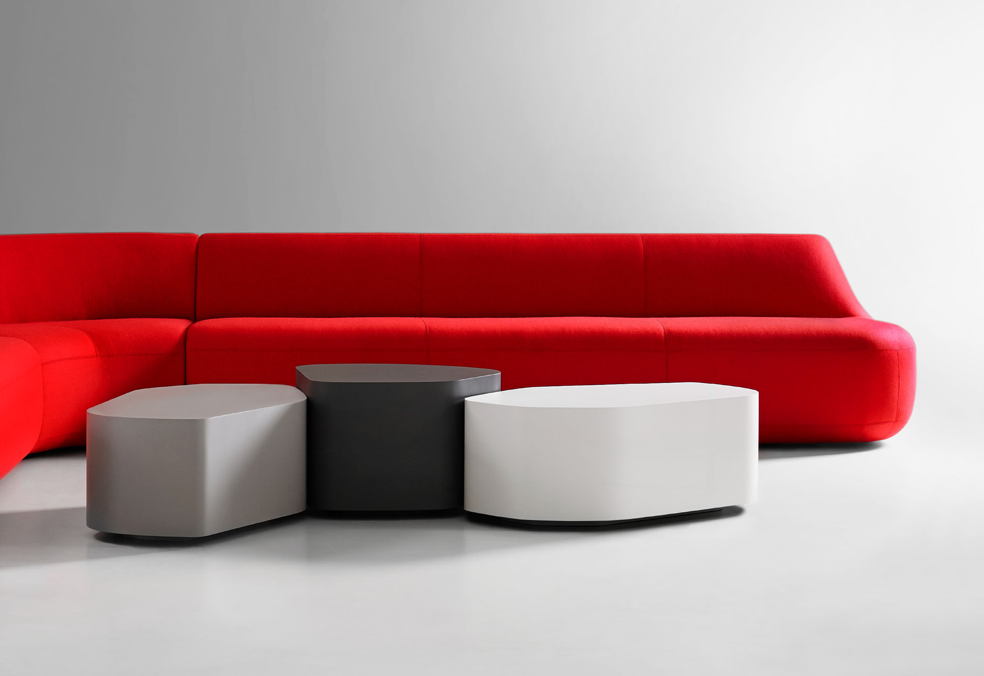 Clue is a collection of round and organic-shaped drum tables that inject mass into a space. Freestanding or grouped, Clue’s irregular shapes allow configurations much like a puzzle. The Clue tables have one linear side, allowing them to nestle together.