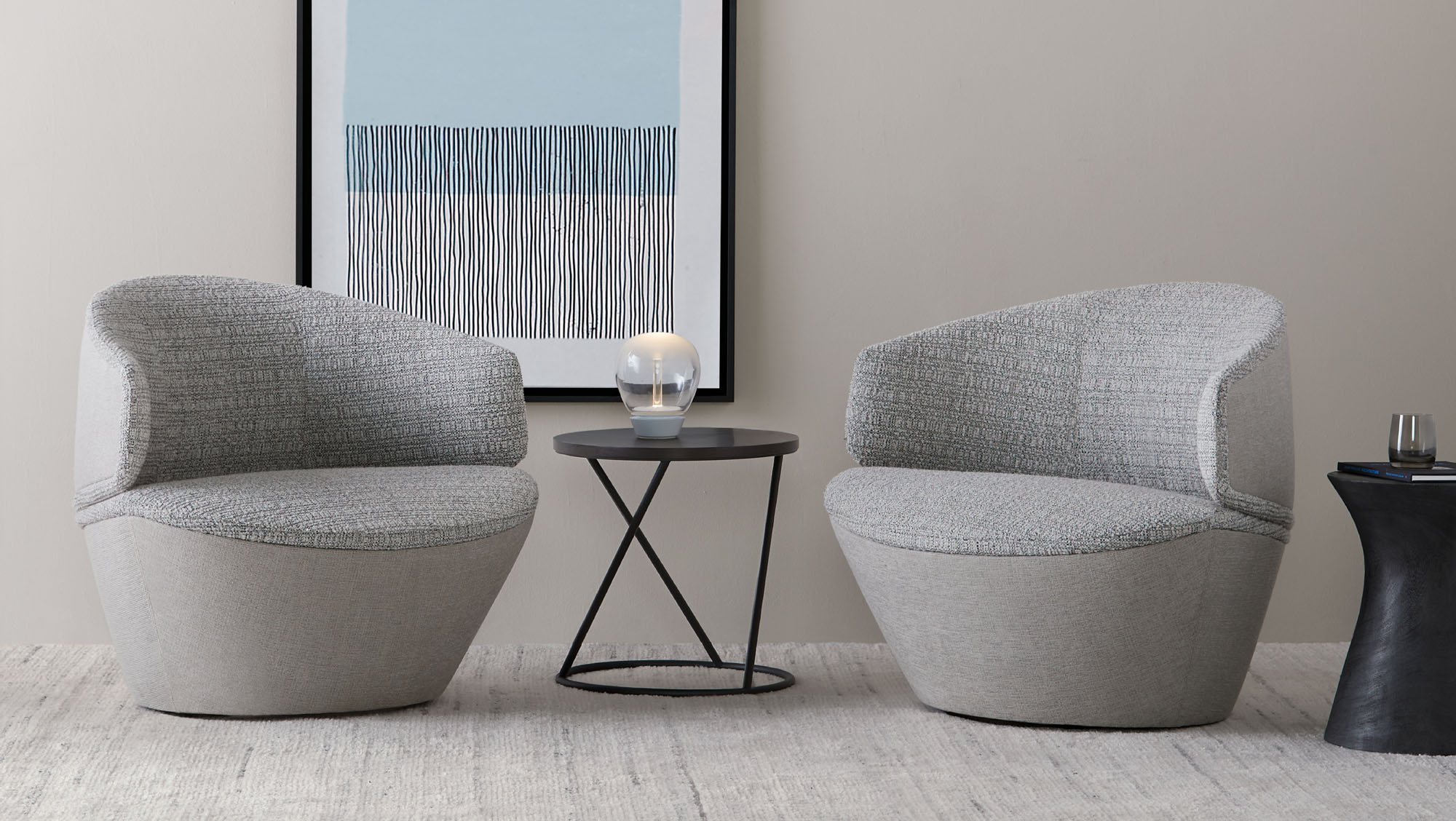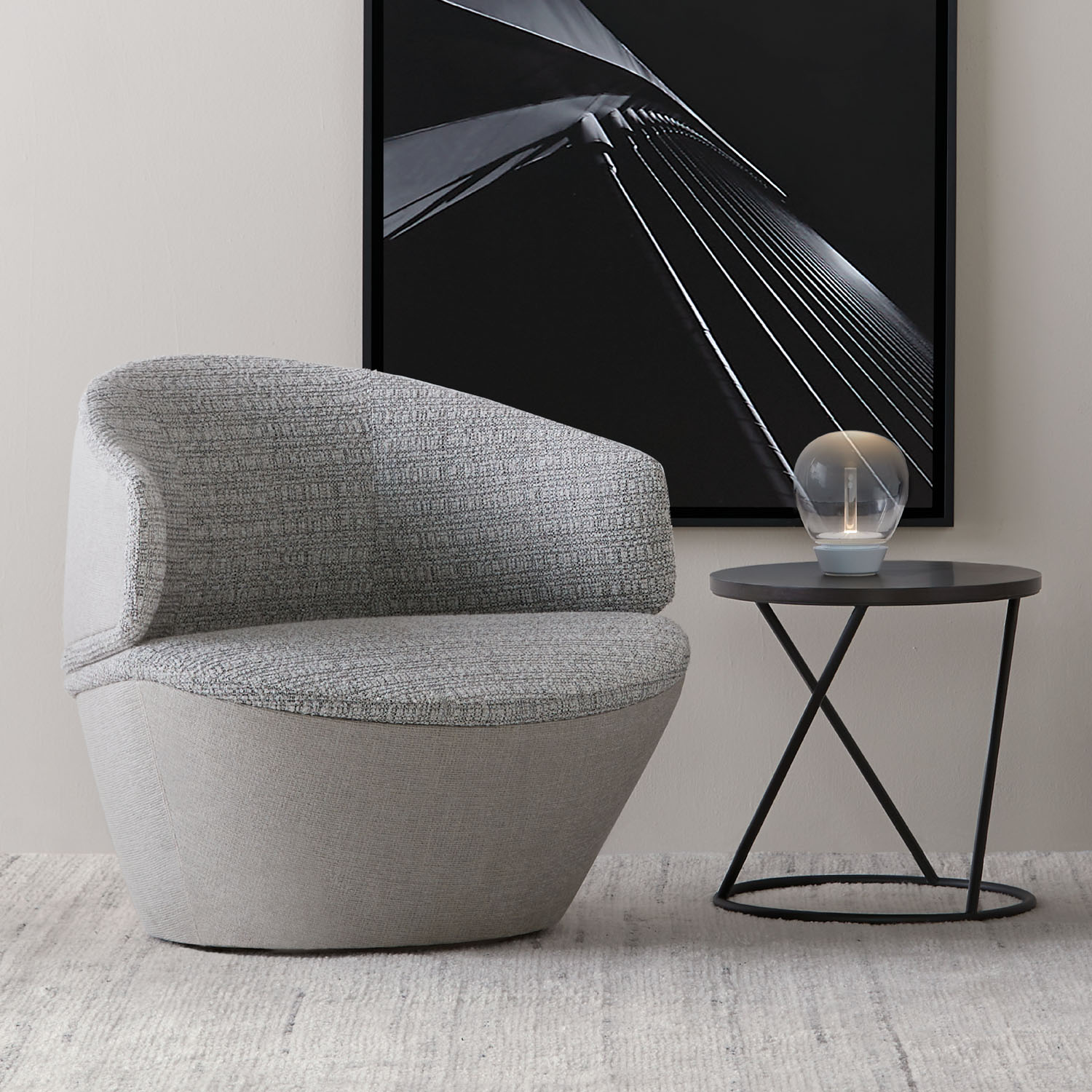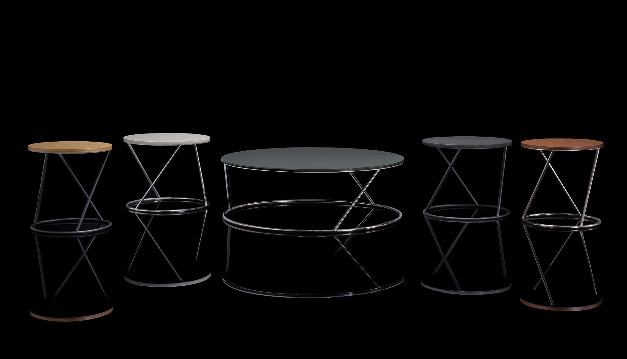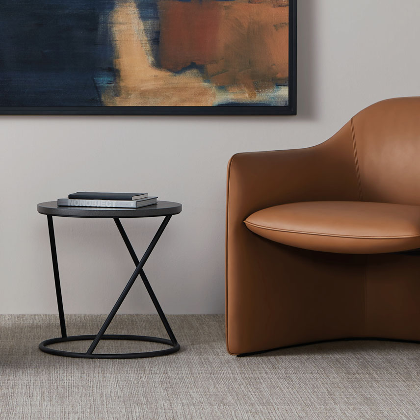 The beauty of Colmere is founded in illusions, where every view of the table has a different appearance. Colmere’s stainless-steel tubular base gives a light and airy aesthetic while providing structurally sound support.
