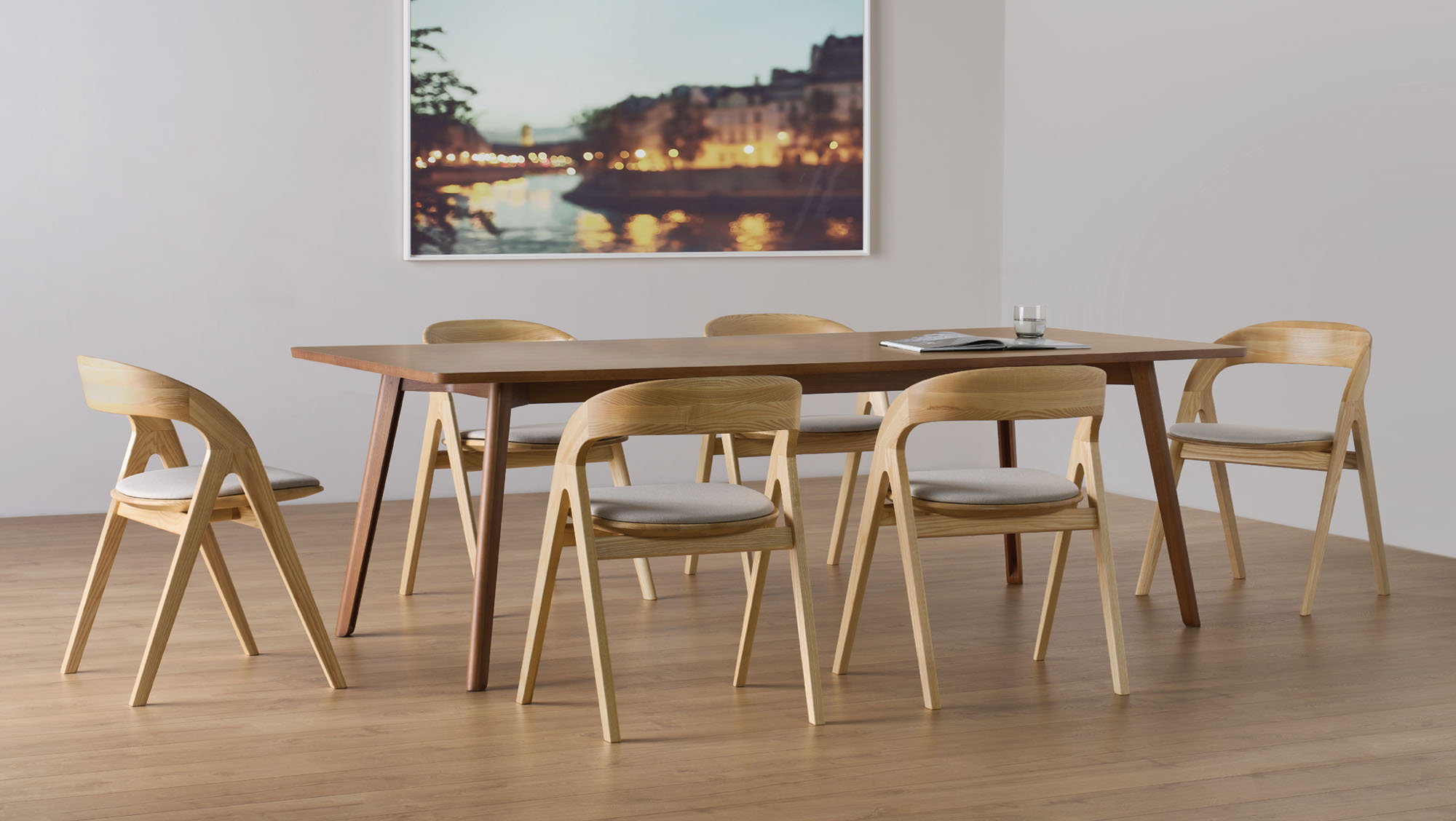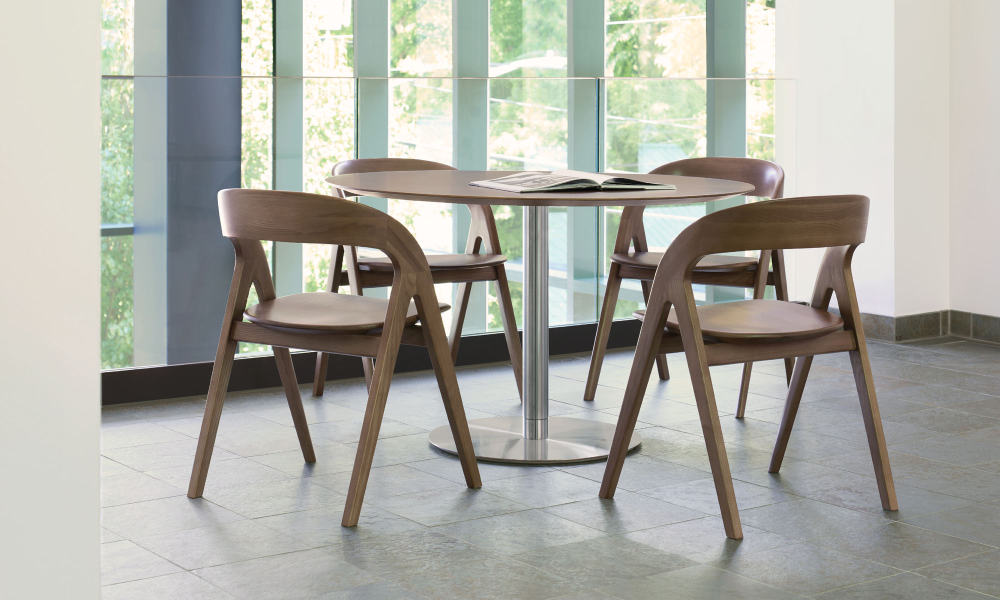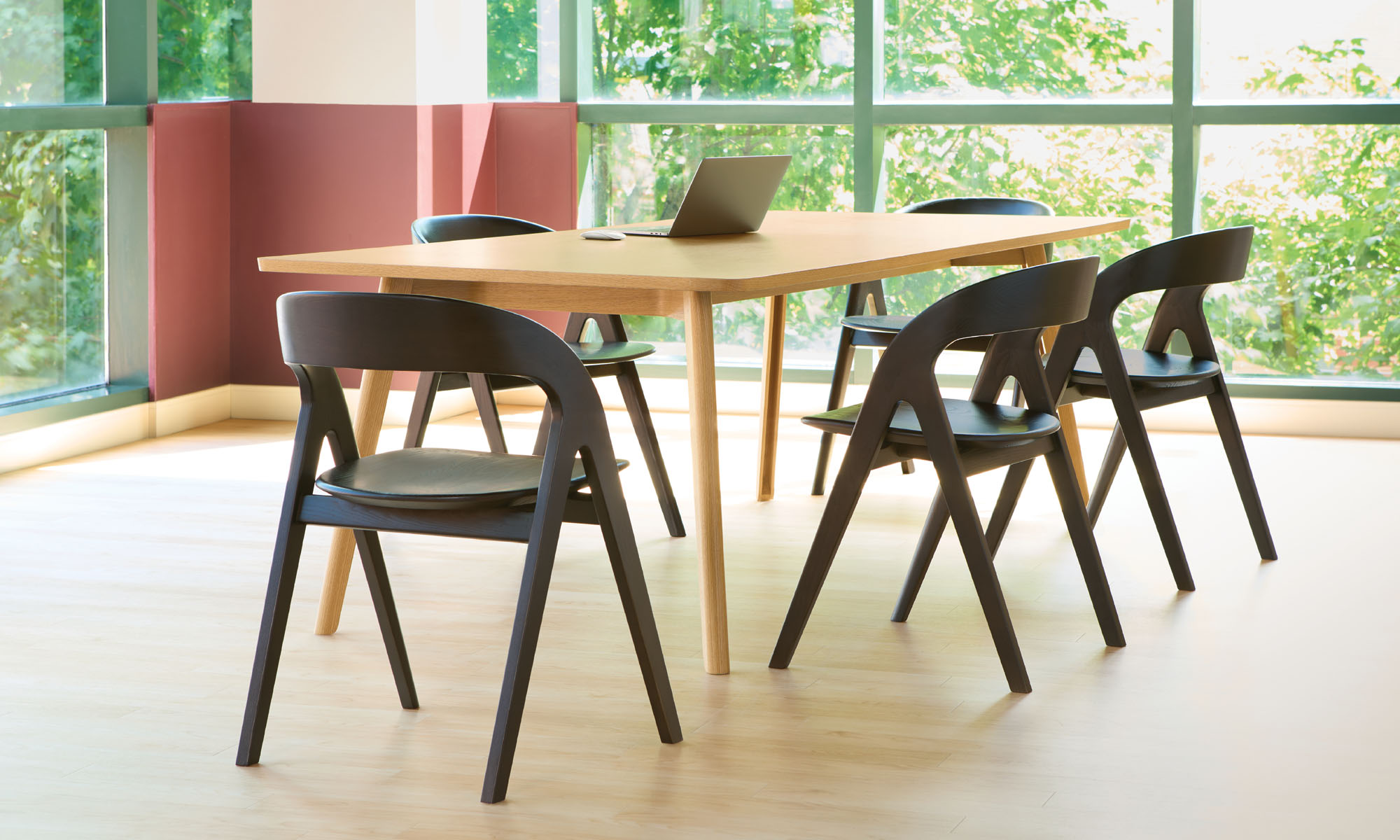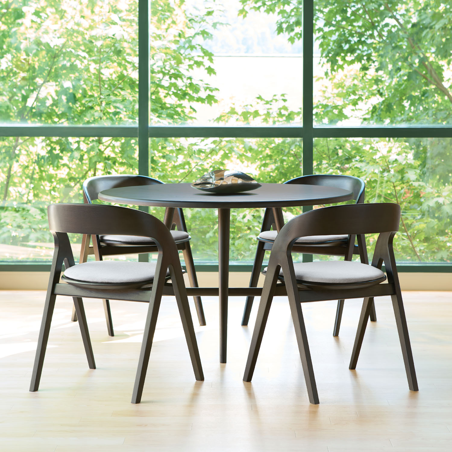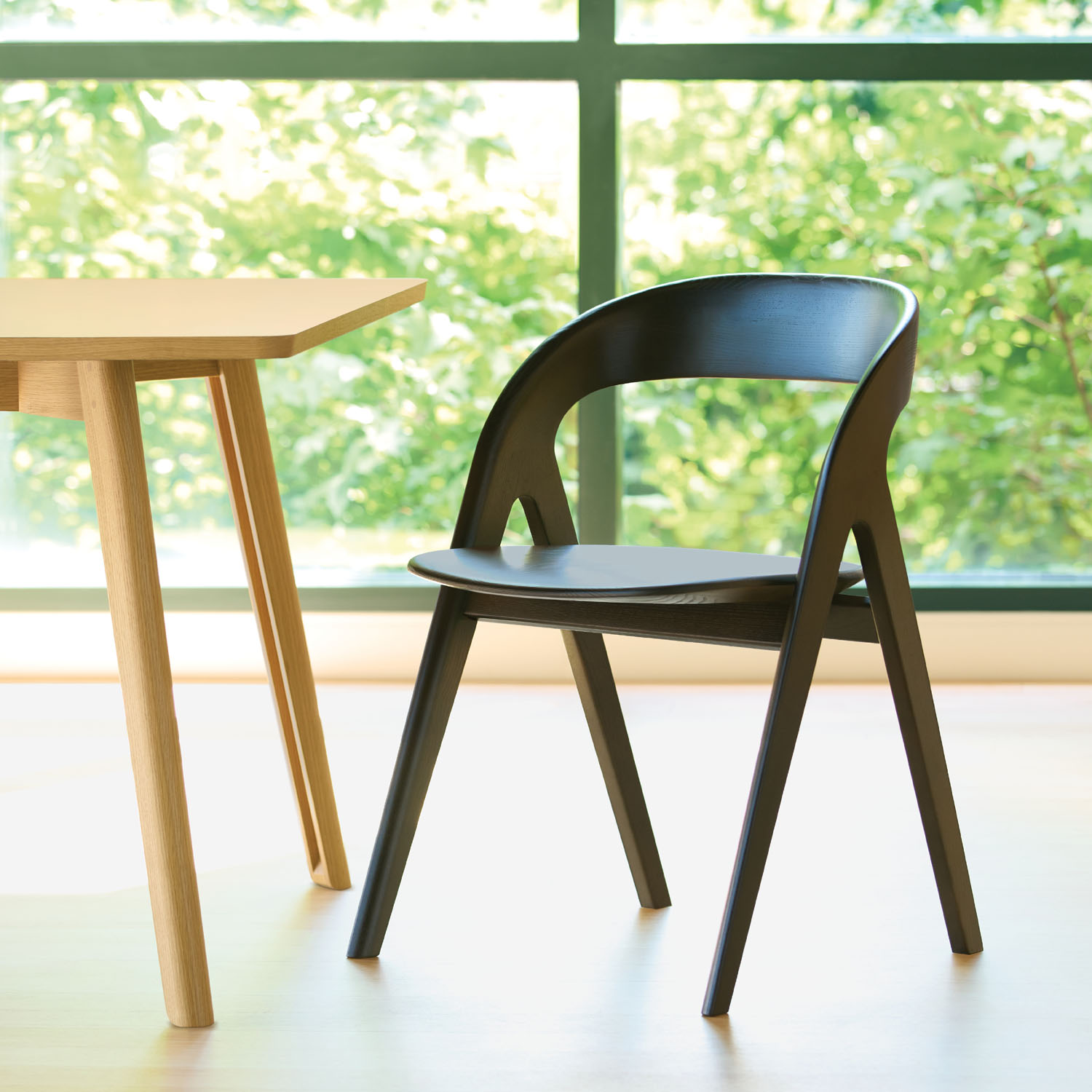 Offered in a variety of select or natural wood finishes, Cooper is available with a solid carved ash seat and an optional seat pad.