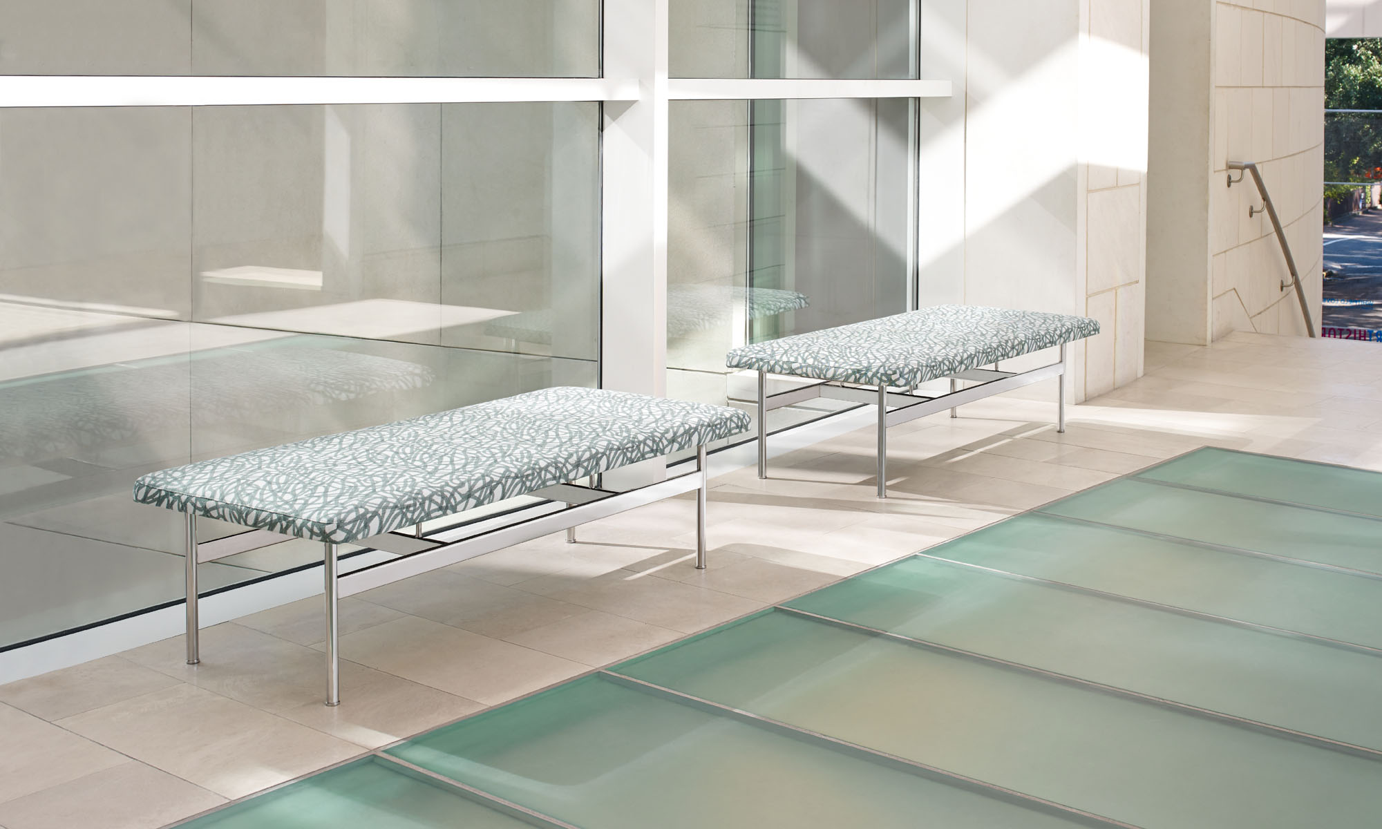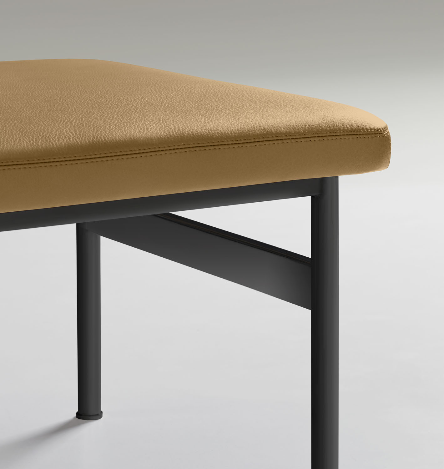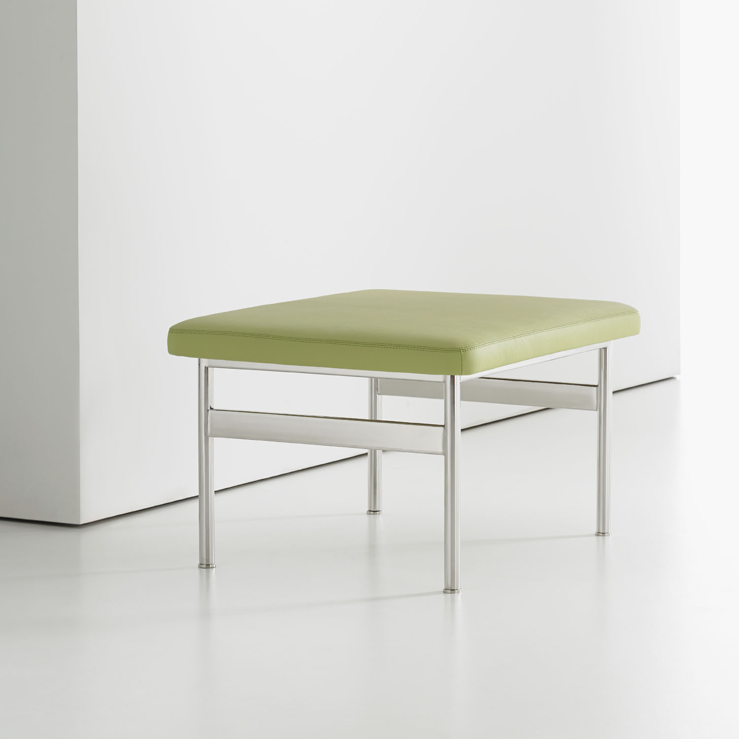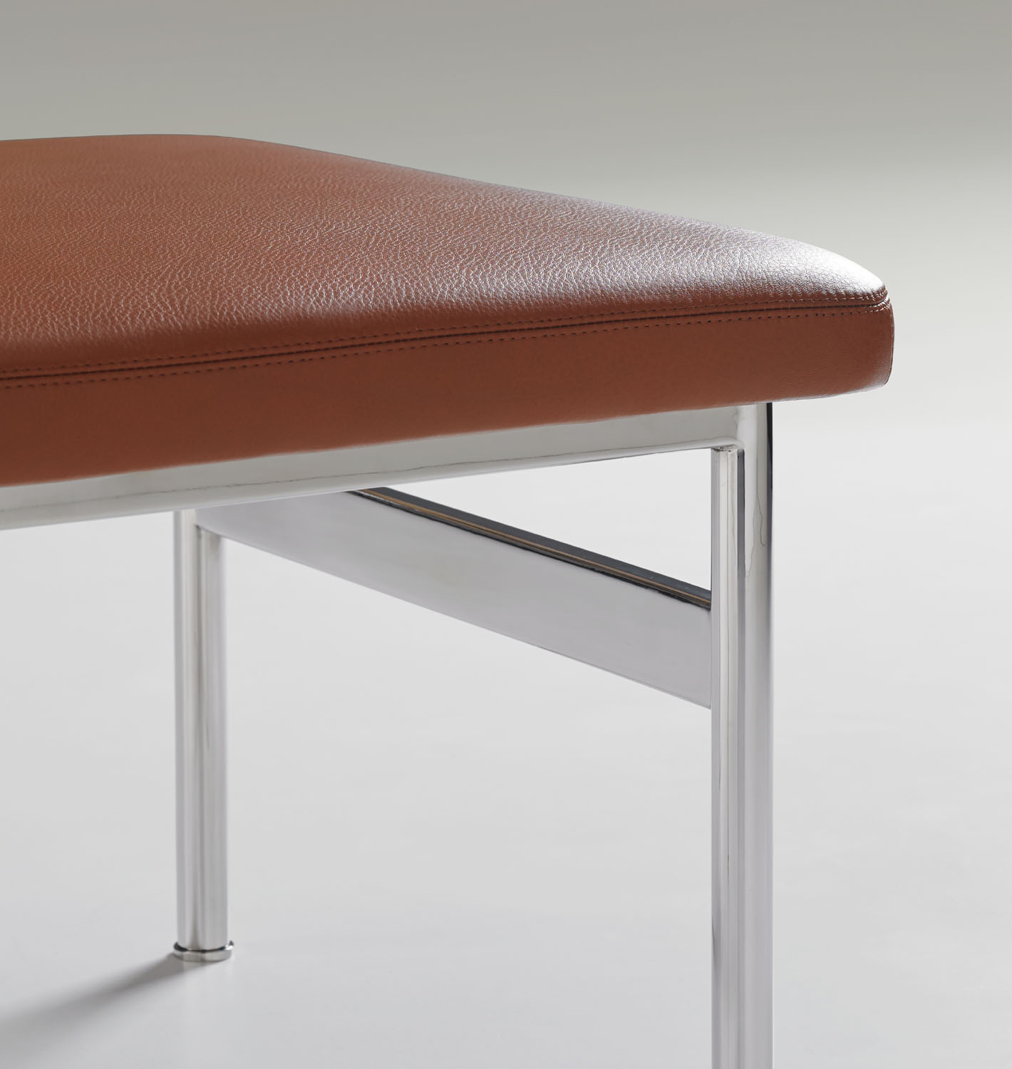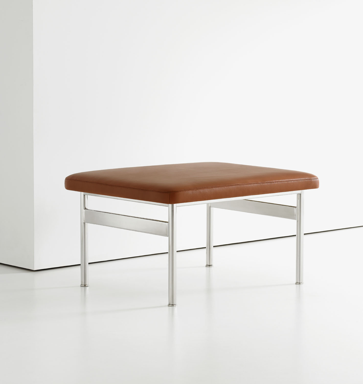 The CP.2 ottoman and bench blend a sleek stainless-steel frame and a contemporary seat to create a timeless, functional piece of art.