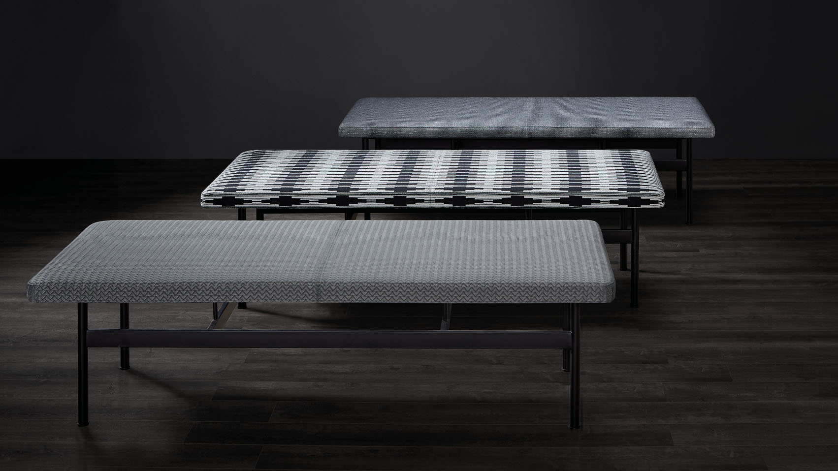 The CP.2 collection features an ottoman and a bench that seats two people.