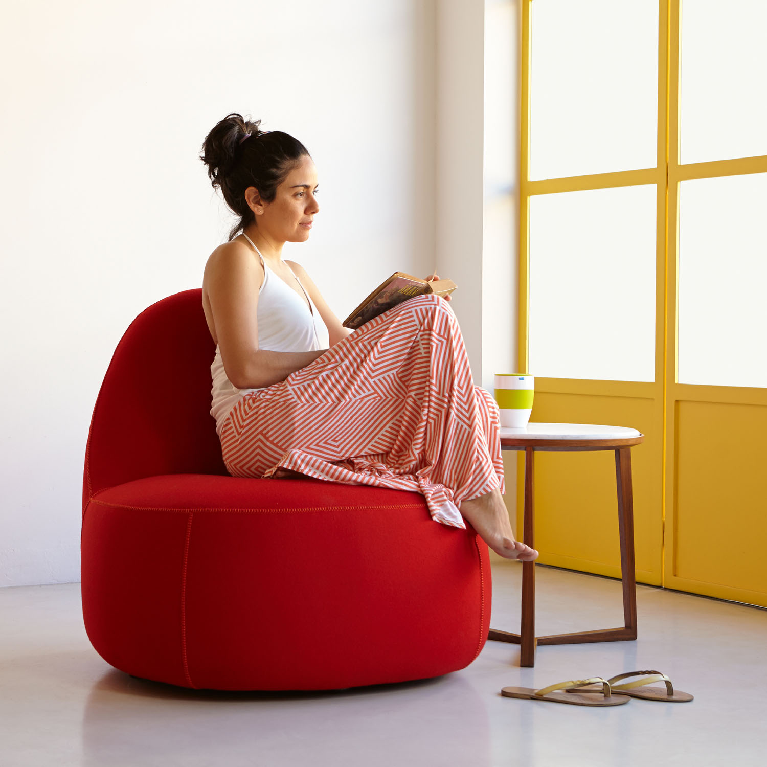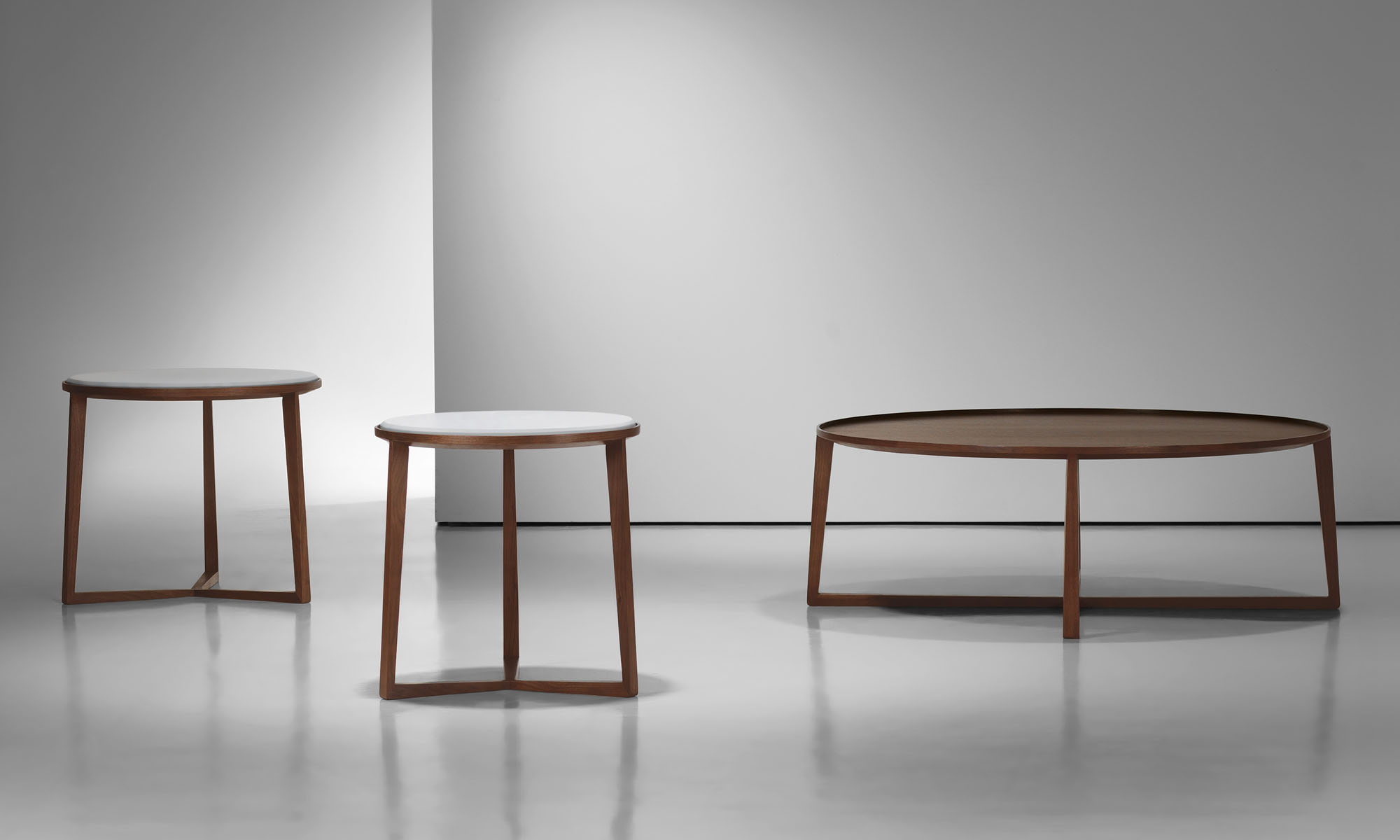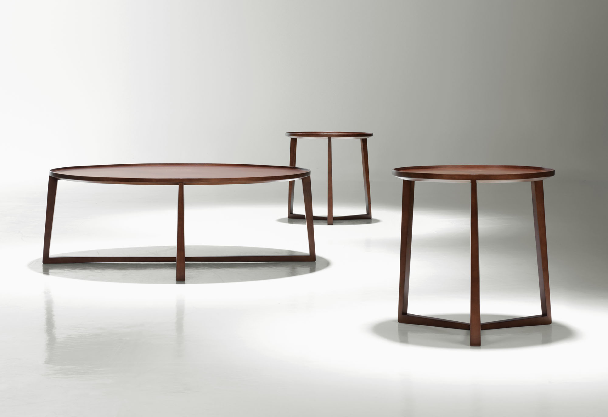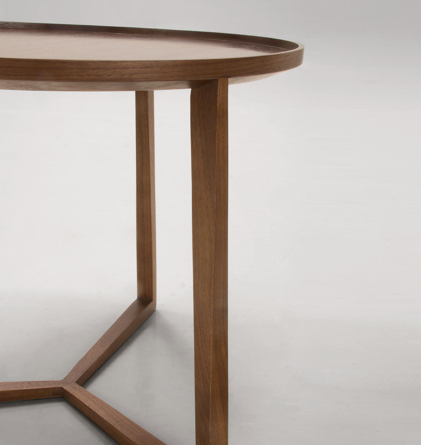 Curio is a cleverly designed and functional table with universal charm for any interior space. A beveled tabletop and sculpted rim offer details reminiscent of a classic tray table, while the frame spotlights three structural tapered legs.