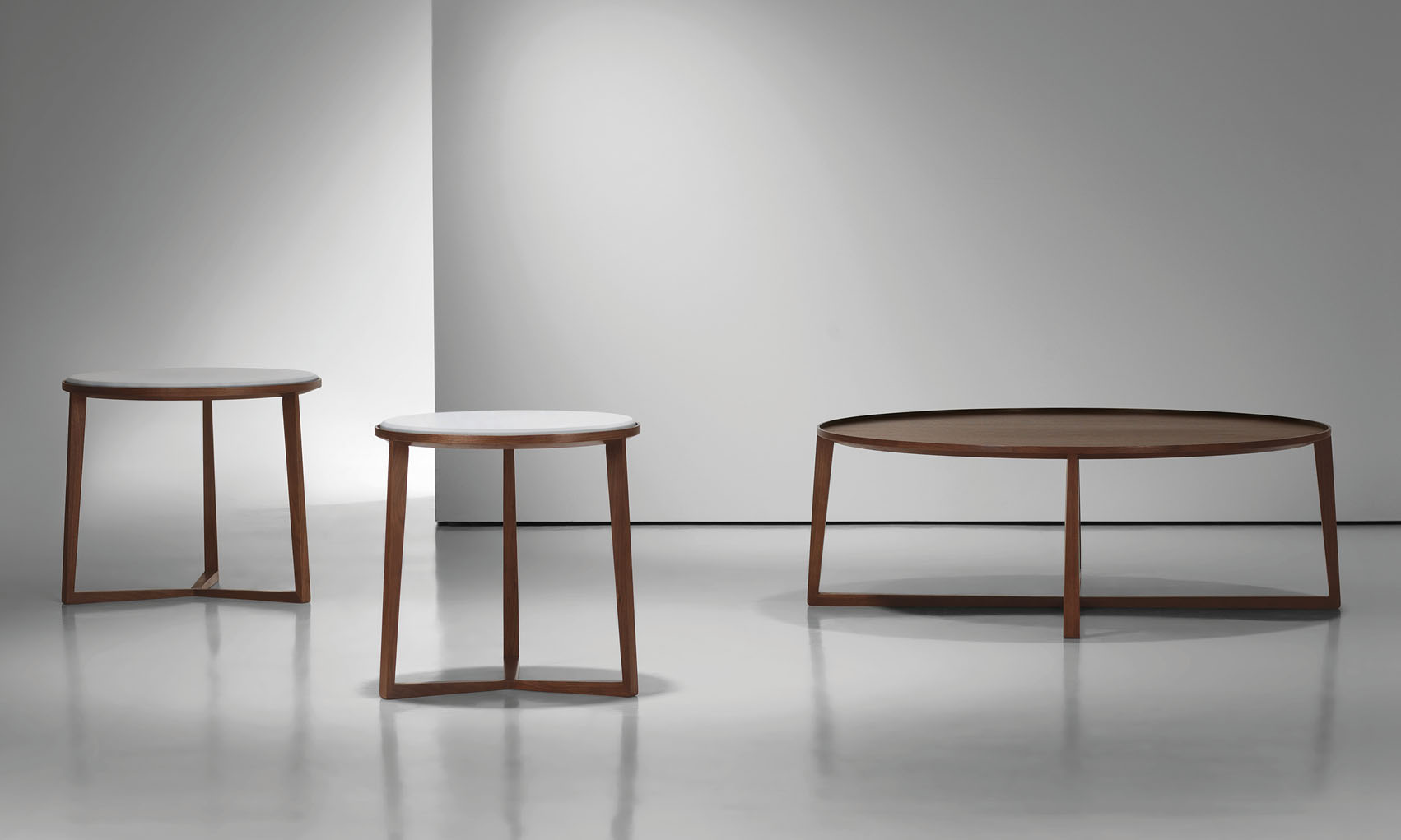 Curio occasional tabletops are available in maple, walnut, or with Starfire® glass.