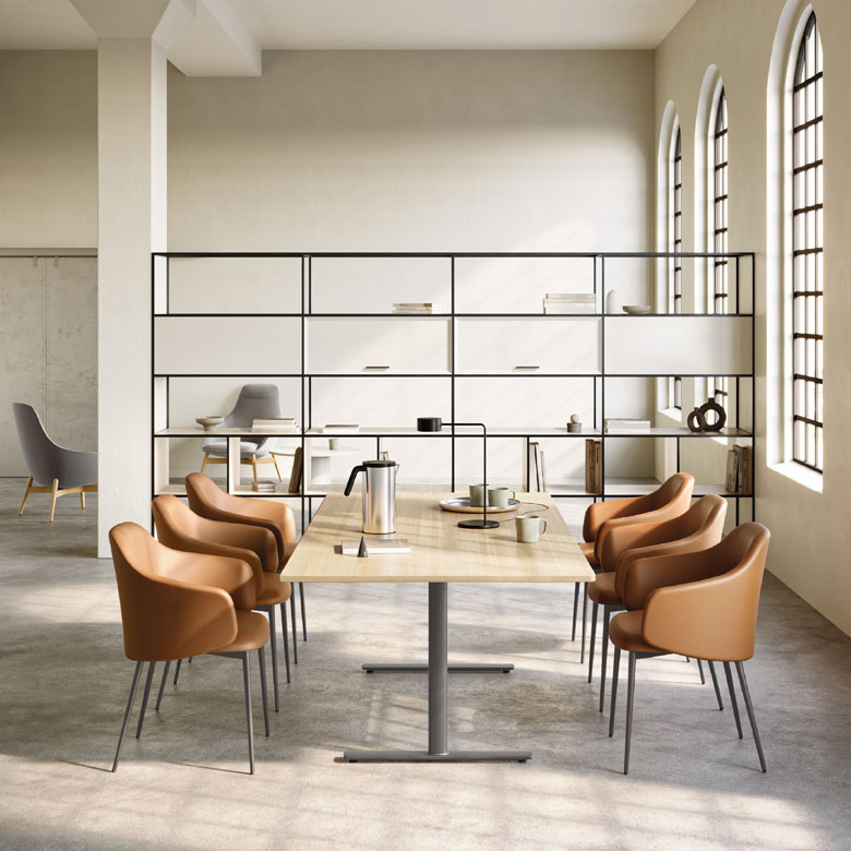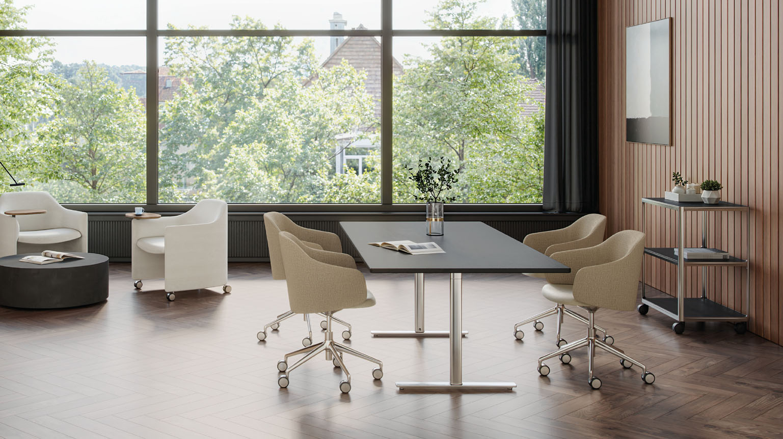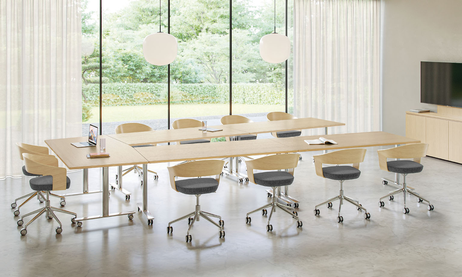 The Dillon table collection captures attention without demanding it. Its clean aesthetic and numerous configuration options provide a practical solution for flexible office environments that require reconfiguration and easy storage. Dillon tables promote interaction and connection in the workplace, making them ideal for dynamic and collaborative spaces.