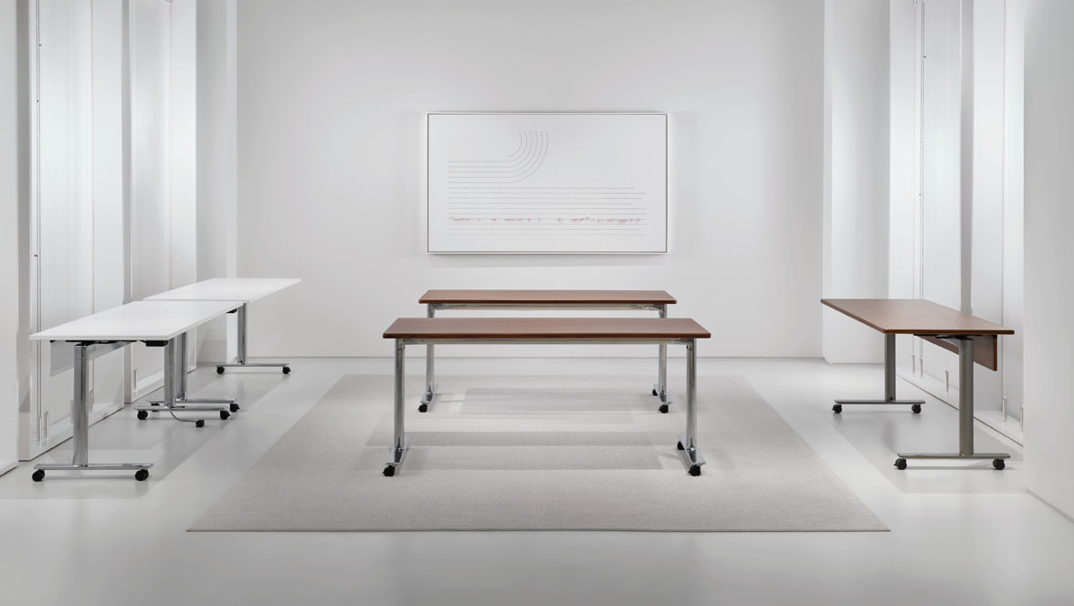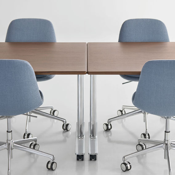 The Dillon table collection captures attention without demanding it. Its clean aesthetic and numerous configuration options provide a practical solution for flexible office environments that require reconfiguration and easy storage. Dillon tables promote interaction and connection in the workplace, making them ideal for dynamic and collaborative spaces.