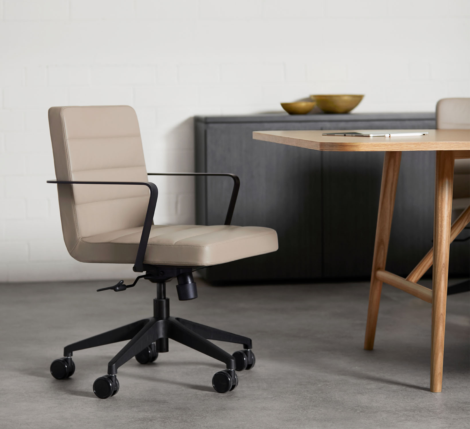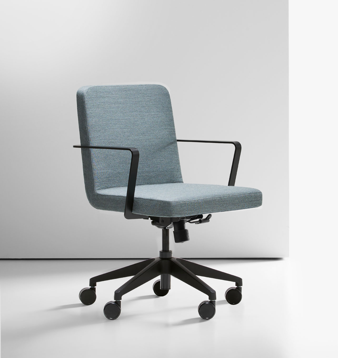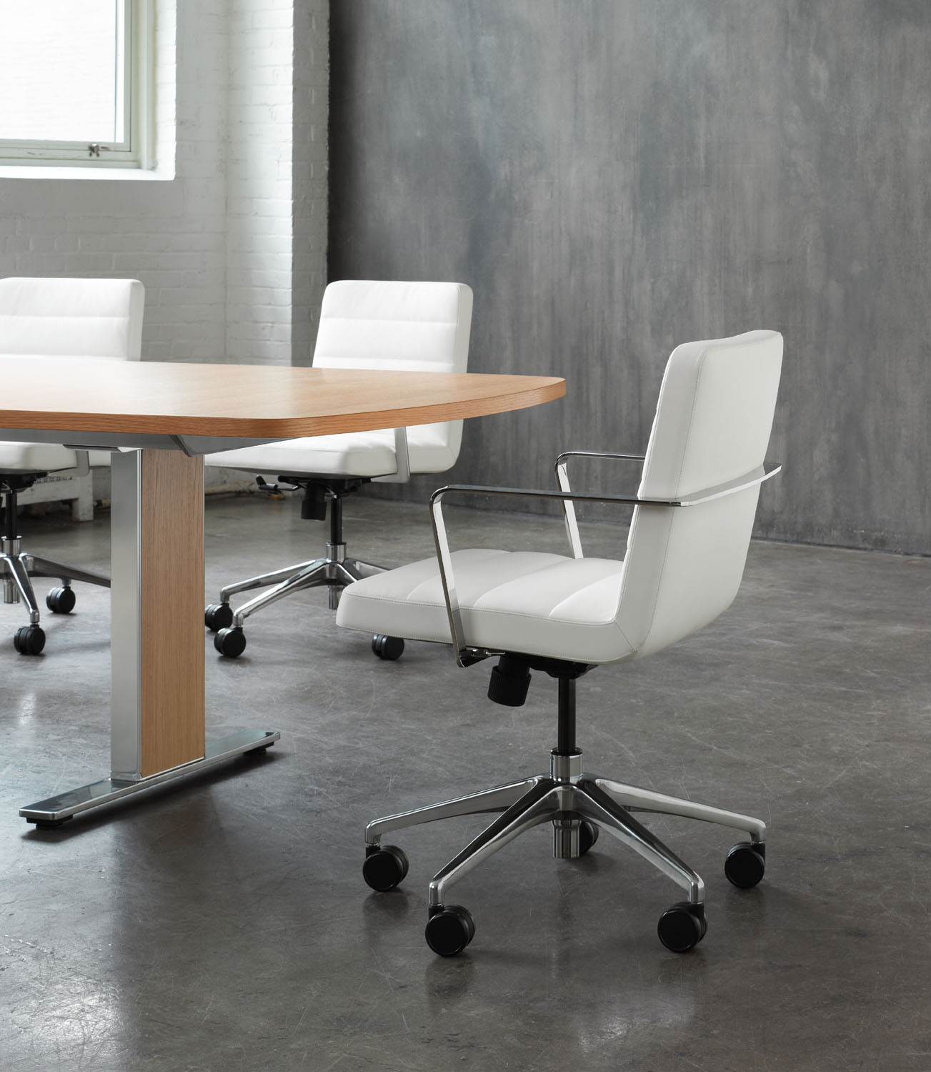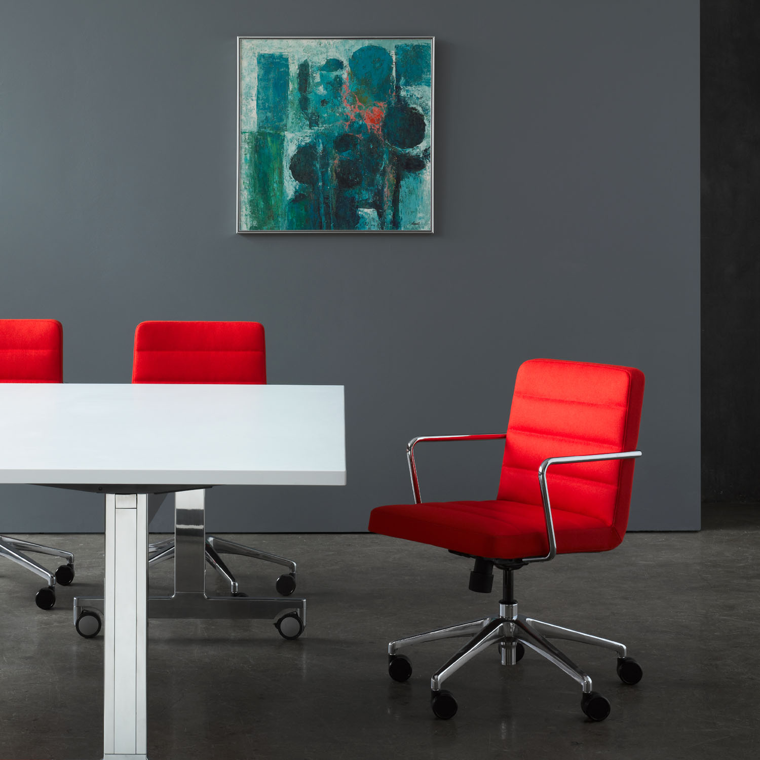 The Duet swivel is a well-crafted chair that blends seamlessly into its surroundings. Its subtle qualities make it a flexible and functional chair, incorporating the elements of an elegant, larger chair with the footprint of a stacking chair. Duet’s design emphasizes two key components: scale and quality. It is suitable for use in breakout, dining, multi-purpose, and conference rooms that have limited space.