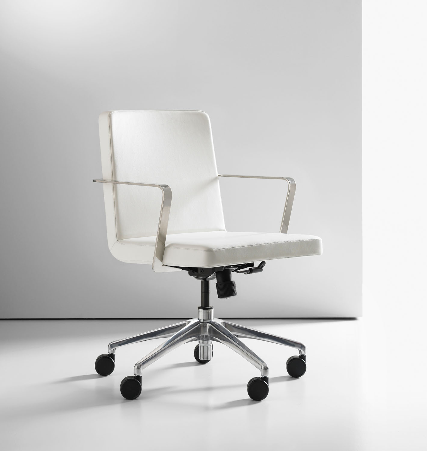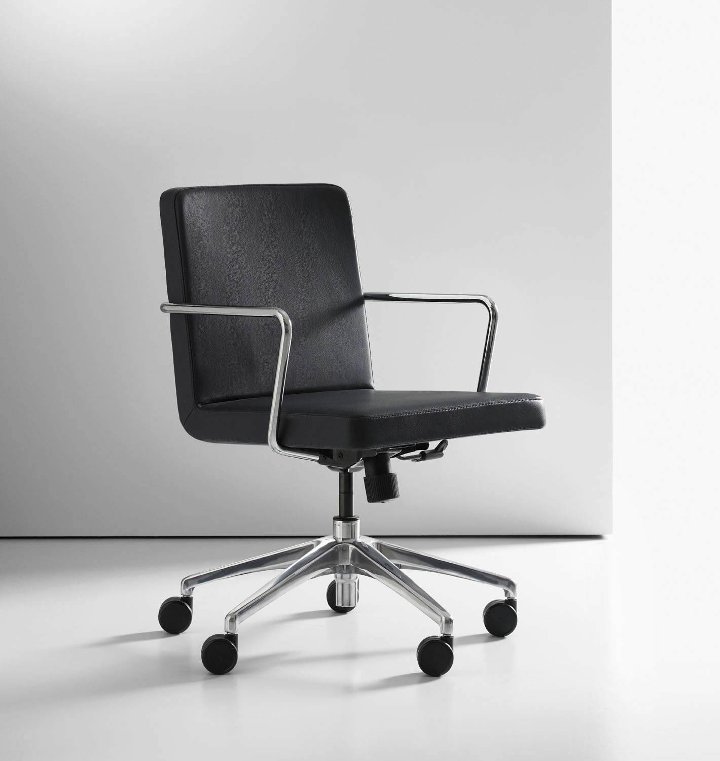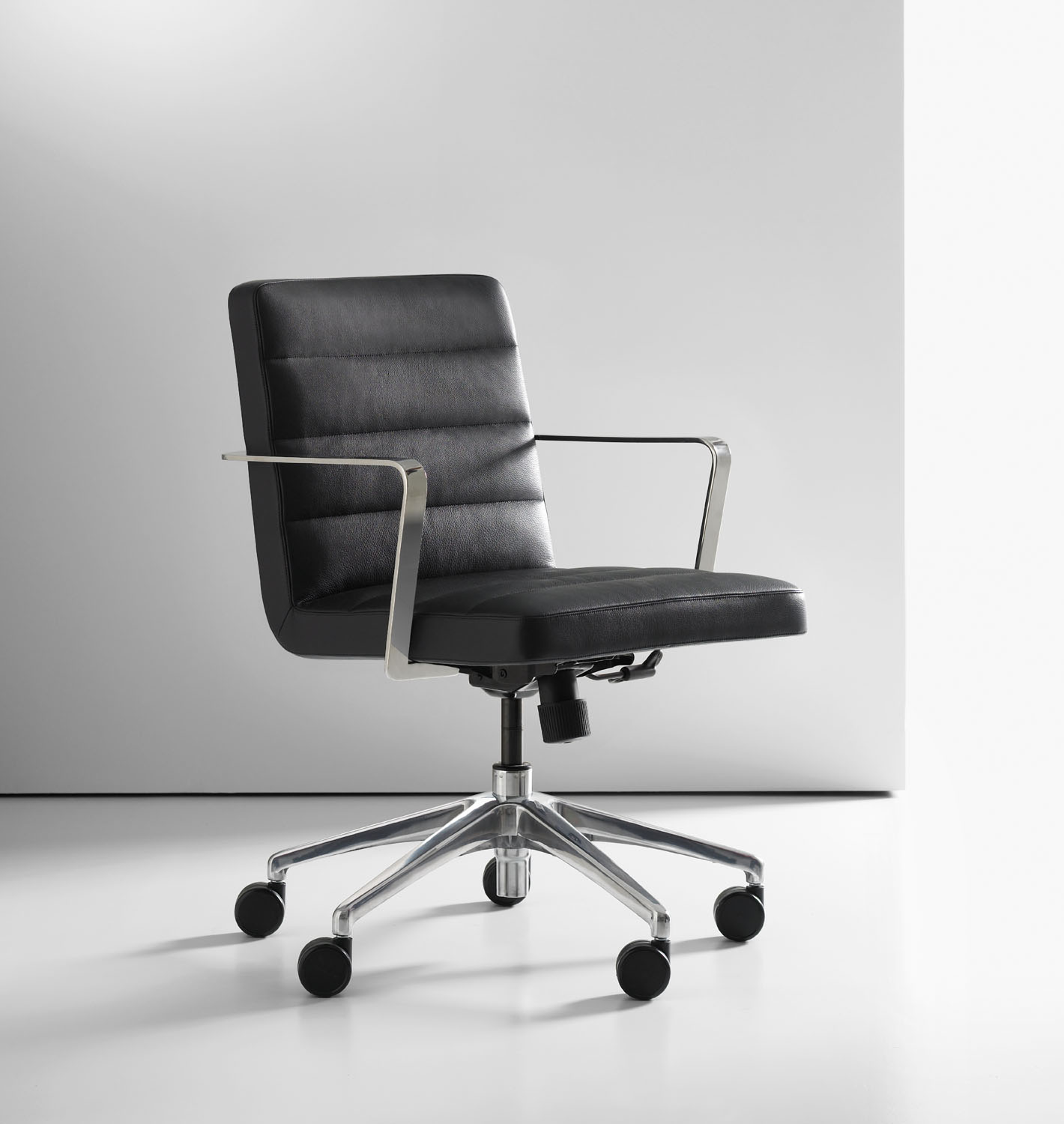 Duet is supported by a five-star polished aluminum or matte black base with dual-wheel casters.