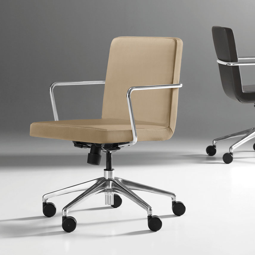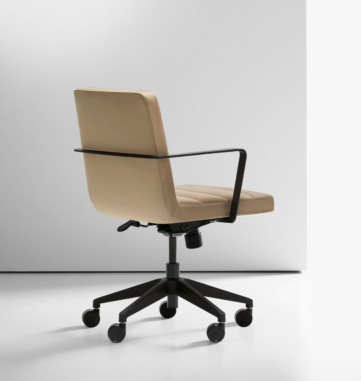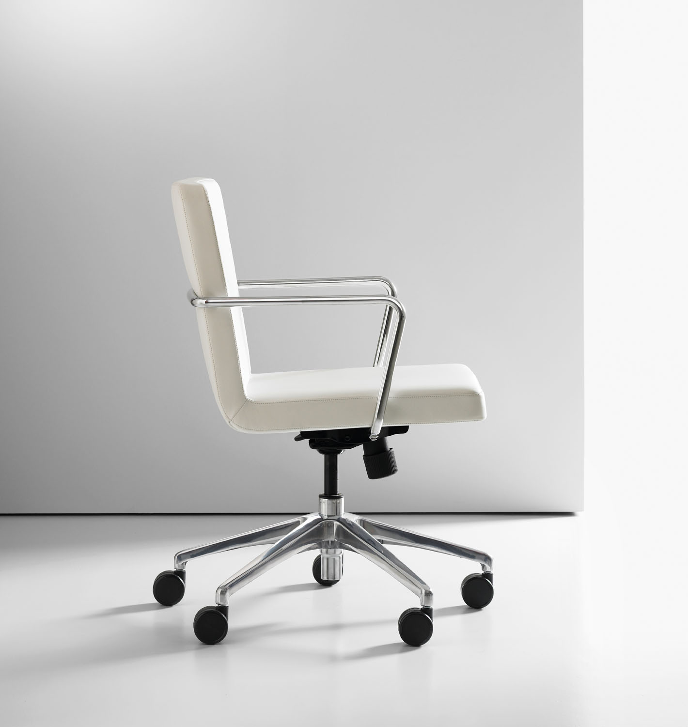 Duet is supported by a five-star polished aluminum or matte black base with dual-wheel casters.