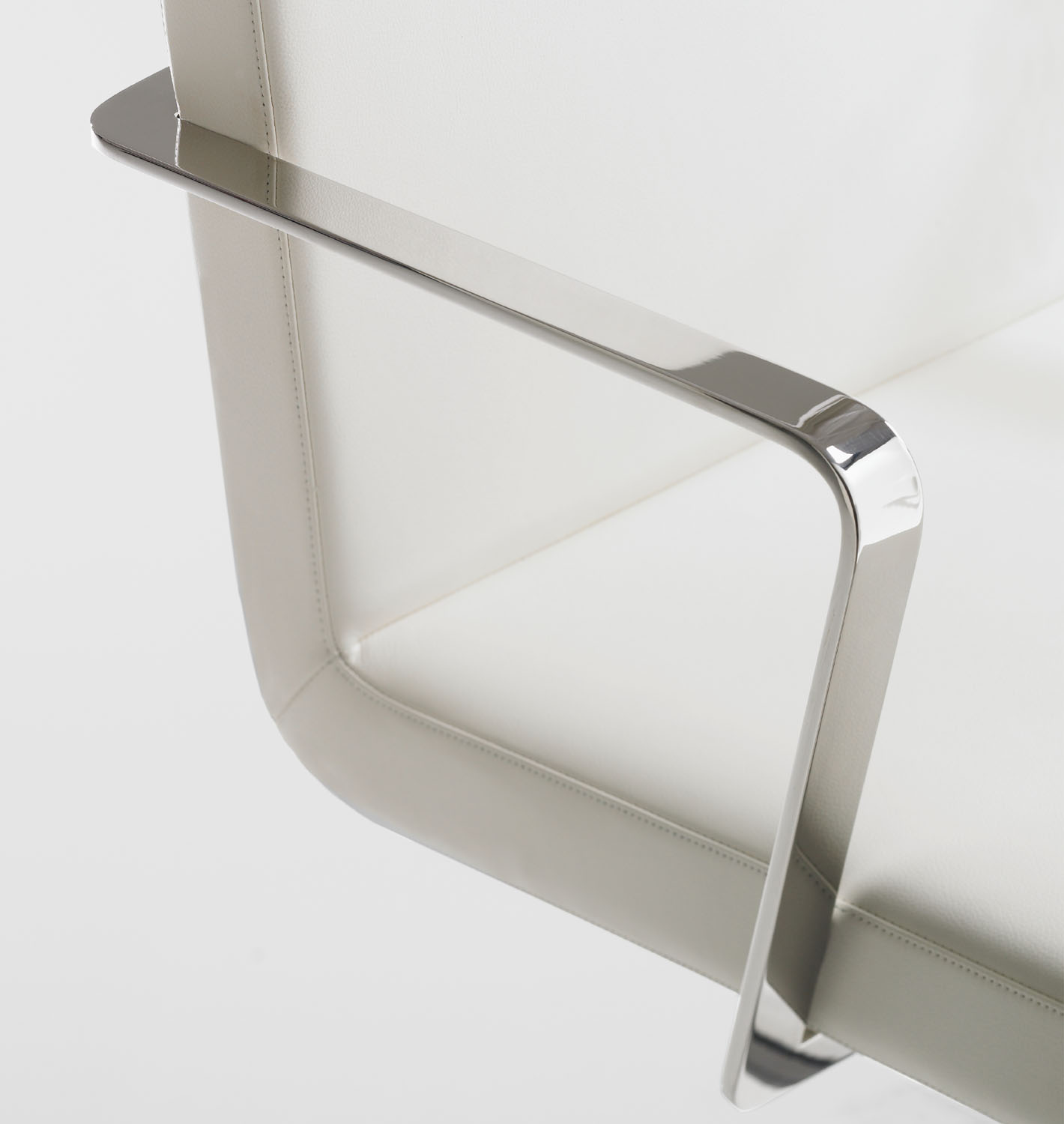 Arm options include tubular polished chrome, flat polished stainless steel, or matte black.