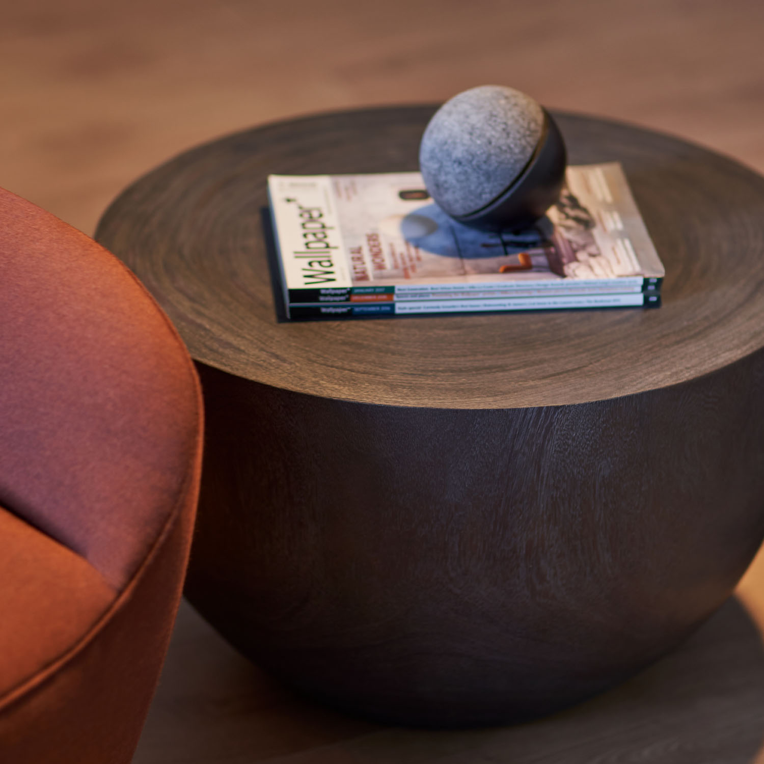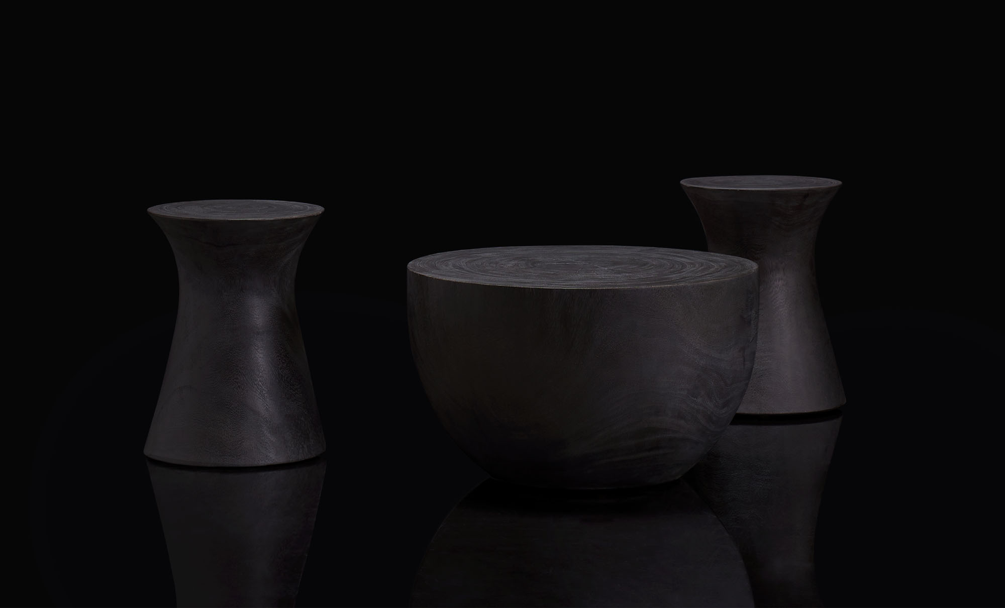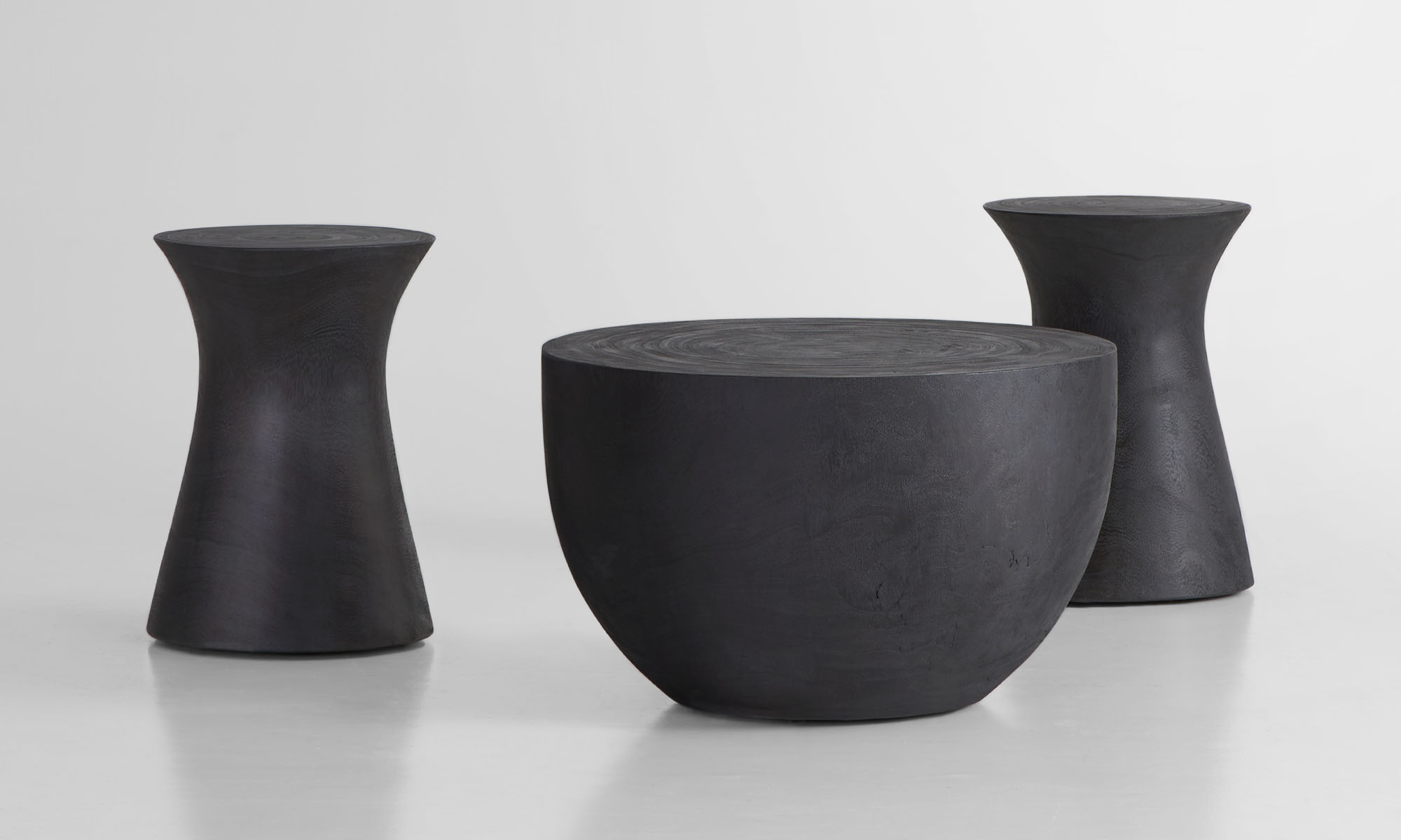 Interlocking wood grain gives beauty and character to the Dymen table collection. Constructed from solid suar wood, Dymen tables feature unique characteristics inherent to the natural material.