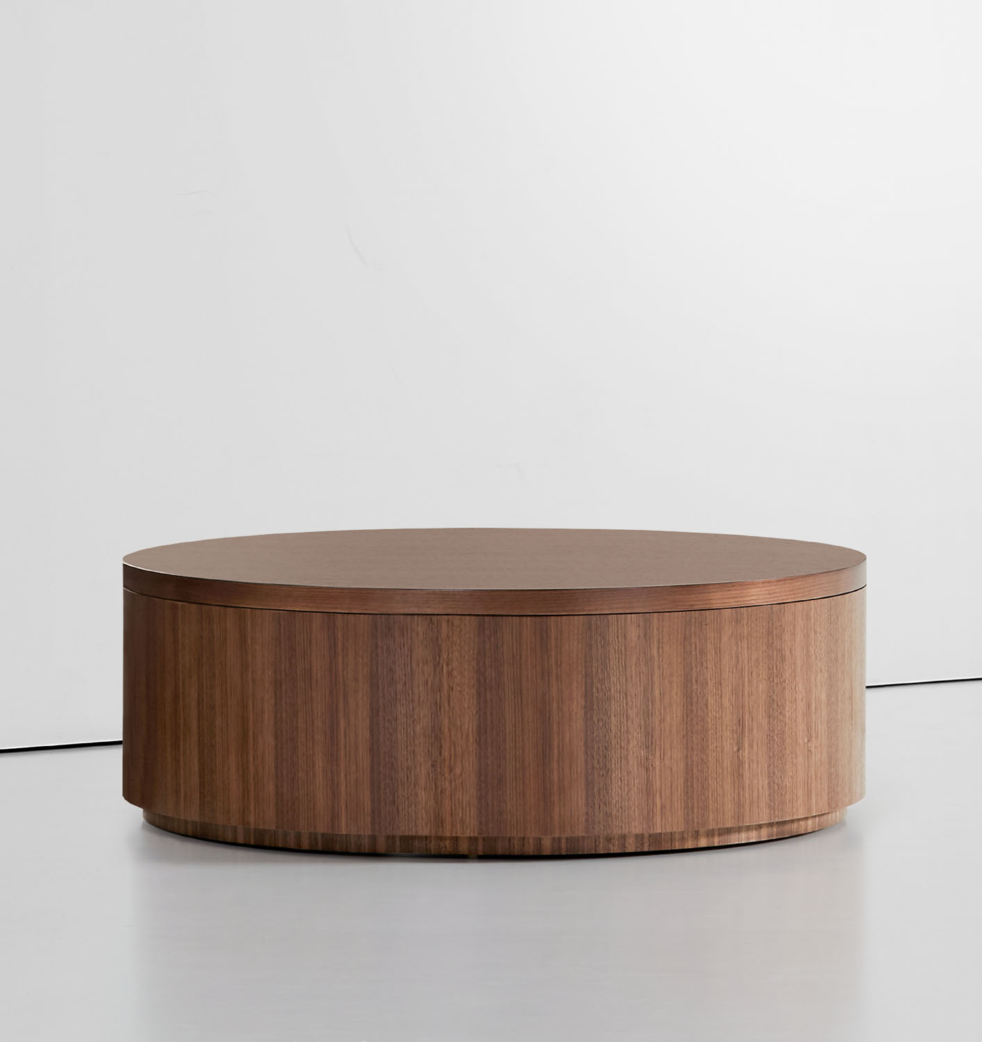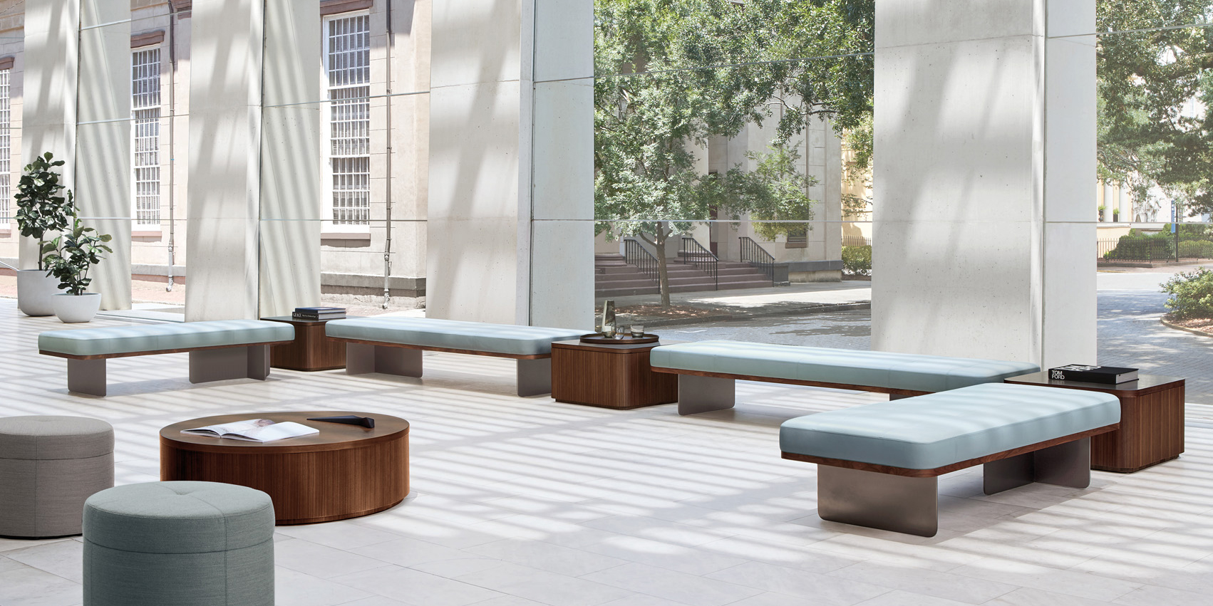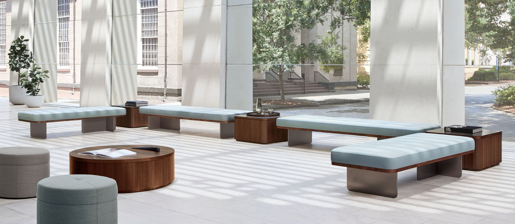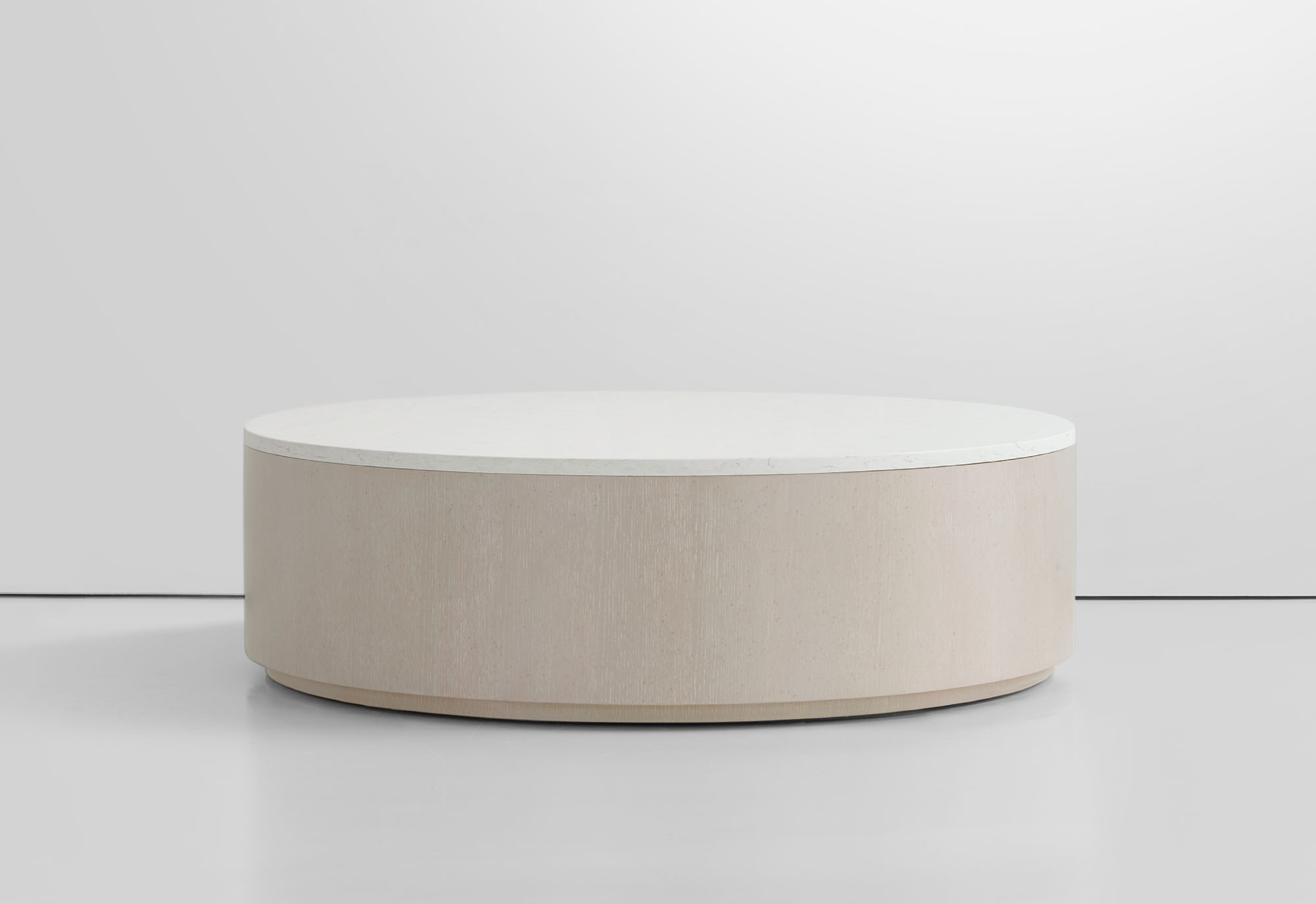 Elevation Drum tables include a series of round and square drum tables created to balance the linear design of other benches, ottomans, and tables in the Elevation modular collection.