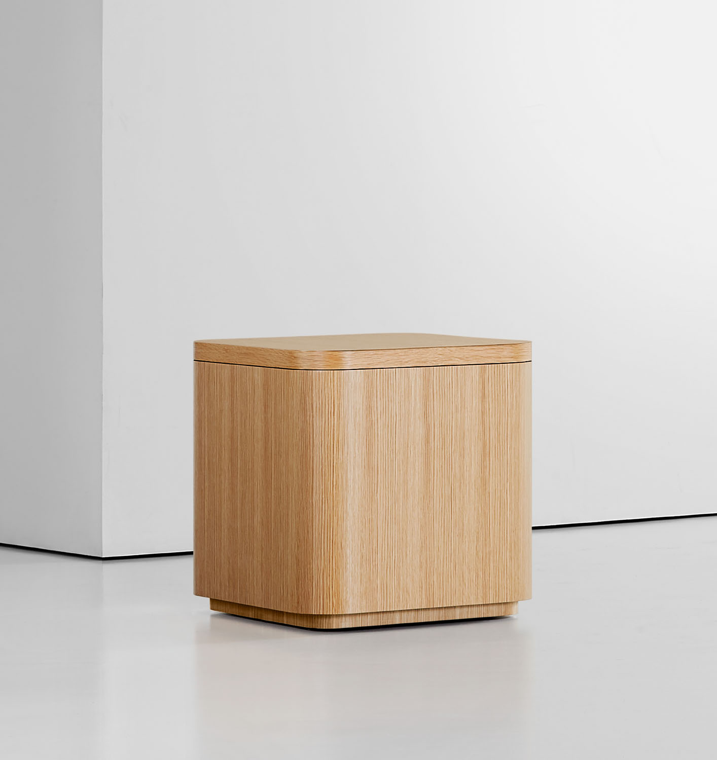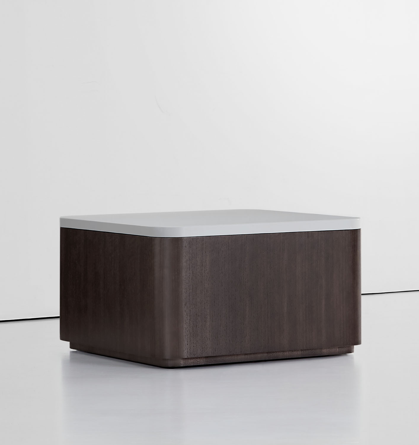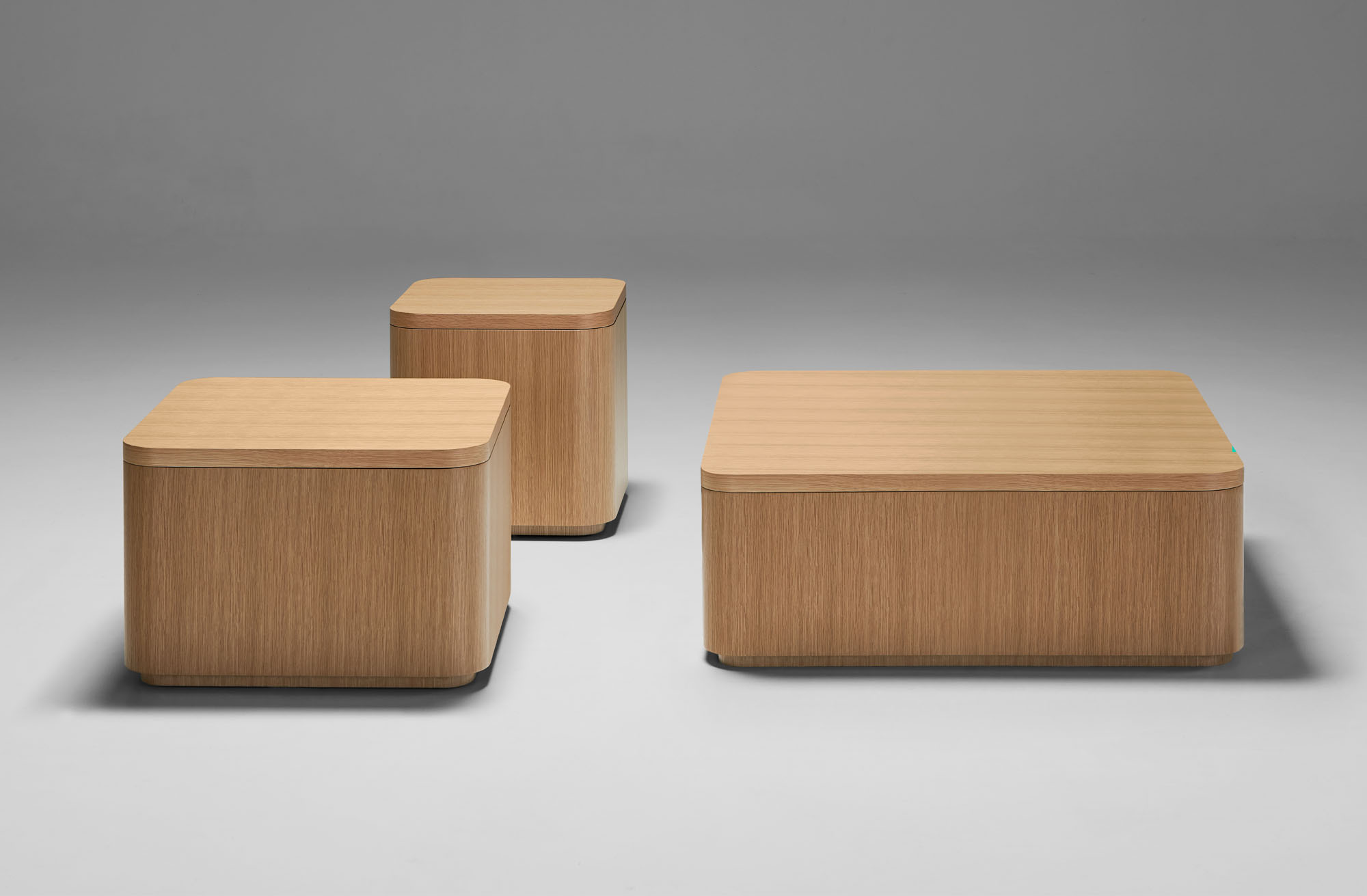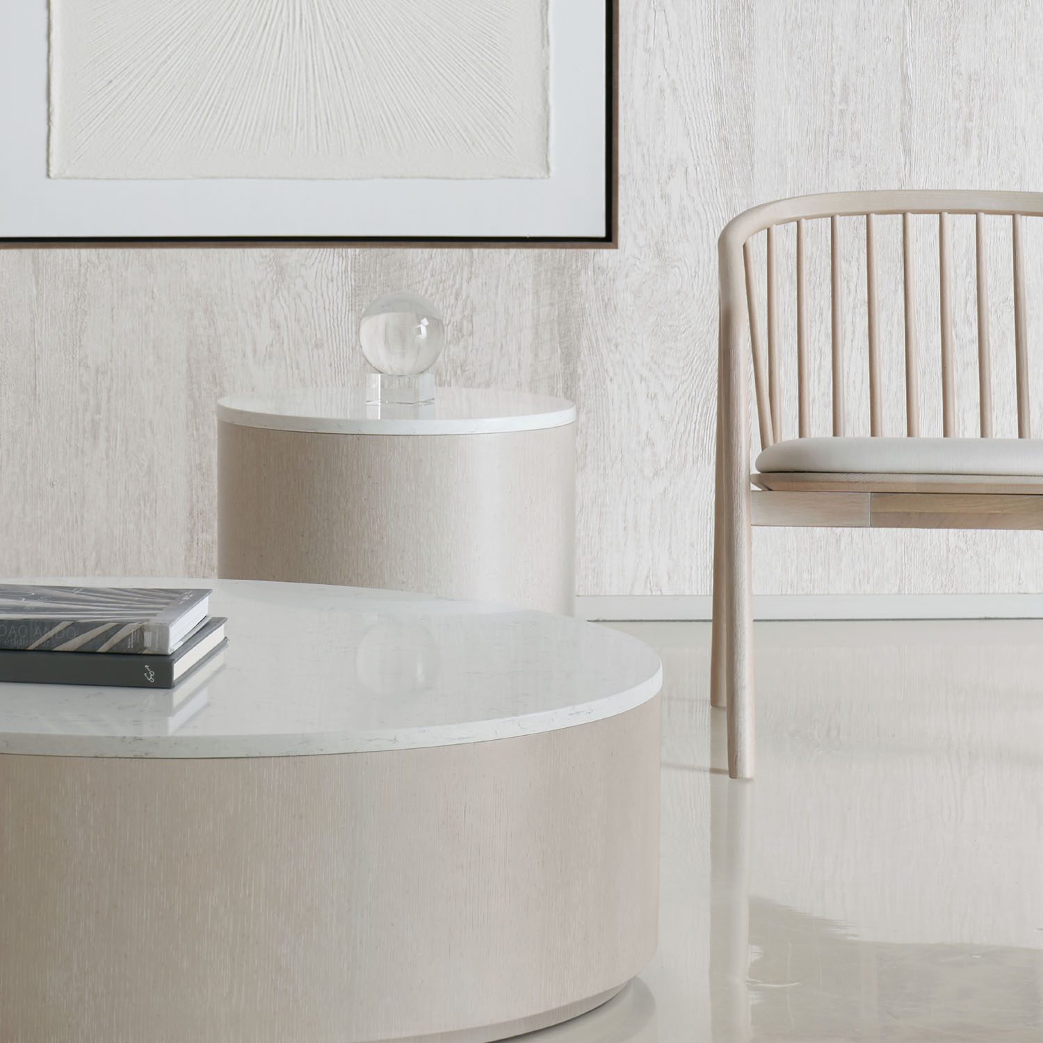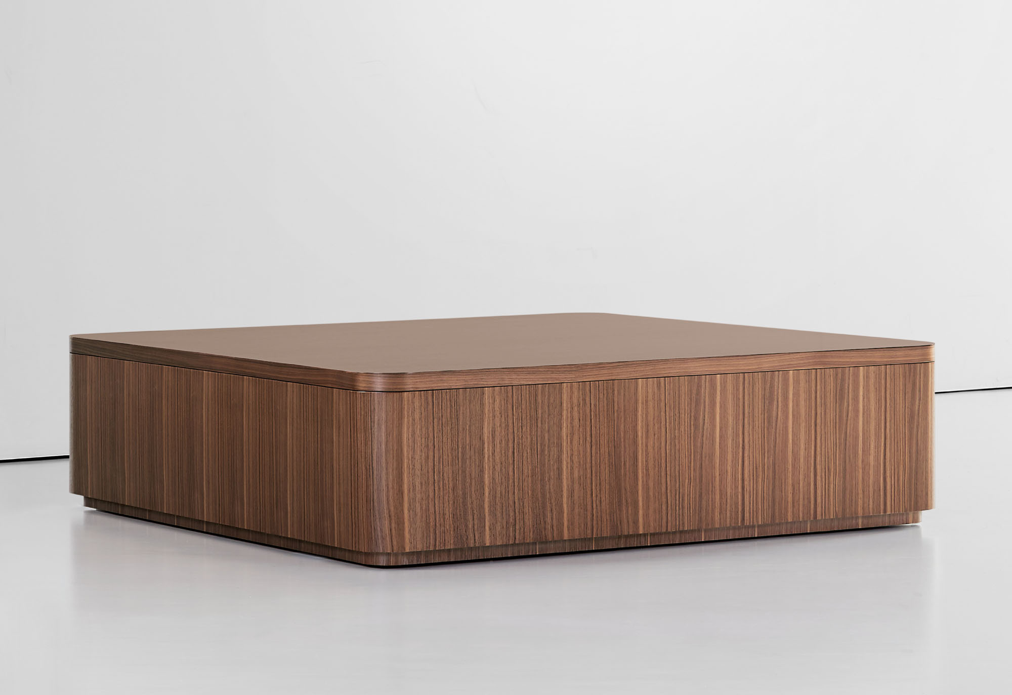 Elevation Drum tables include a series of round and square drum tables created to balance the linear design of other benches, ottomans, and tables in the Elevation modular collection.