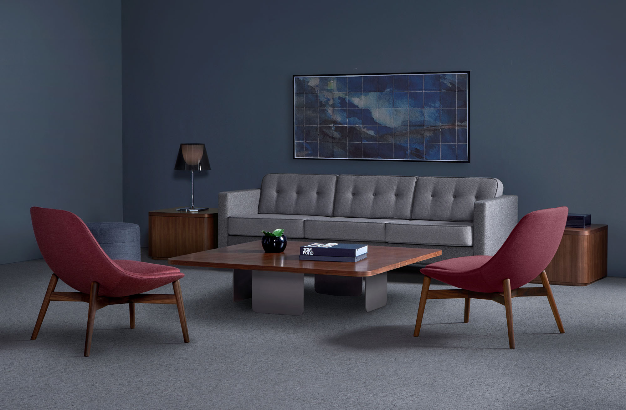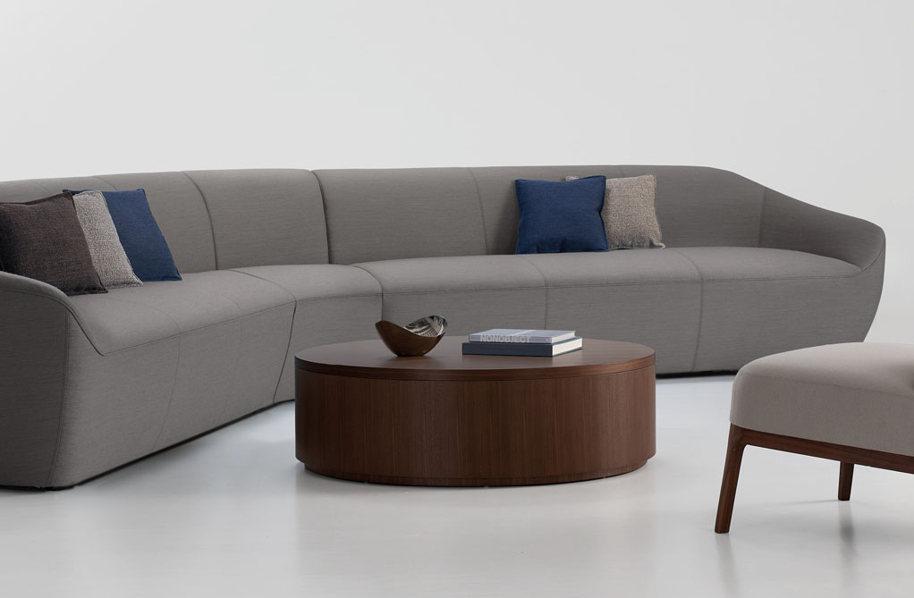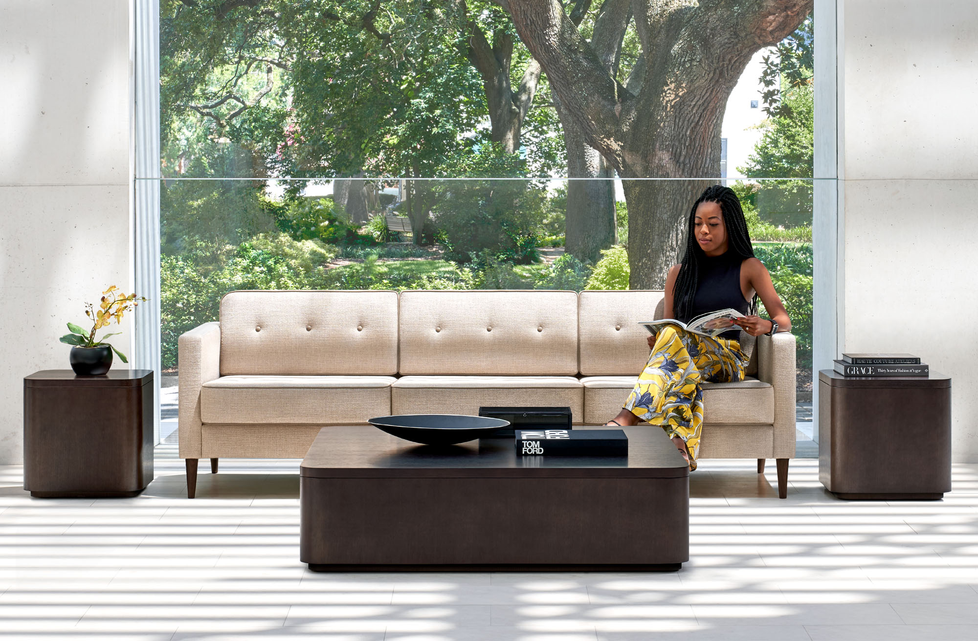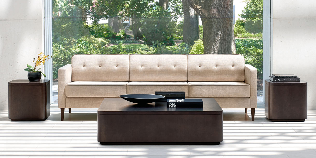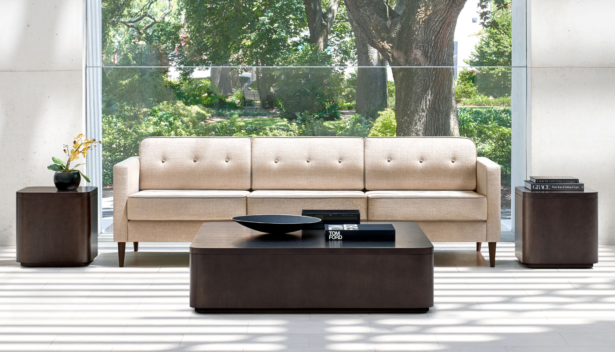 Elevation Drum tables include a series of round and square drum tables created to balance the linear design of other benches, ottomans, and tables in the Elevation modular collection.