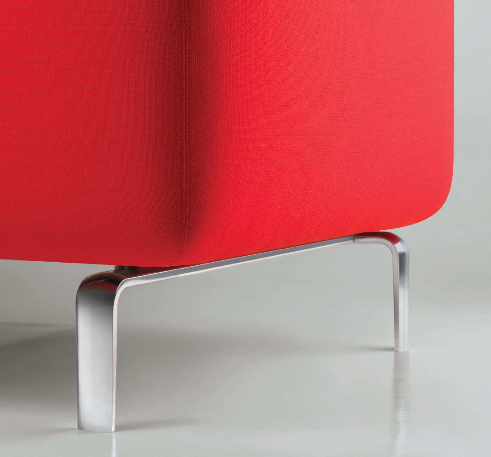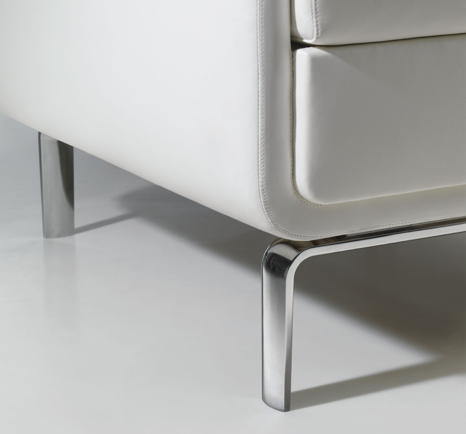 Gentle lines repeat in the polished aluminum legs that turn and twist to mimic the contours of the seat.