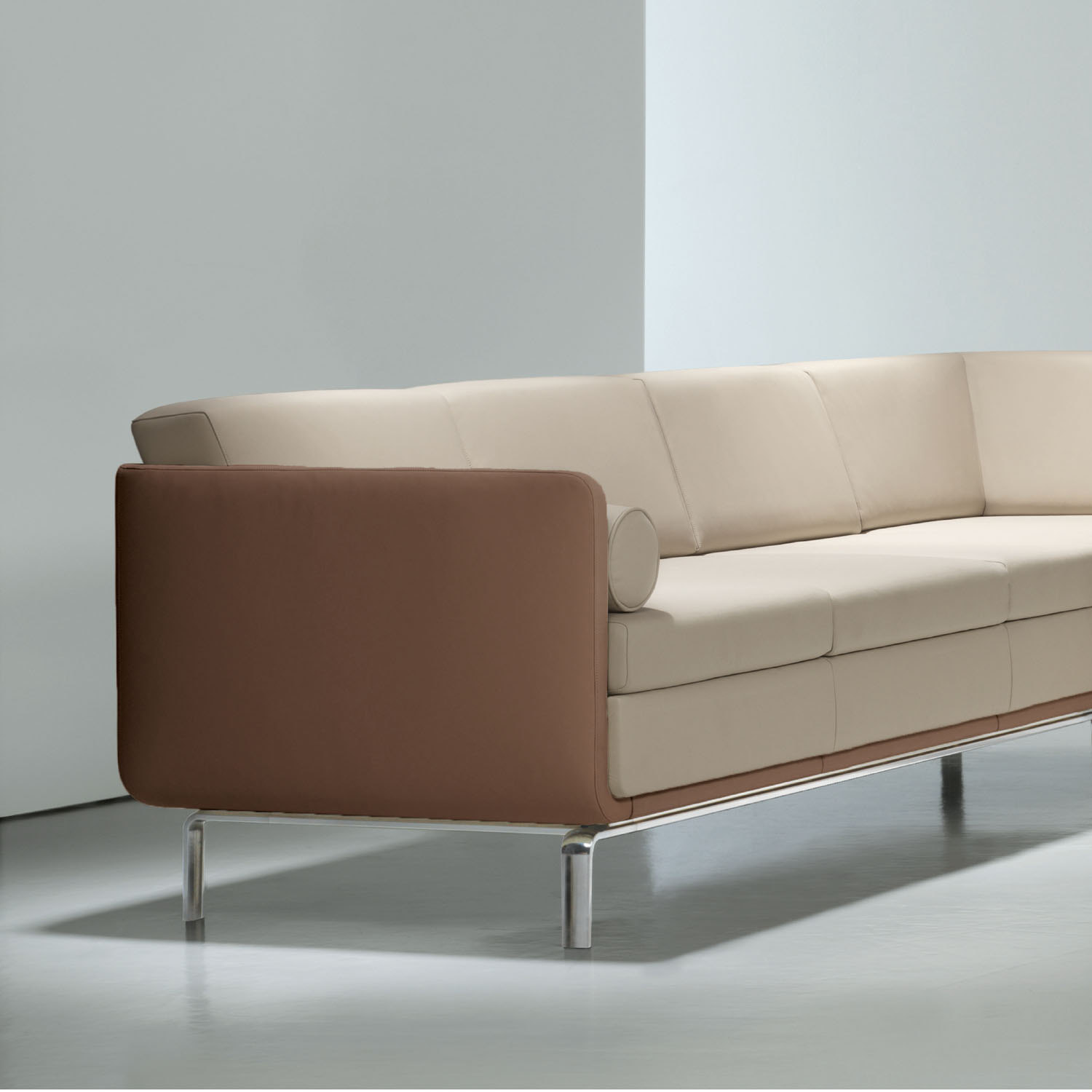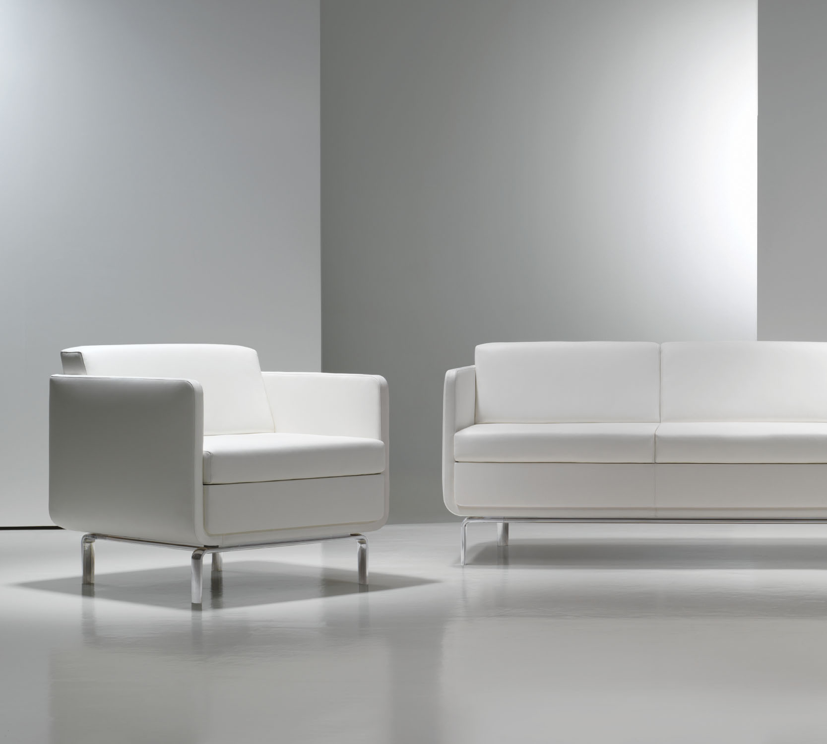 The Gaia collection ranges from single-seat lounge chairs, settees, and sofas to a collection of modular elements.