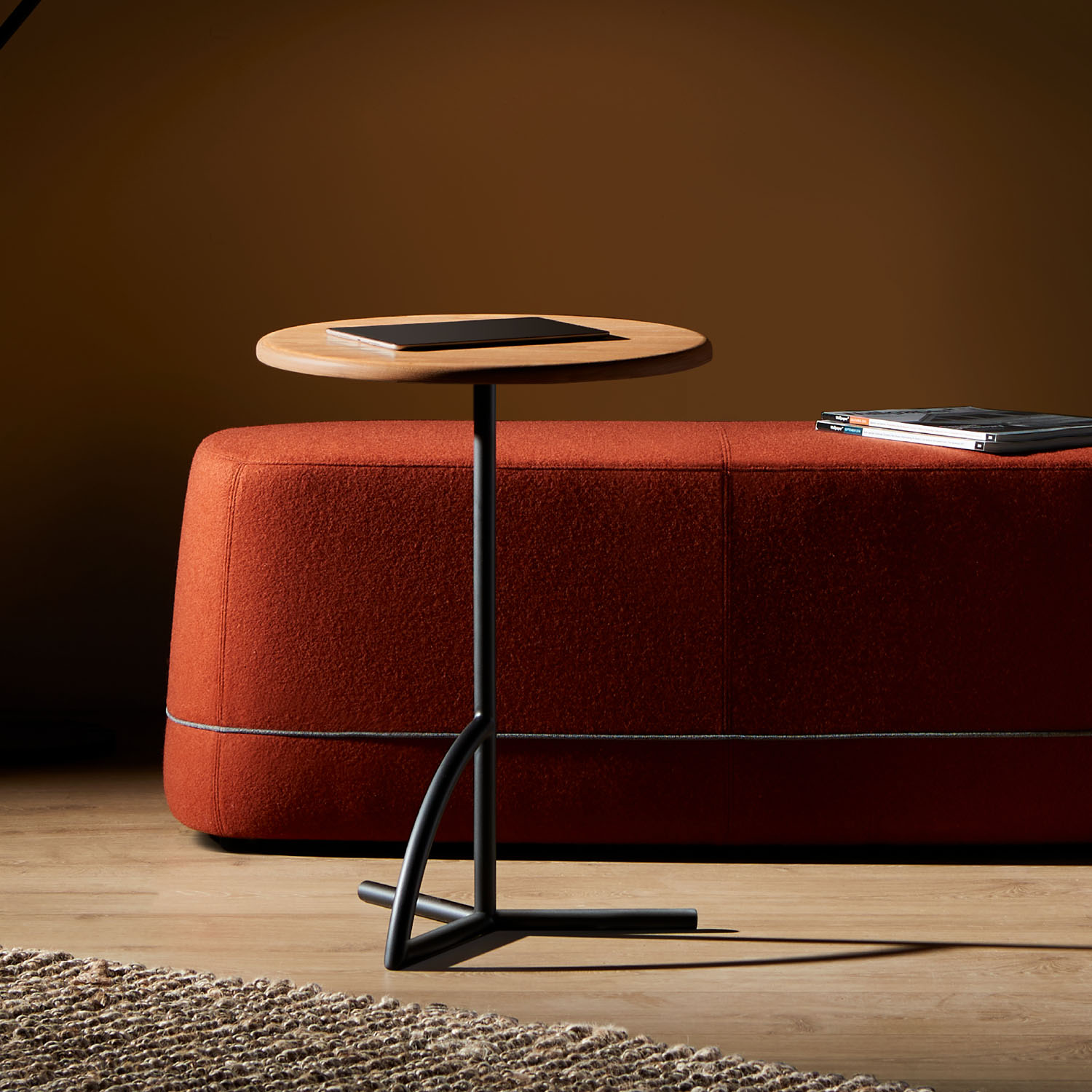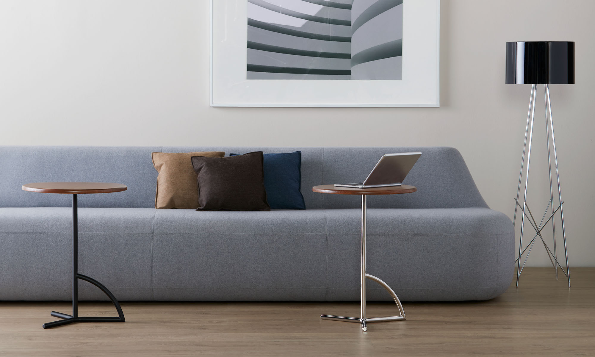 Composed of primary shapes, the Gwyn laptop table exhibits a simple and refined appearance. Its unadorned style contains no decorative or unnecessary elements.