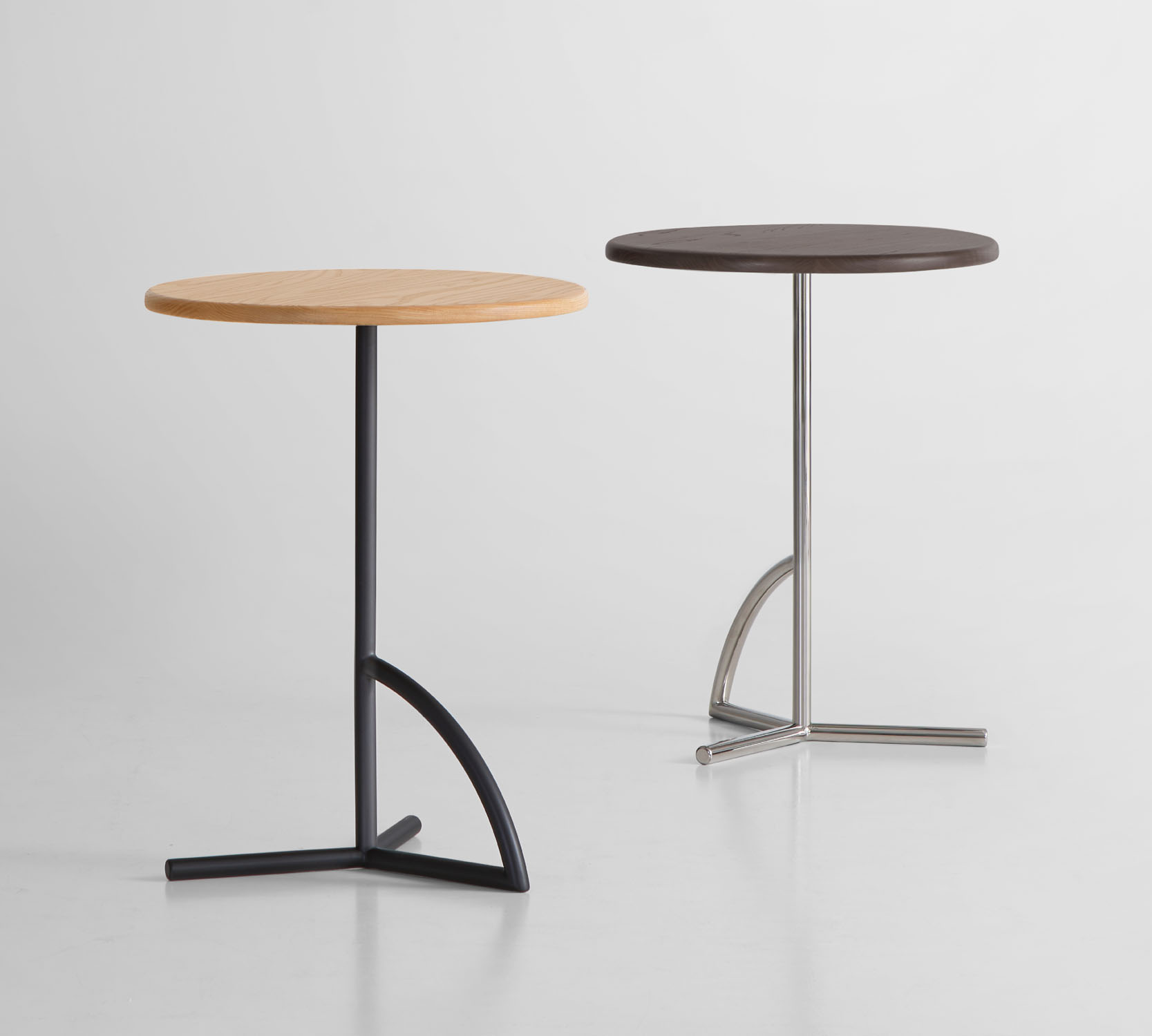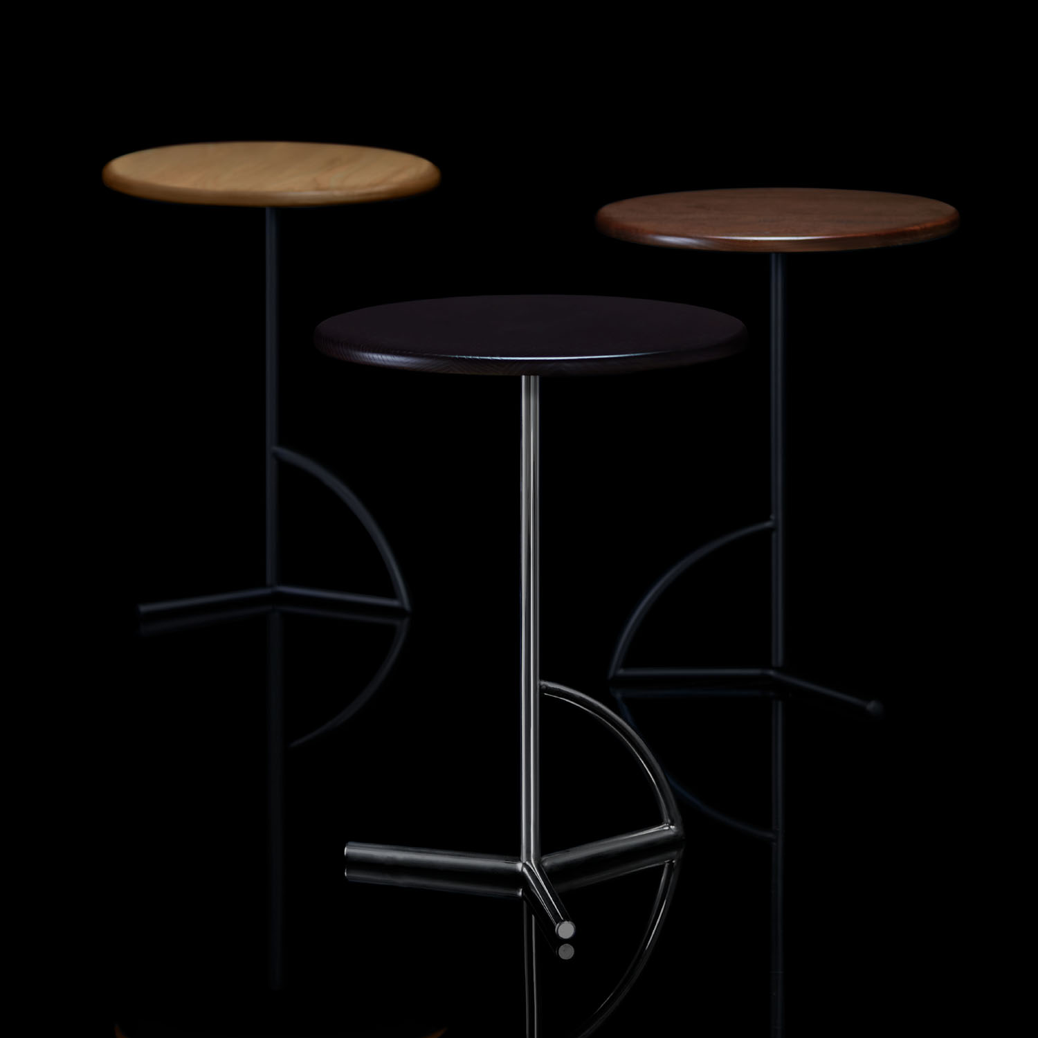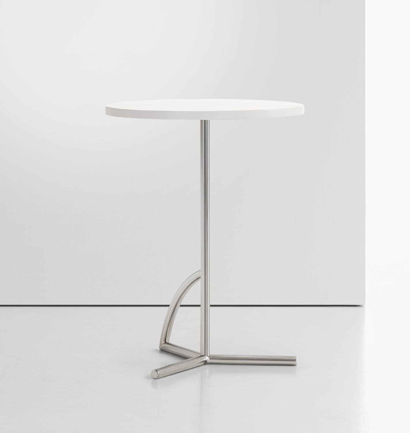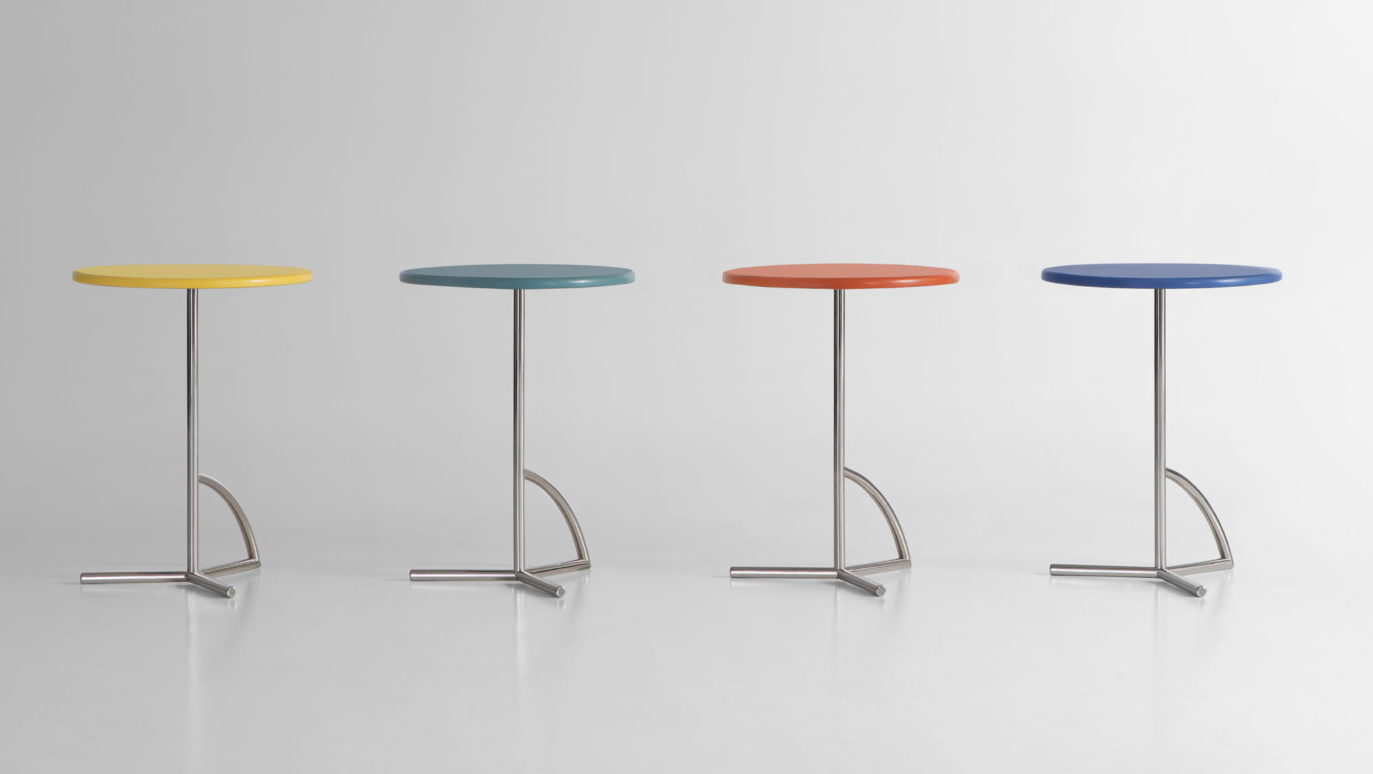 The tubular stainless-steel base is available polished and in a black or white powder coat finish.