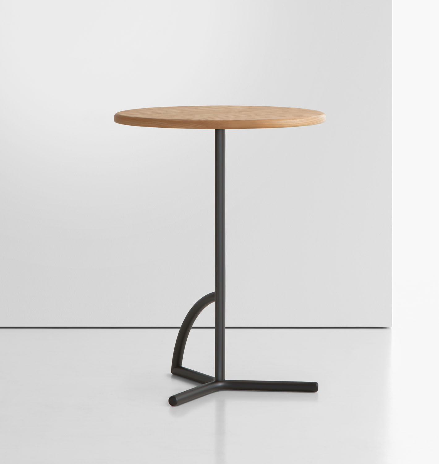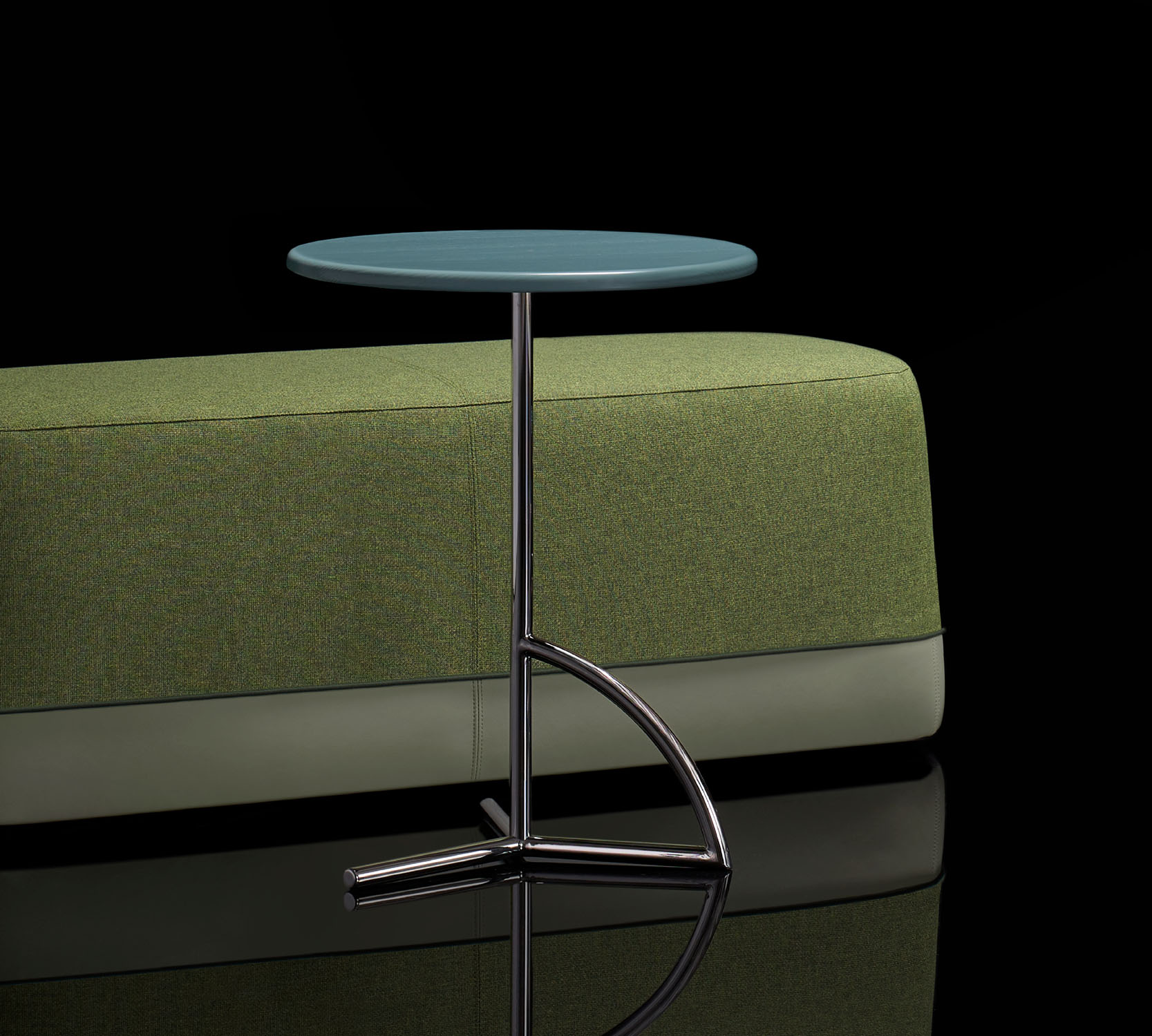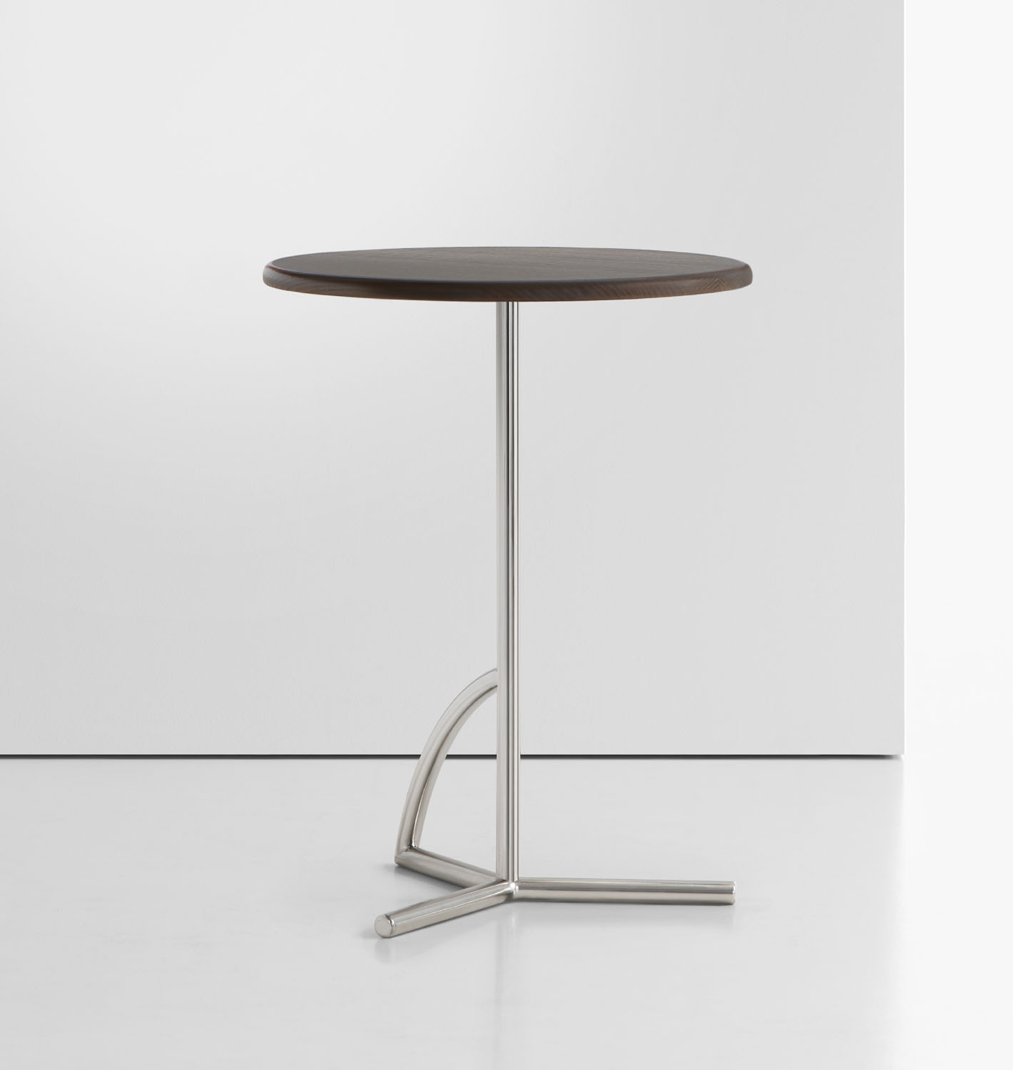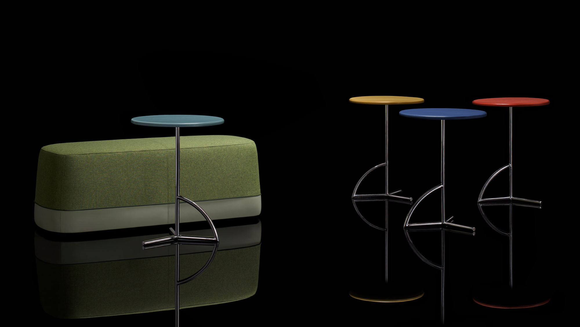 The tubular stainless-steel base is available polished and in a black or white powder coat finish.