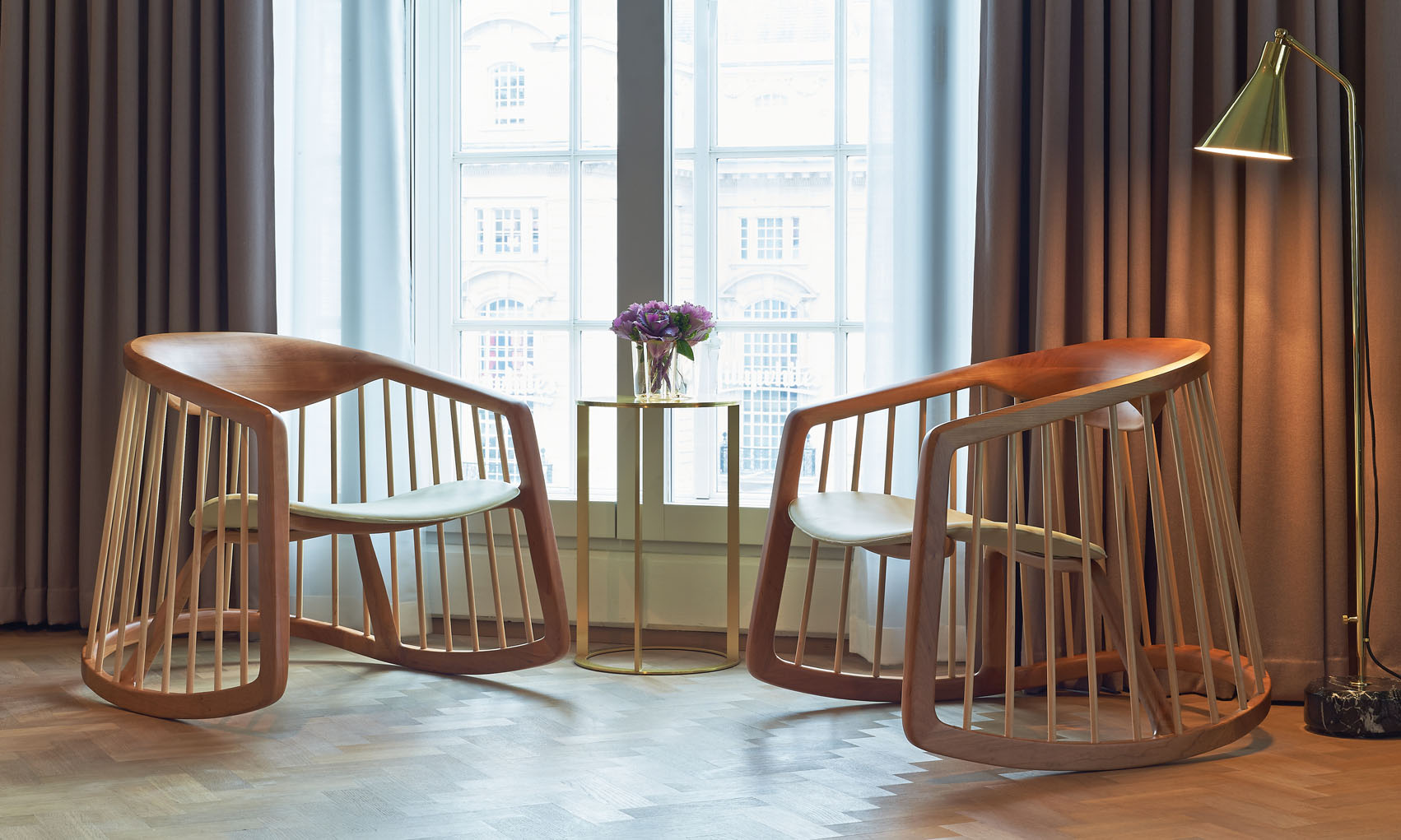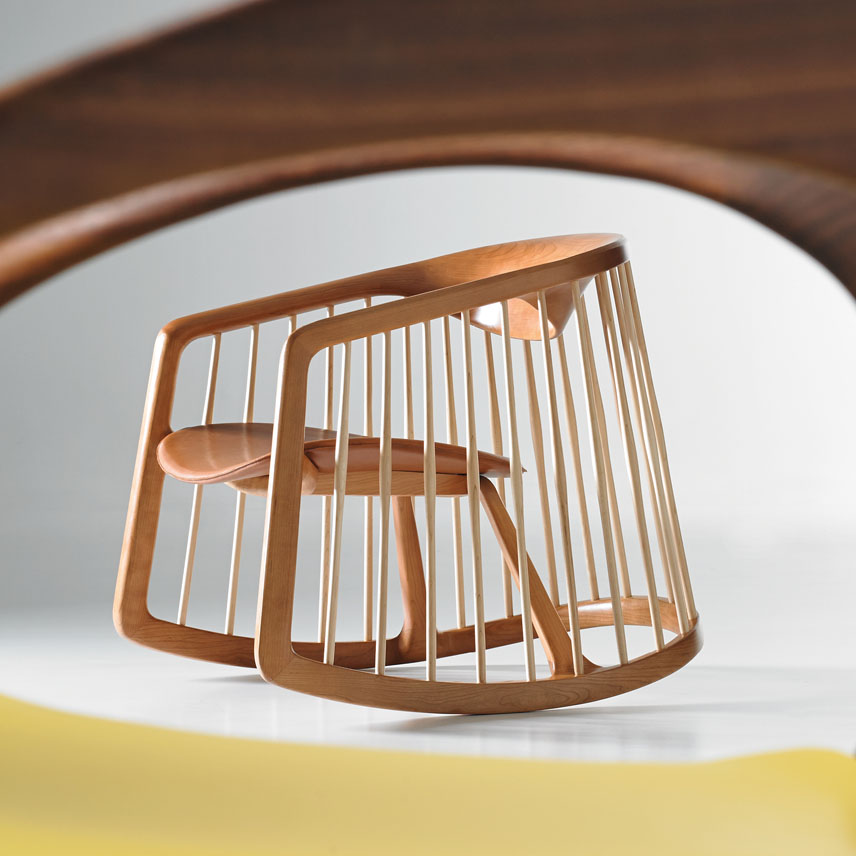 Harper is the classic Windsor rocking chair reimagined. Designed to commemorate 125 years of Bernhardt Design, Harper celebrates the company’s heritage, imagination, and craftsmanship. The goal was to create harmony between its various elements to form an unbroken line. This atypical arrangement of parts generates something more contemporary while remaining true to its historical reference.