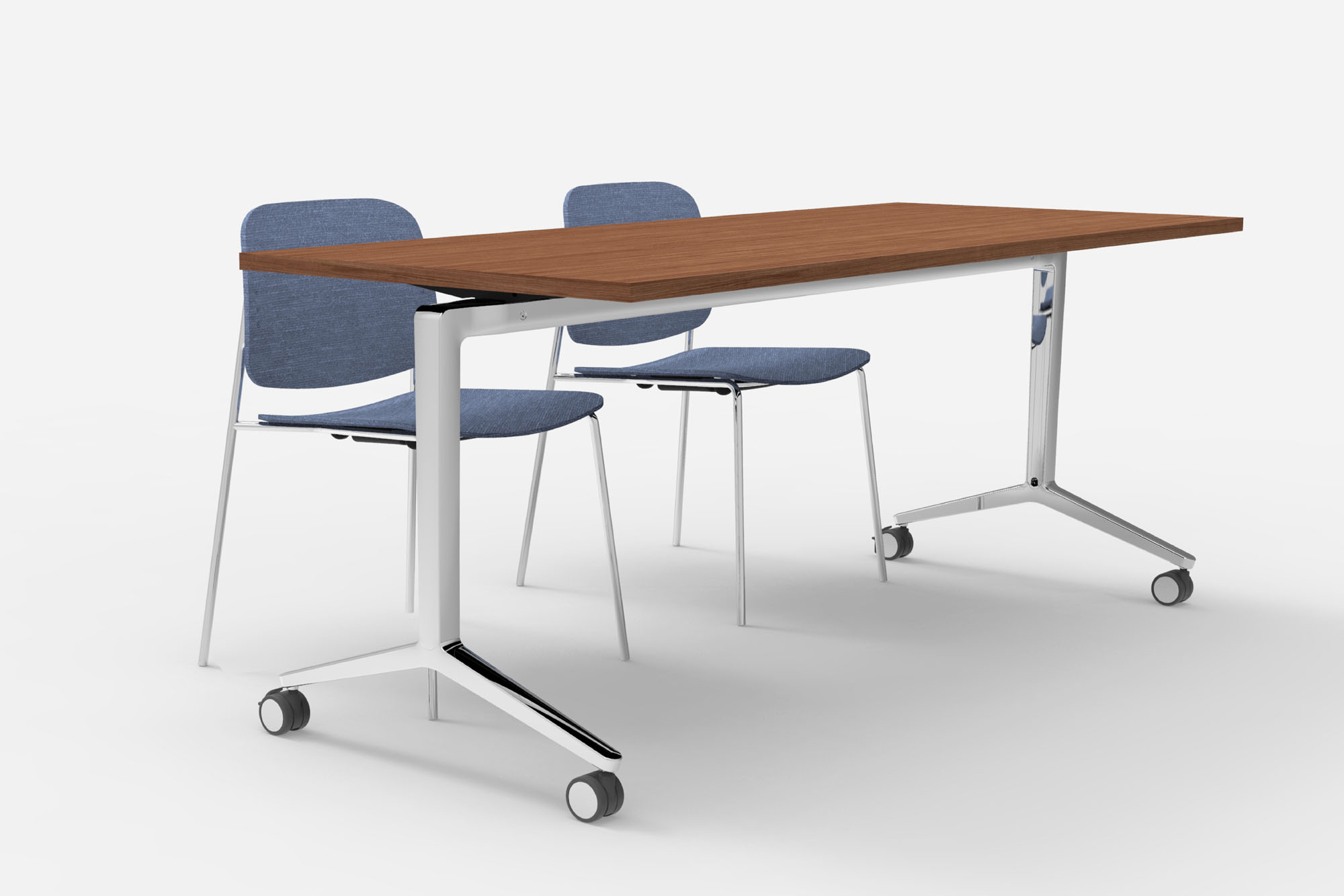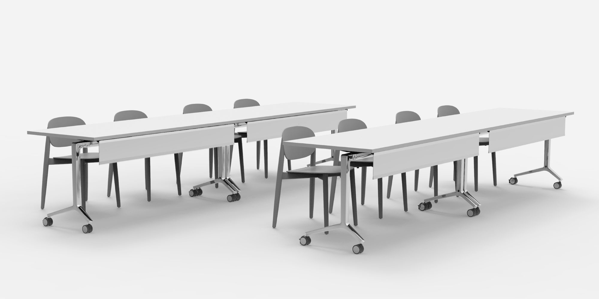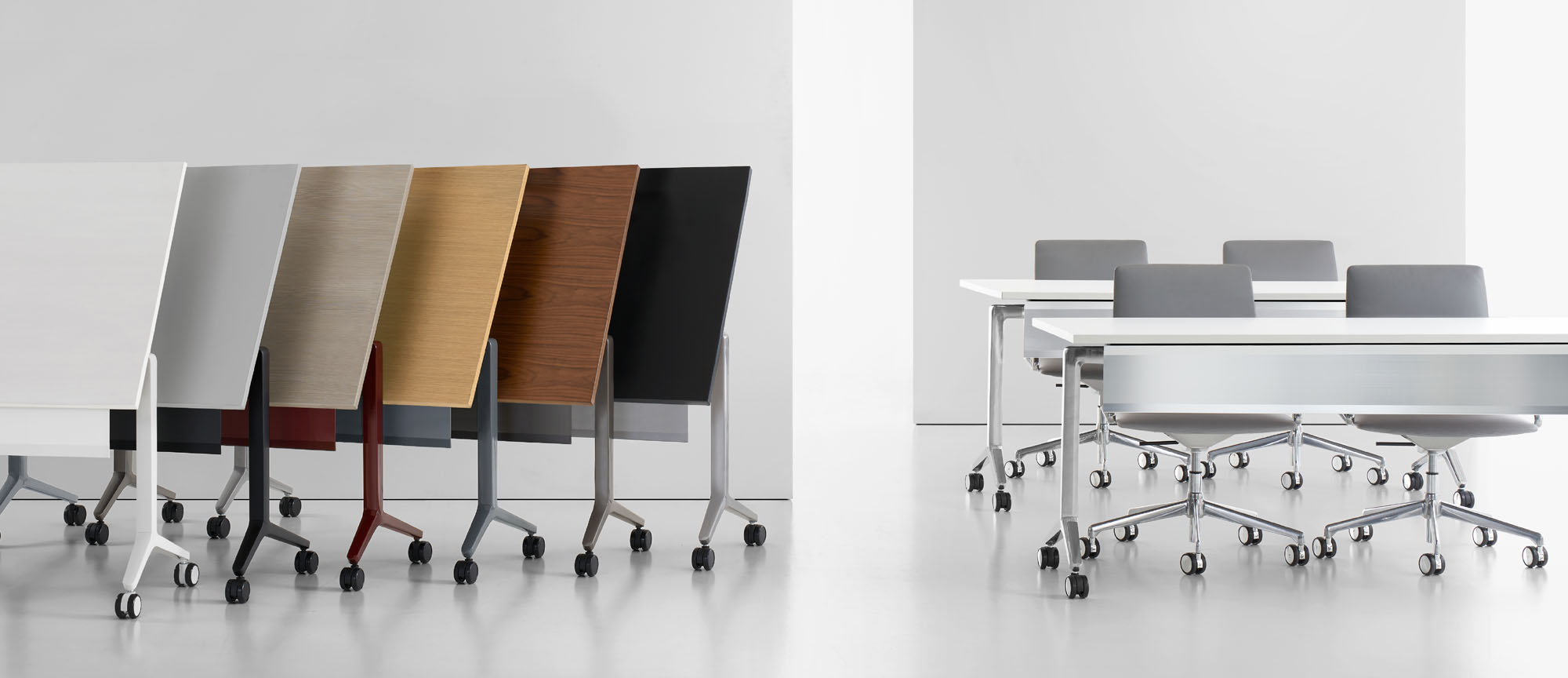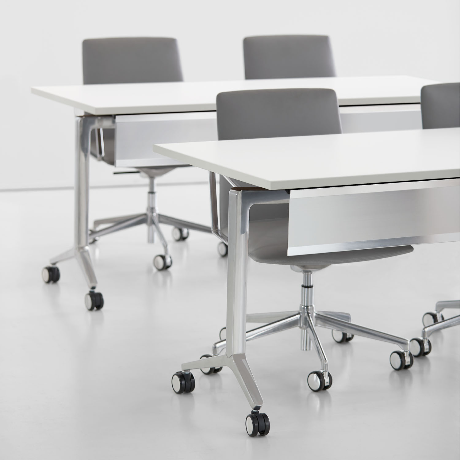 Hudson tables offer a contemporary form with a visually light composition. Designed for use in flexible environments that require reconfiguration, Hudson tables fold and nest for ease of movement and storage.