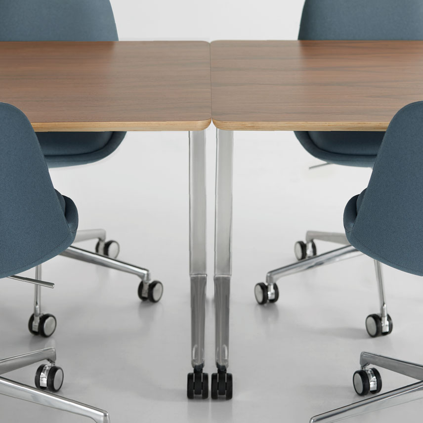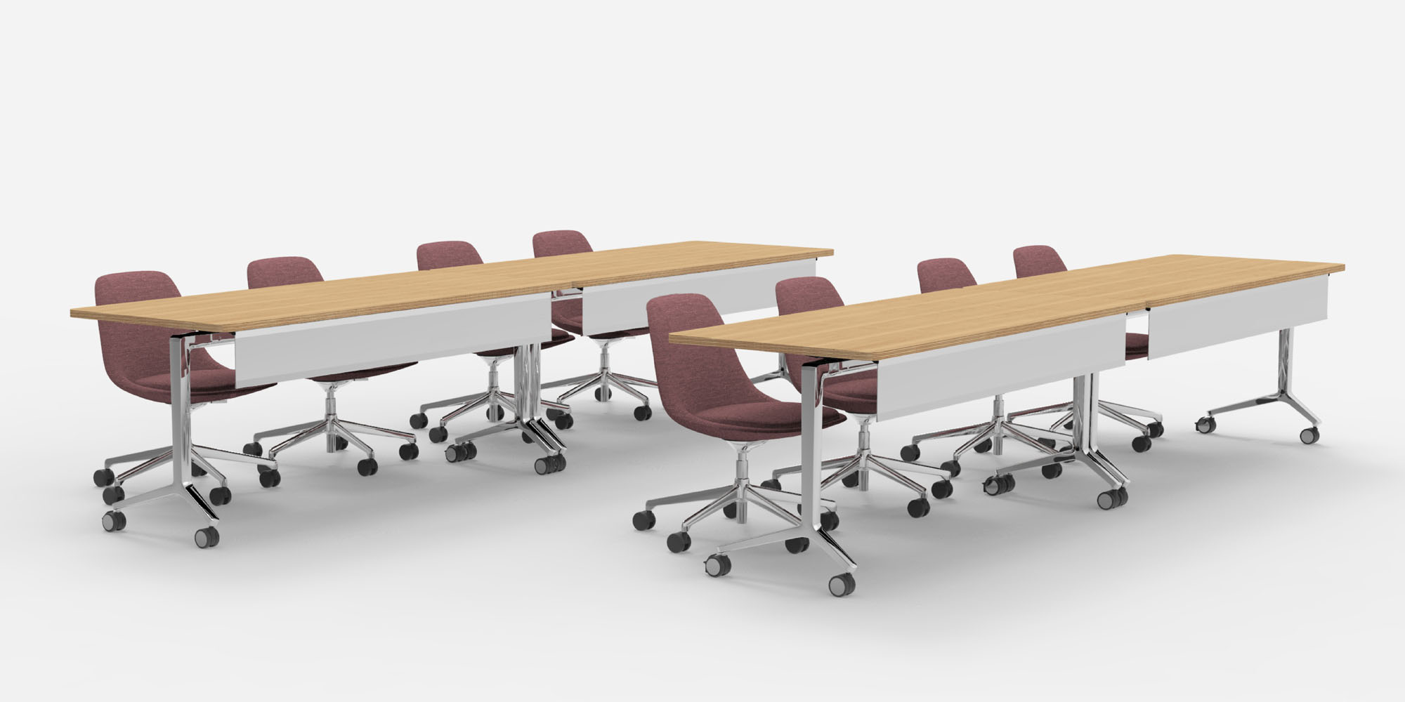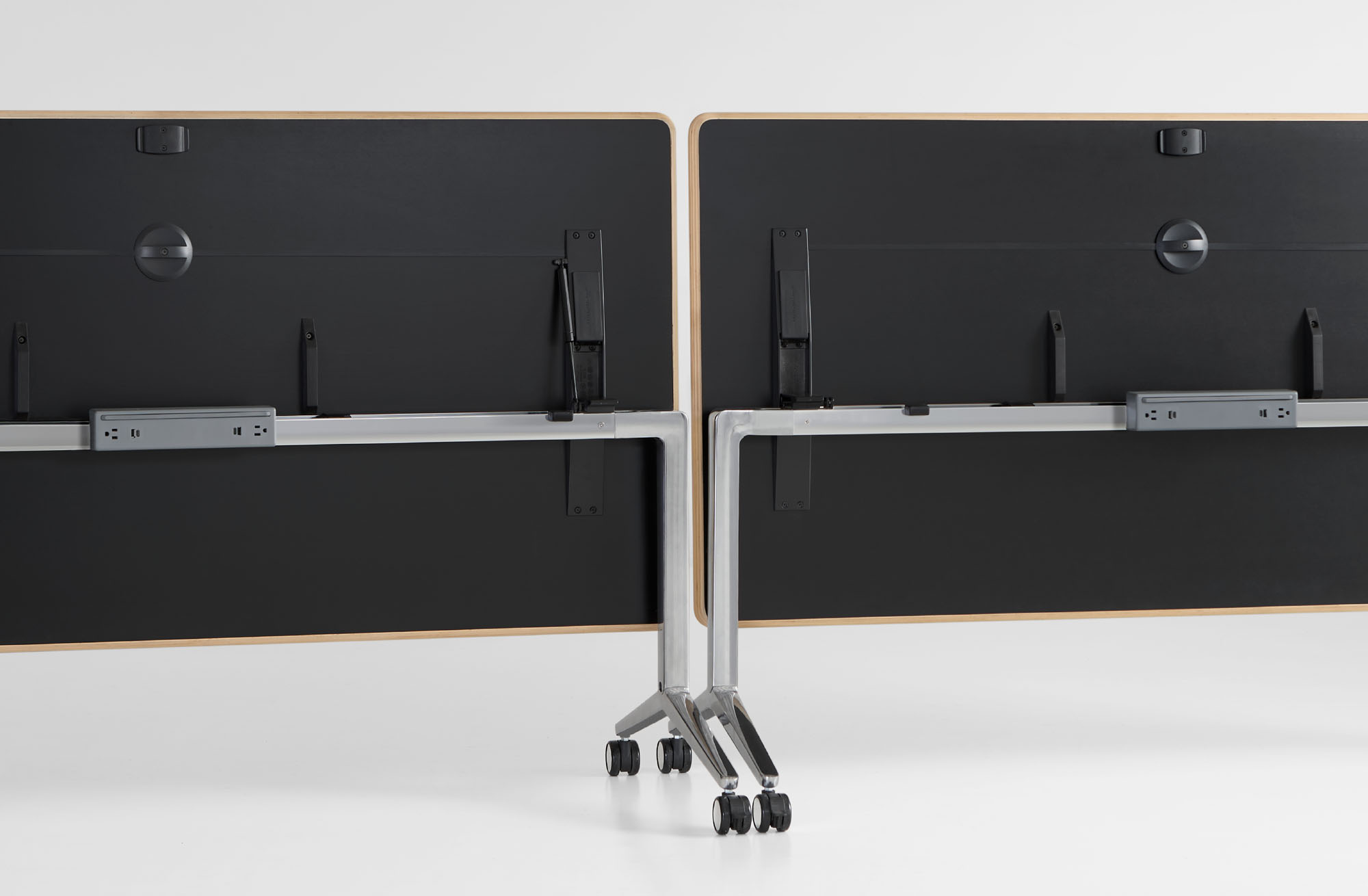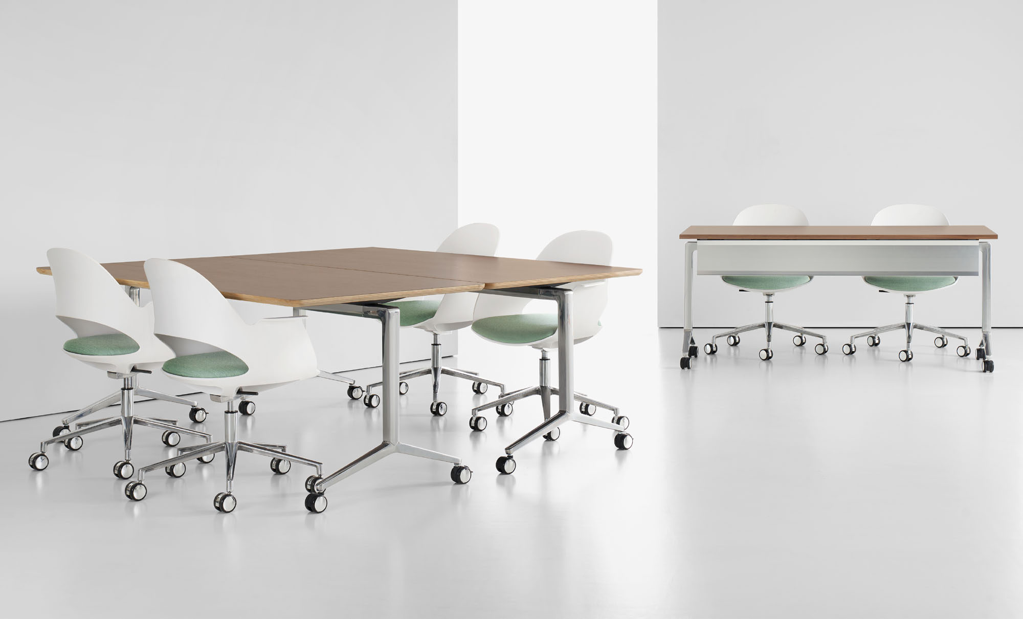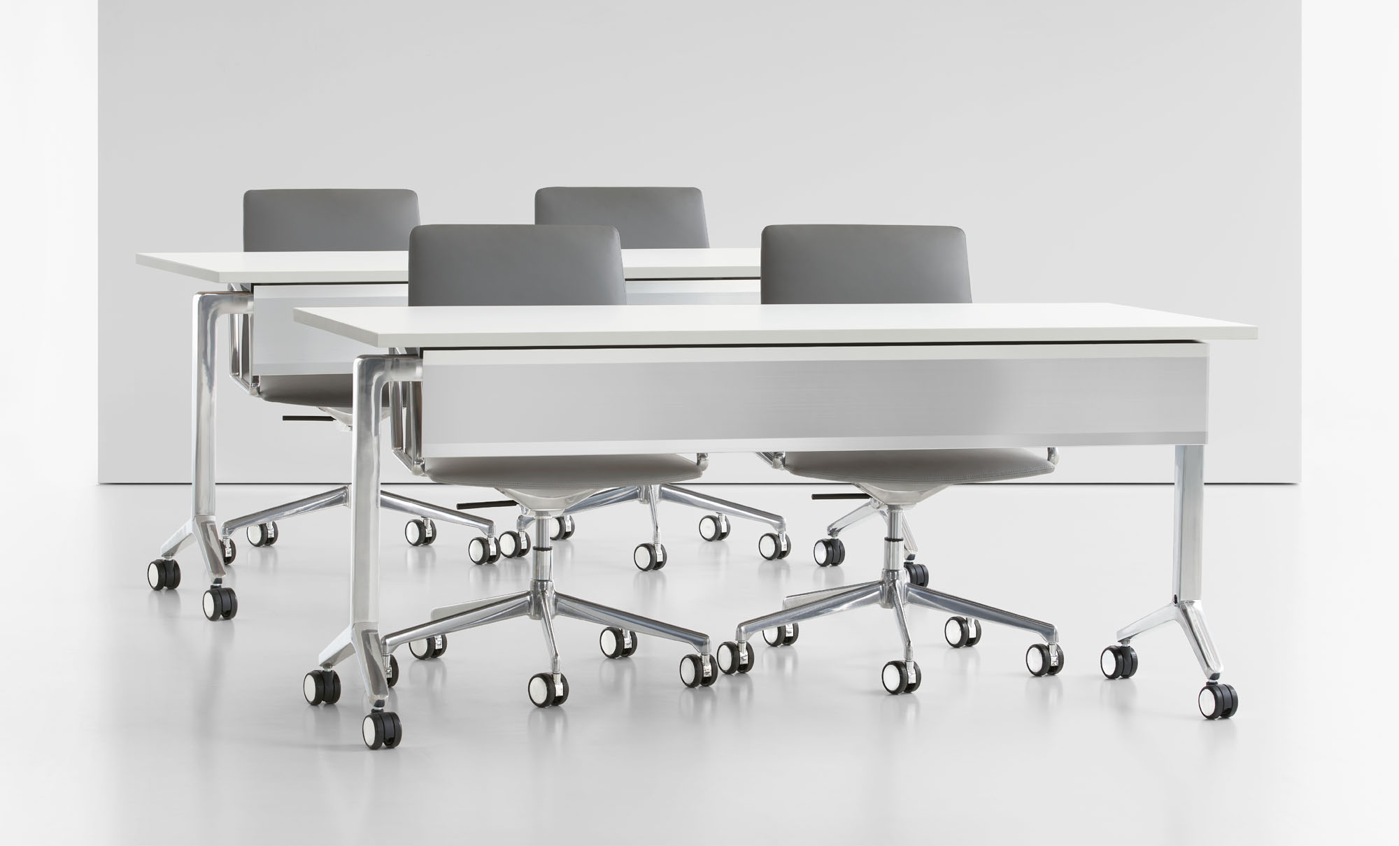 Hudson tables offer a contemporary form with a visually light composition. Designed for use in flexible environments that require reconfiguration, Hudson tables fold and nest for ease of movement and storage.