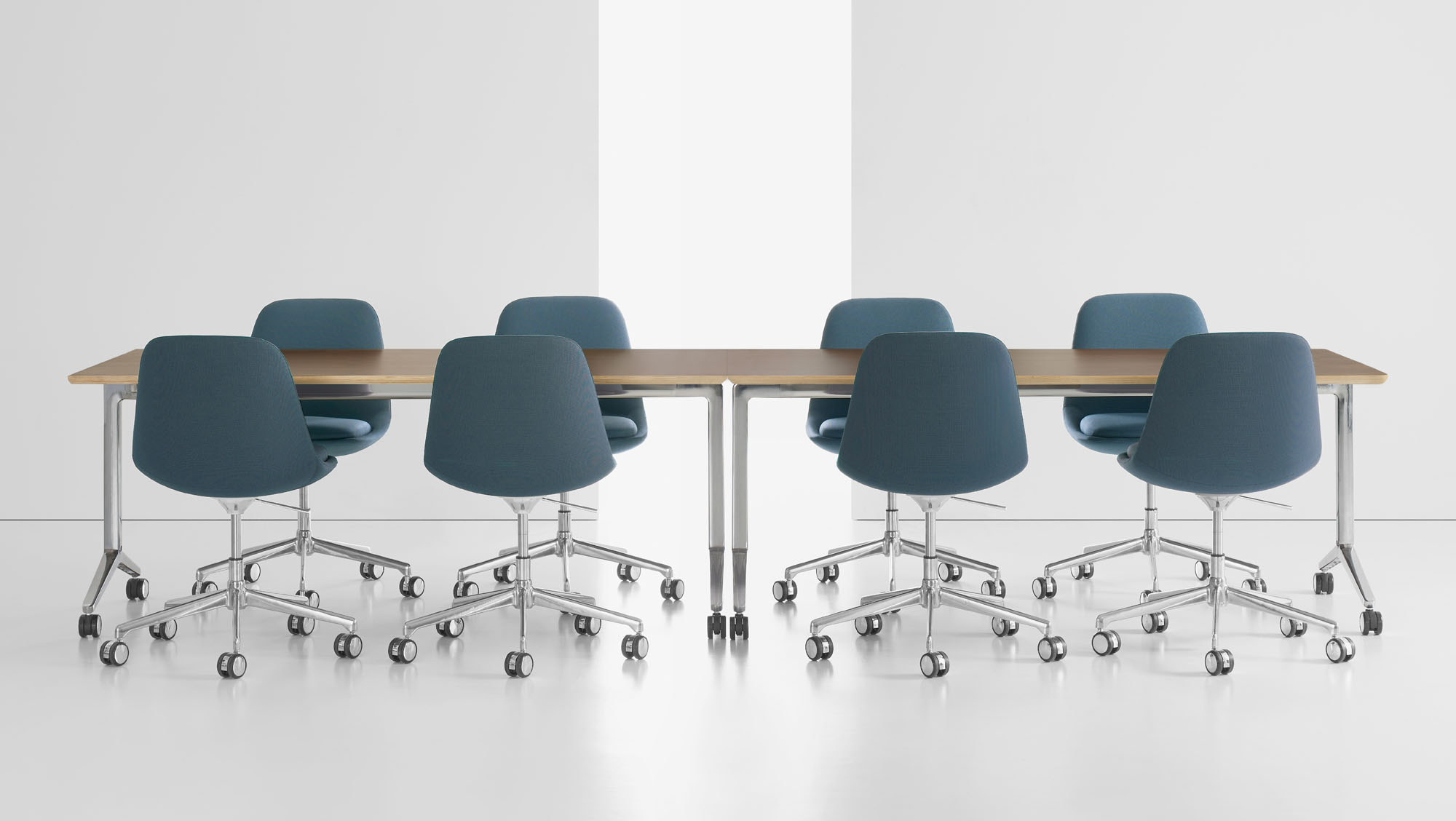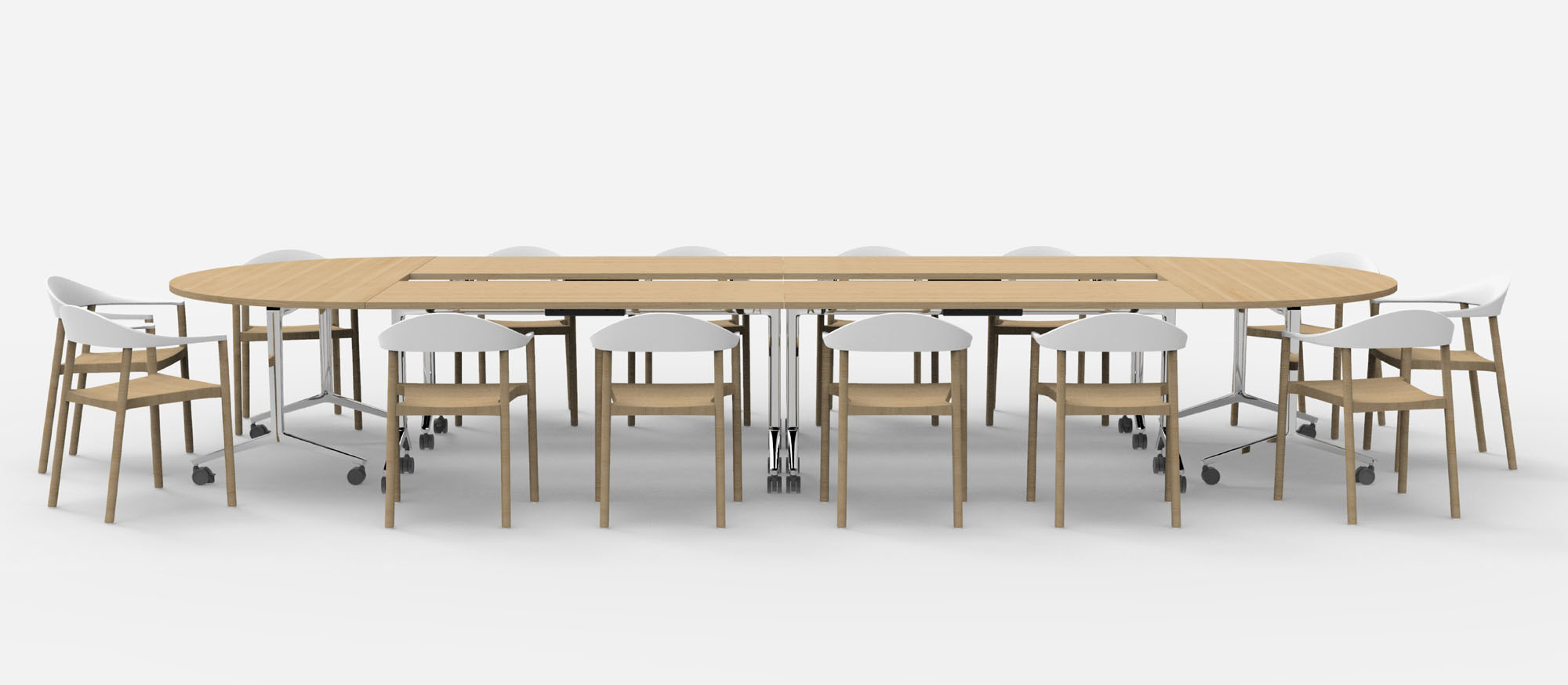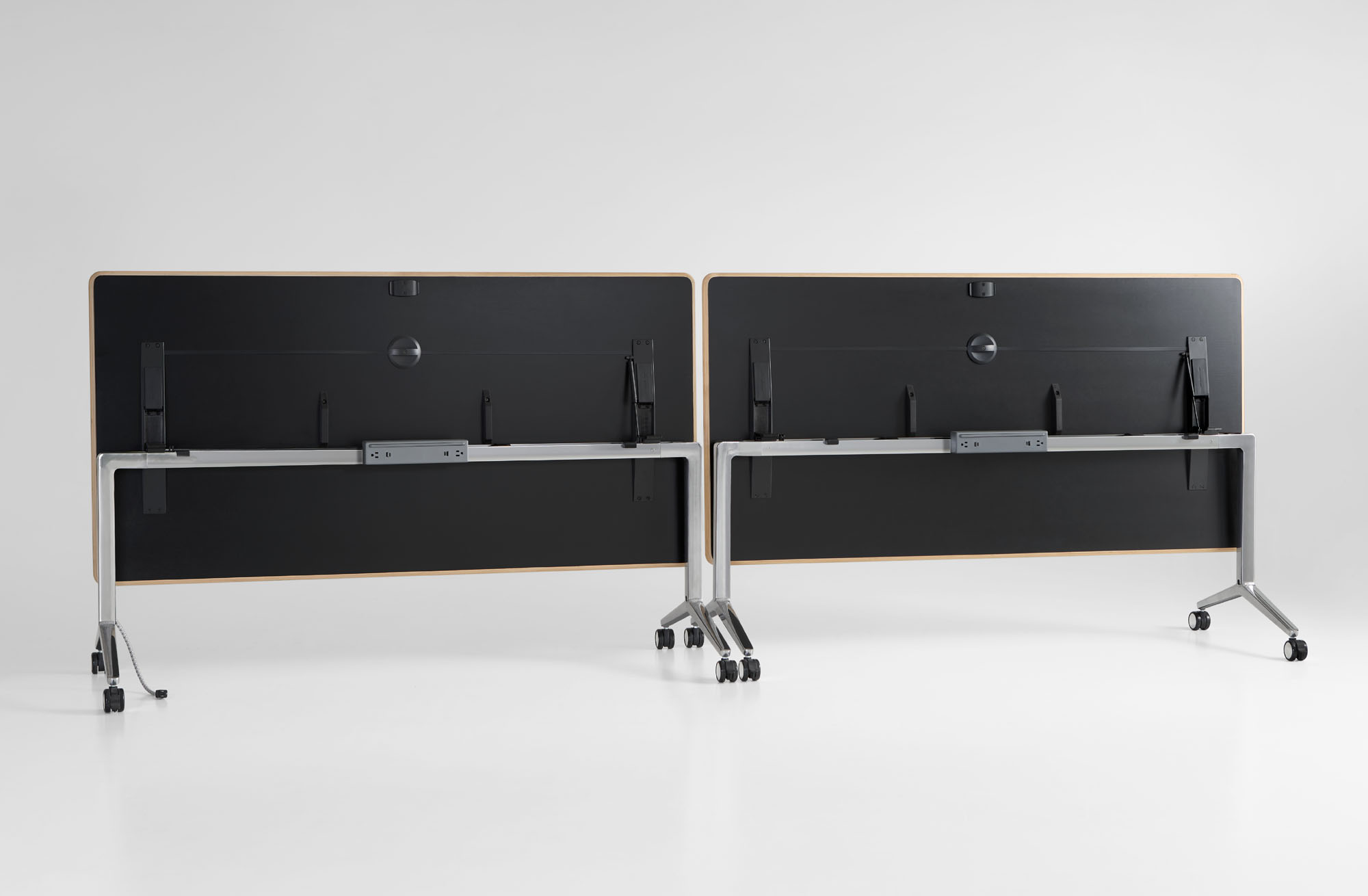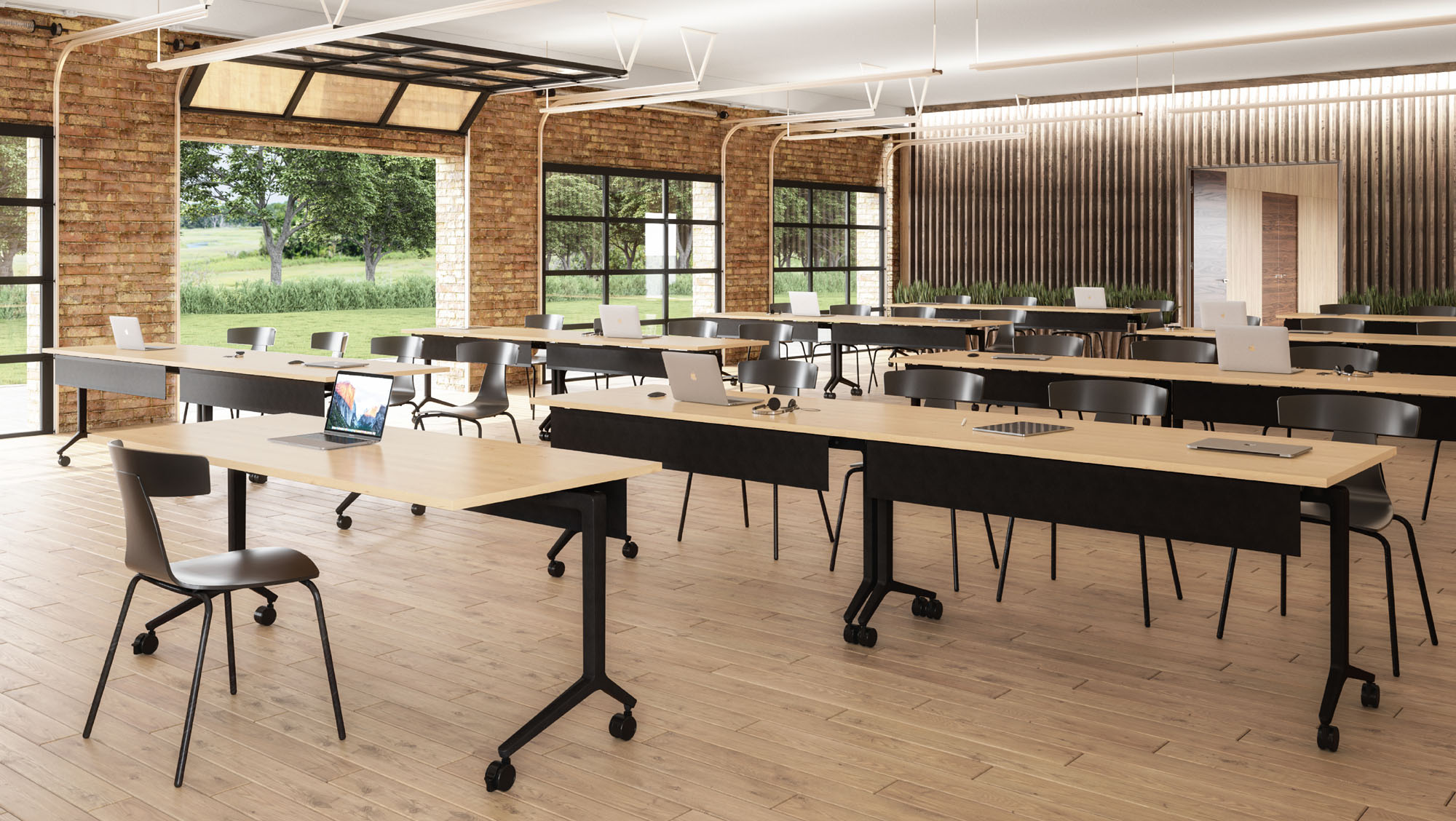 Hudson tables offer a contemporary form with a visually light composition. Designed for use in flexible environments that require reconfiguration, Hudson tables fold and nest for ease of movement and storage.