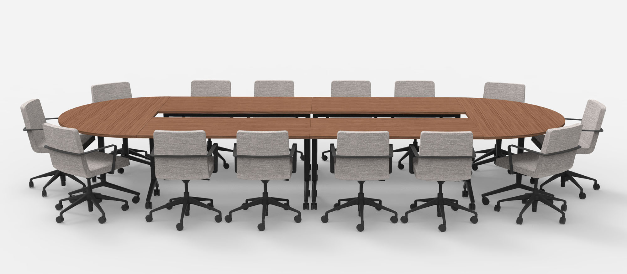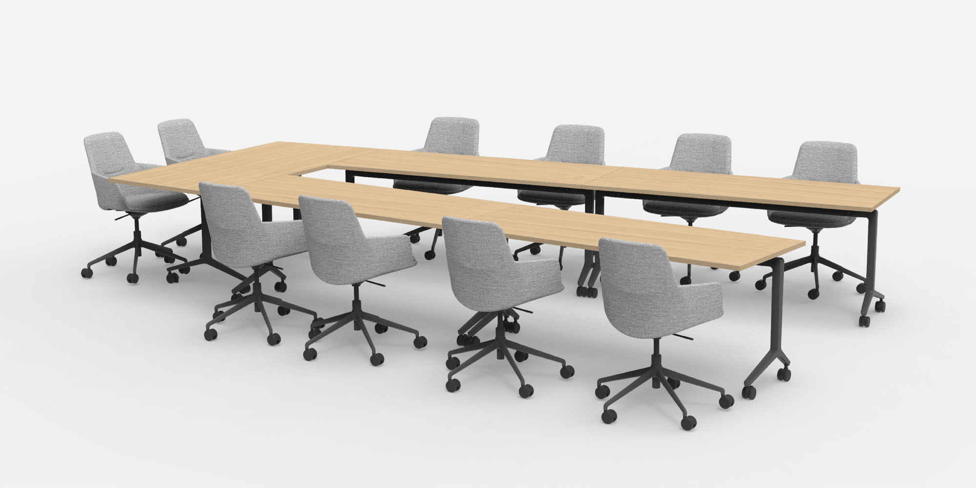 Hudson tables are offered in rectangular, teleconference, corner, and half-round shapes that include u-shaped, closed conference, and classroom configurations.