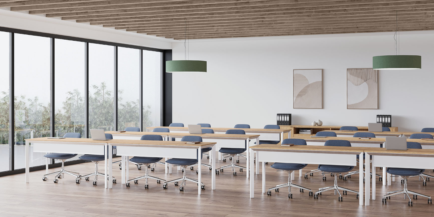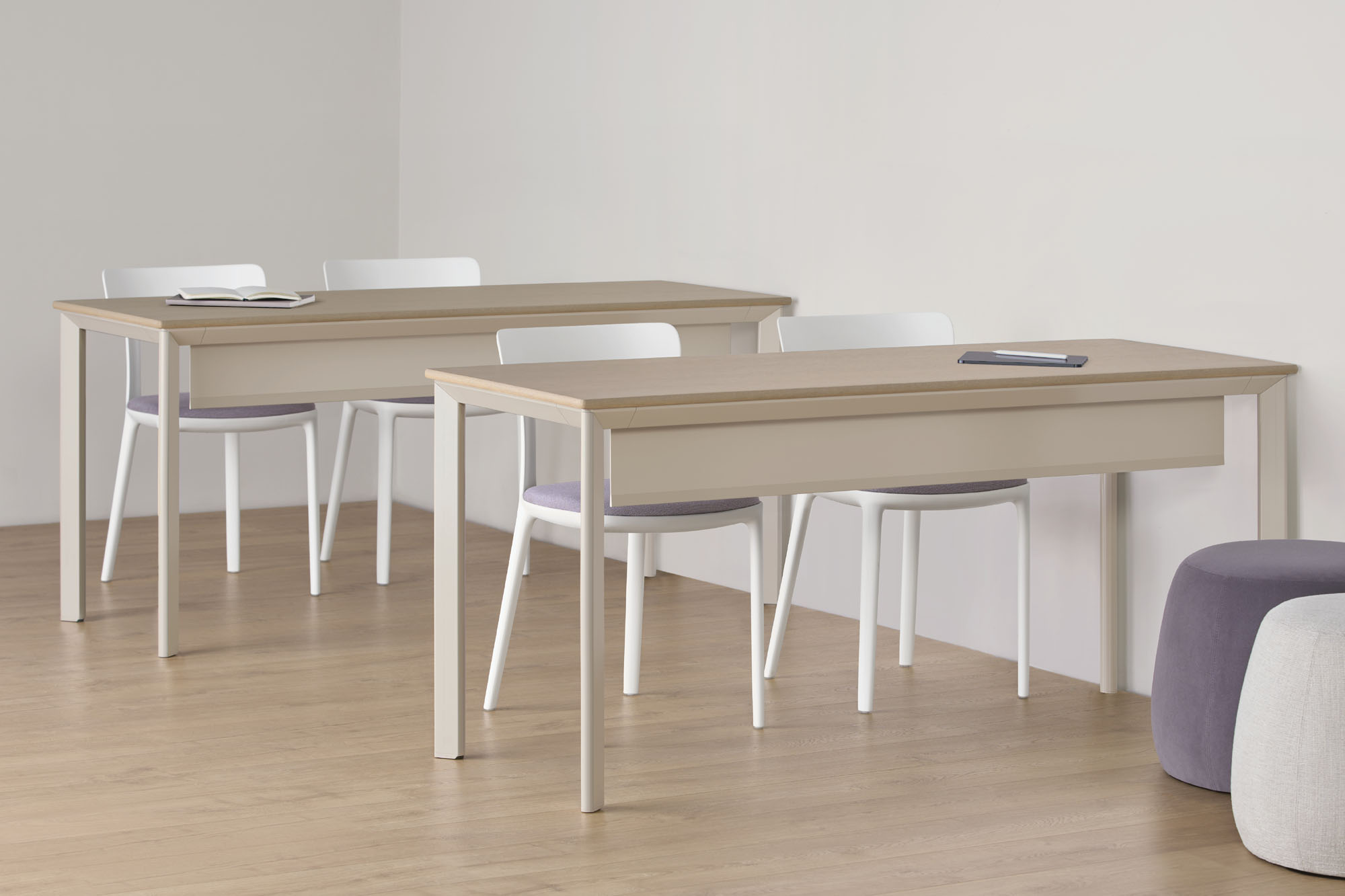 Training tables range from 24” wide to 90” long and are available in veneer, laminate, and solid surface options with several edge details.