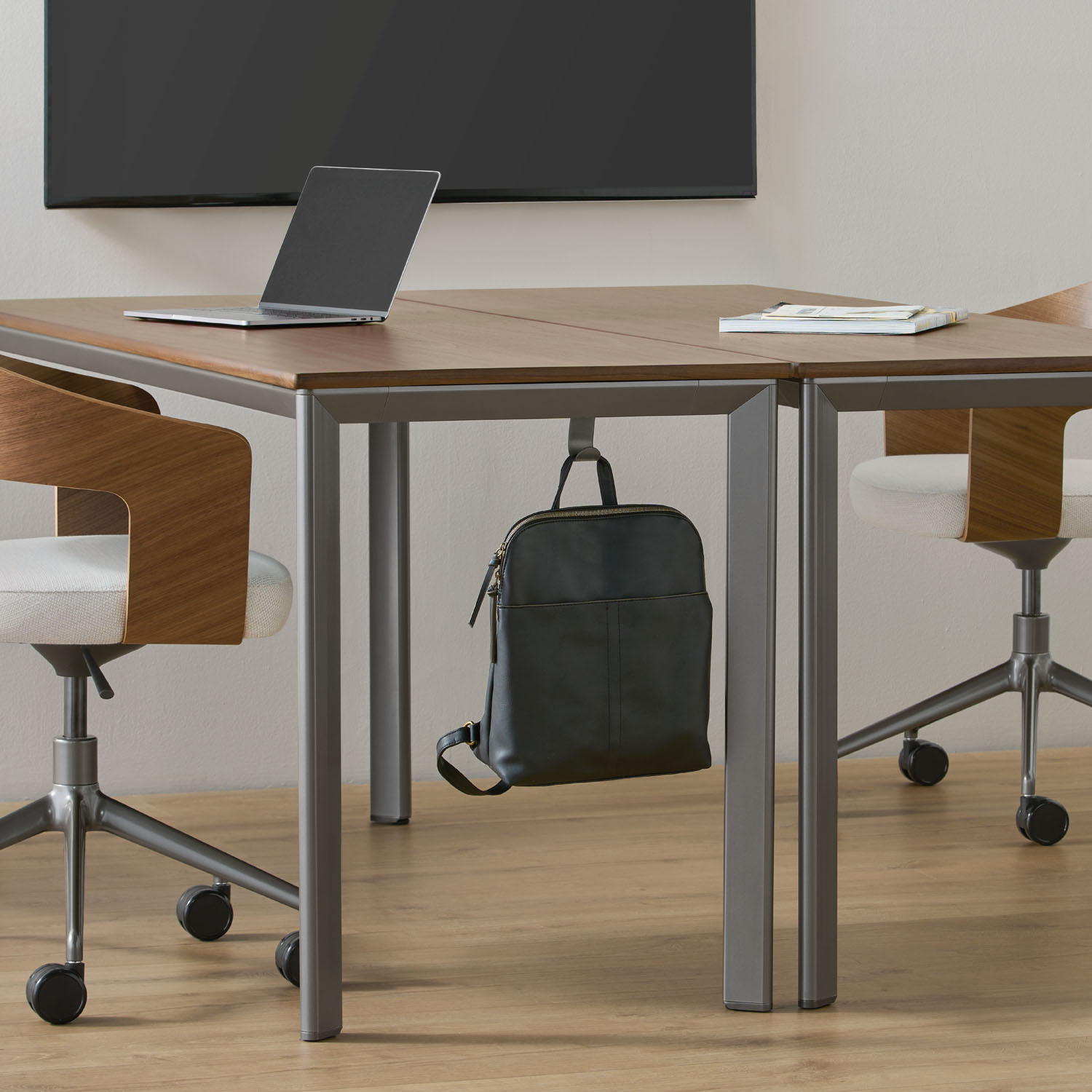 Intersection training tables discreetly manage technology through several undermount and surface mount power options and convenient wire management. Intersection tables also feature unique ganging brackets that can be used on any stationary or mobile table to accommodate multiple configurations.