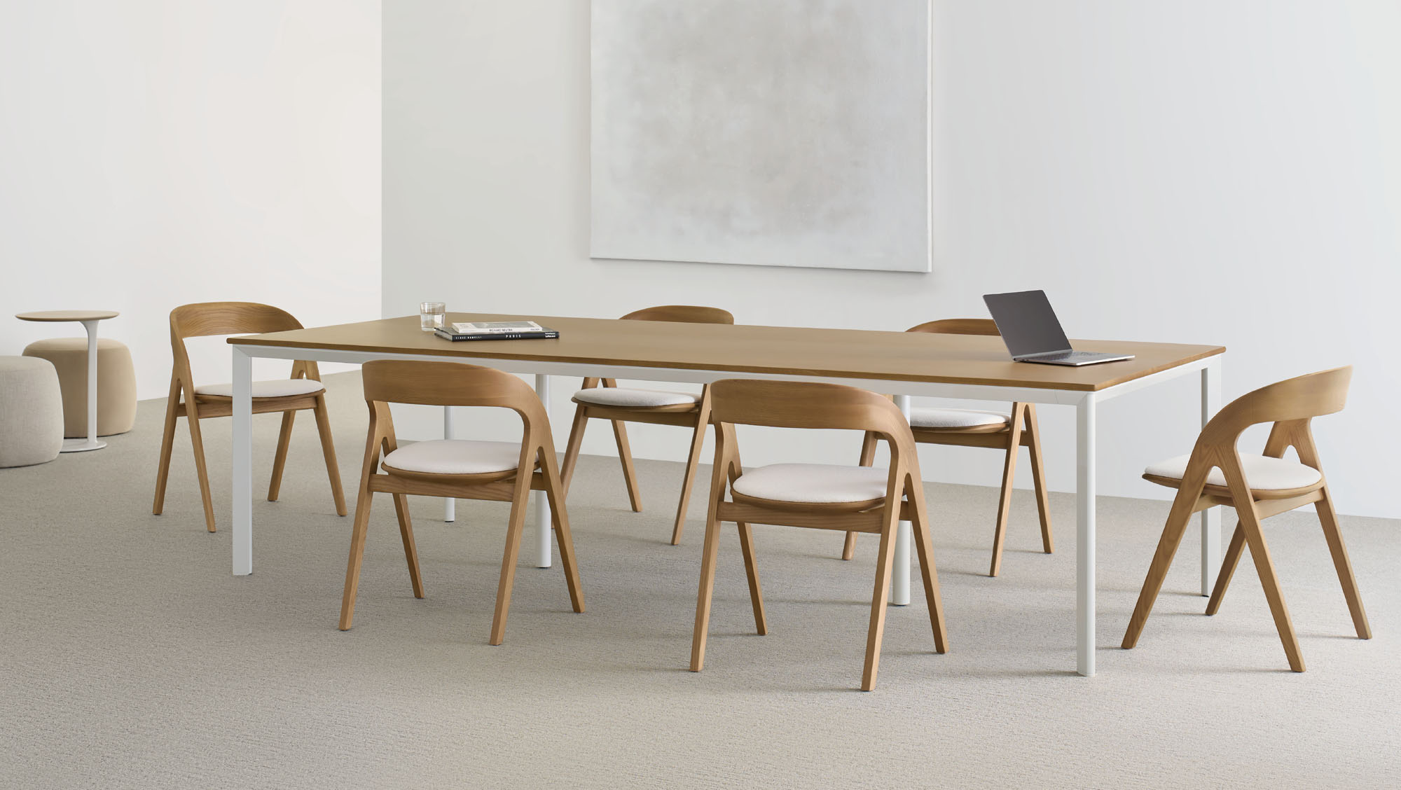 Thoughtfully designed and meticulously crafted, Intersection Table Collection achieves a bold and impactful presence with a lightweight and airy feel. The tables showcase an exquisite blend of form and function, assimilating to the architecture of a space and offering an elevated yet unobstructed presence within the modern workplace.