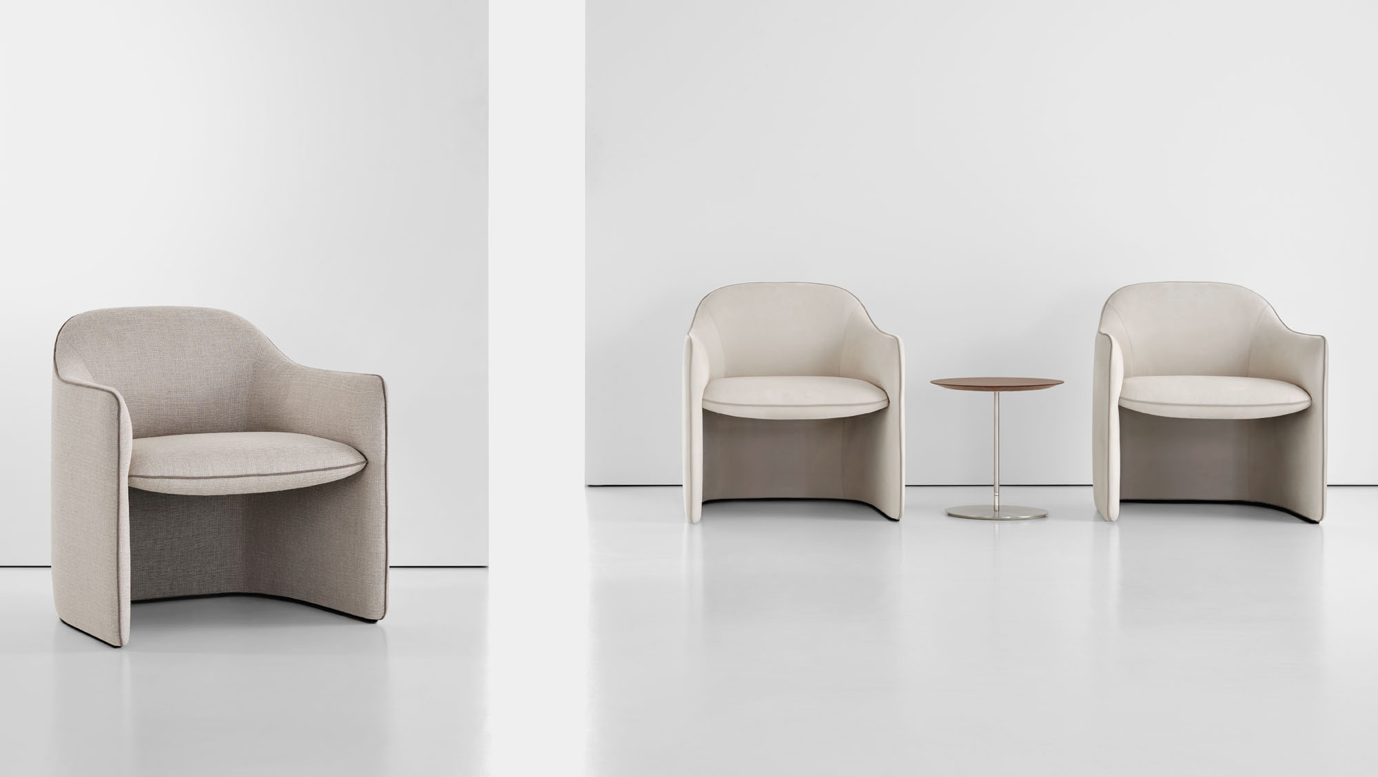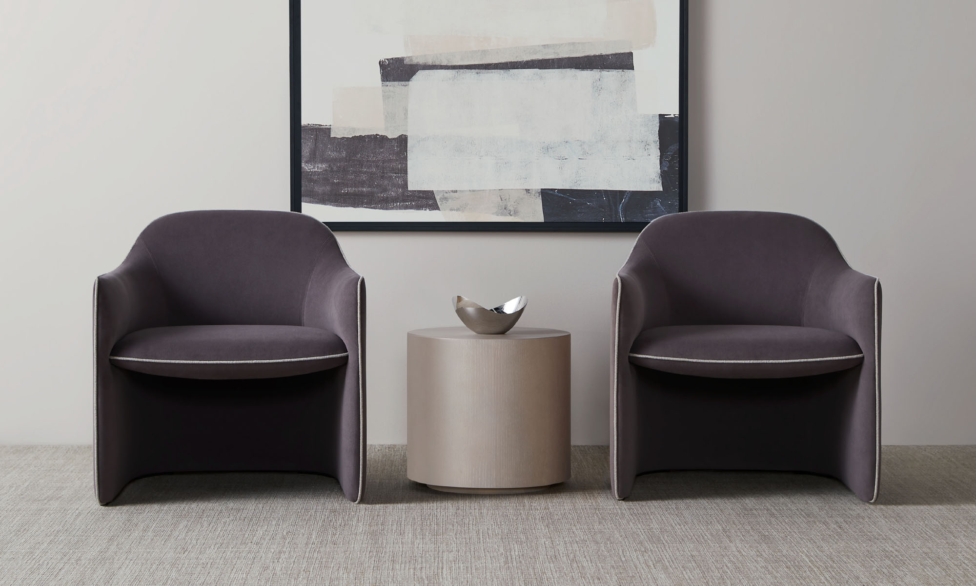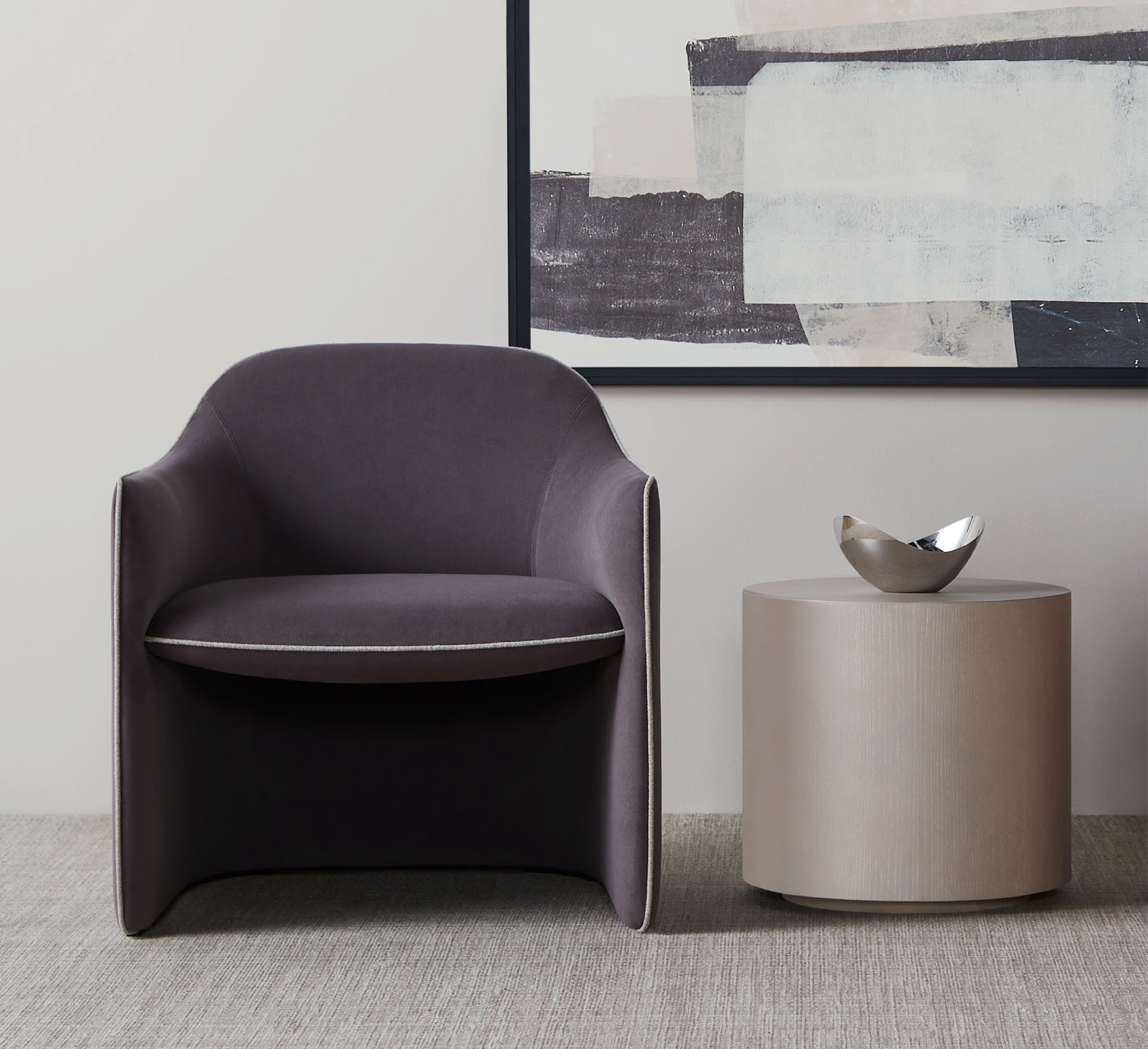 A contrasting welt along the perimeter adds a unique detail that elevates the piece above the predictable.