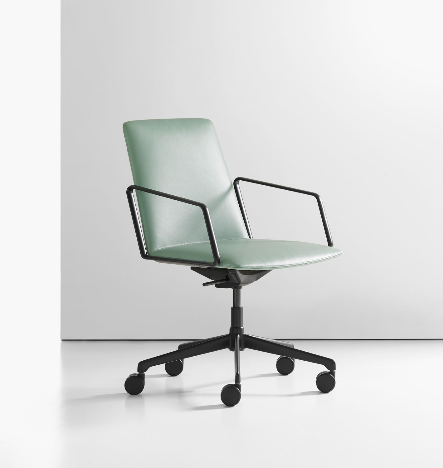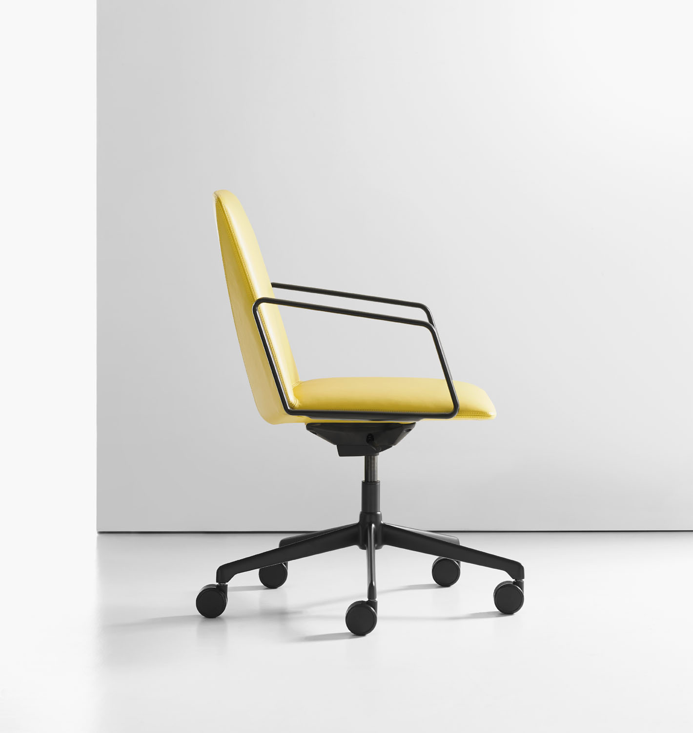 L.A.M was created by exploring the notion that a chair should serve as an interface between architecture and the human body. The interior of the contemporary L.A.M swivel chair is a soft, curved form.