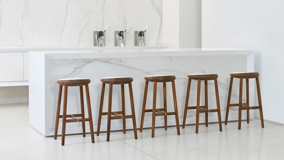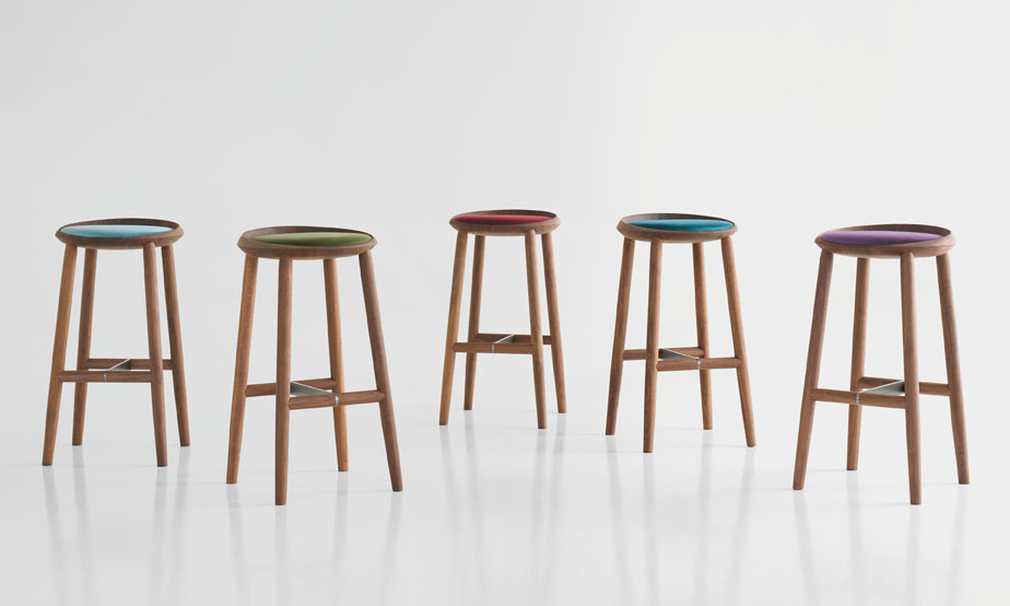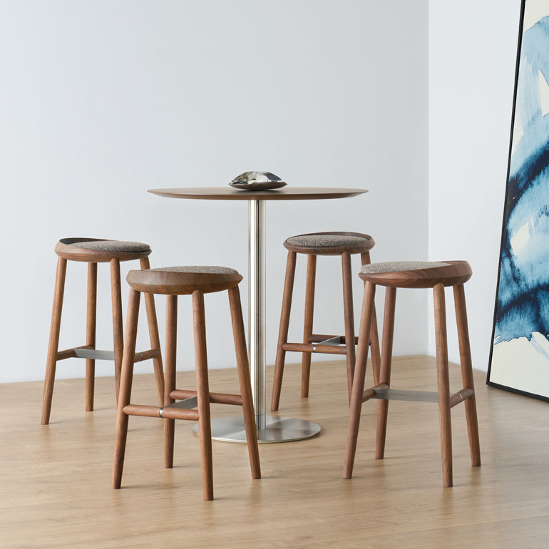 Largo is available in bar and counter height versions with an upholstered seat pad.