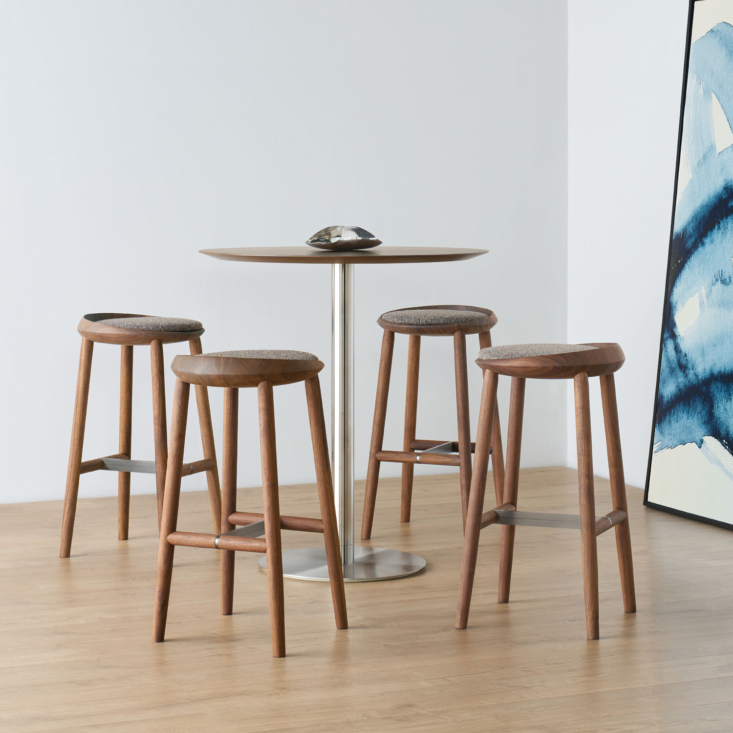 Elegant and functional, the Largo barstool is inspired by nature, resembling a welcoming nest perched on softly tapered wooden legs. The seat’s round frame presents a unique take on the classic barstool, employing a signature curved back that lends itself to optimal support. Cocooning and comfortable, Largo is a welcome reprieve from traditional barstools.
