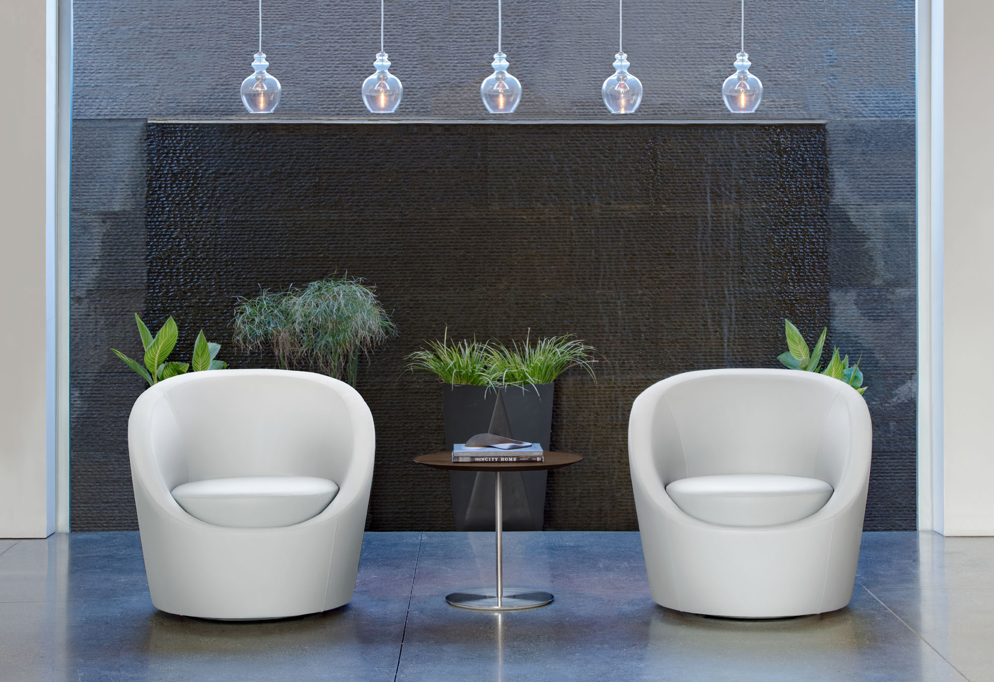Lily is available stationary, with casters, or with a self-returning swivel base.