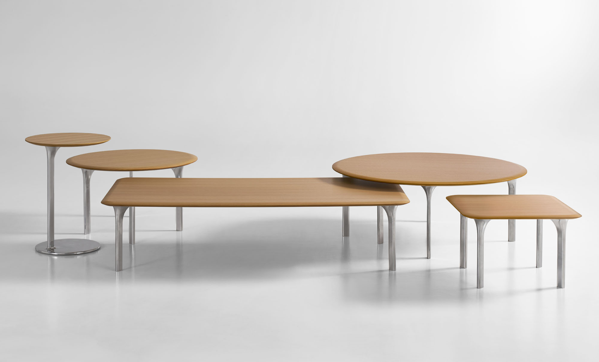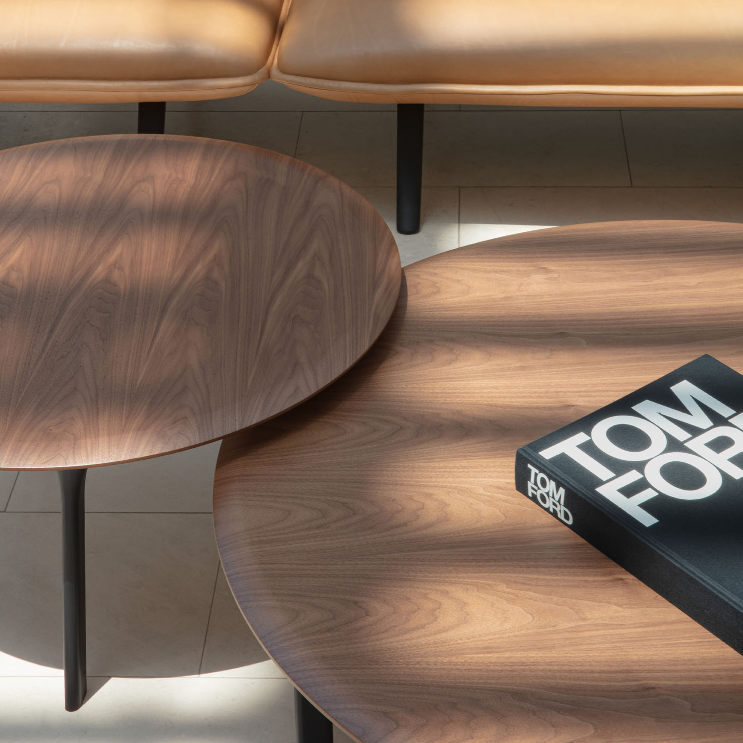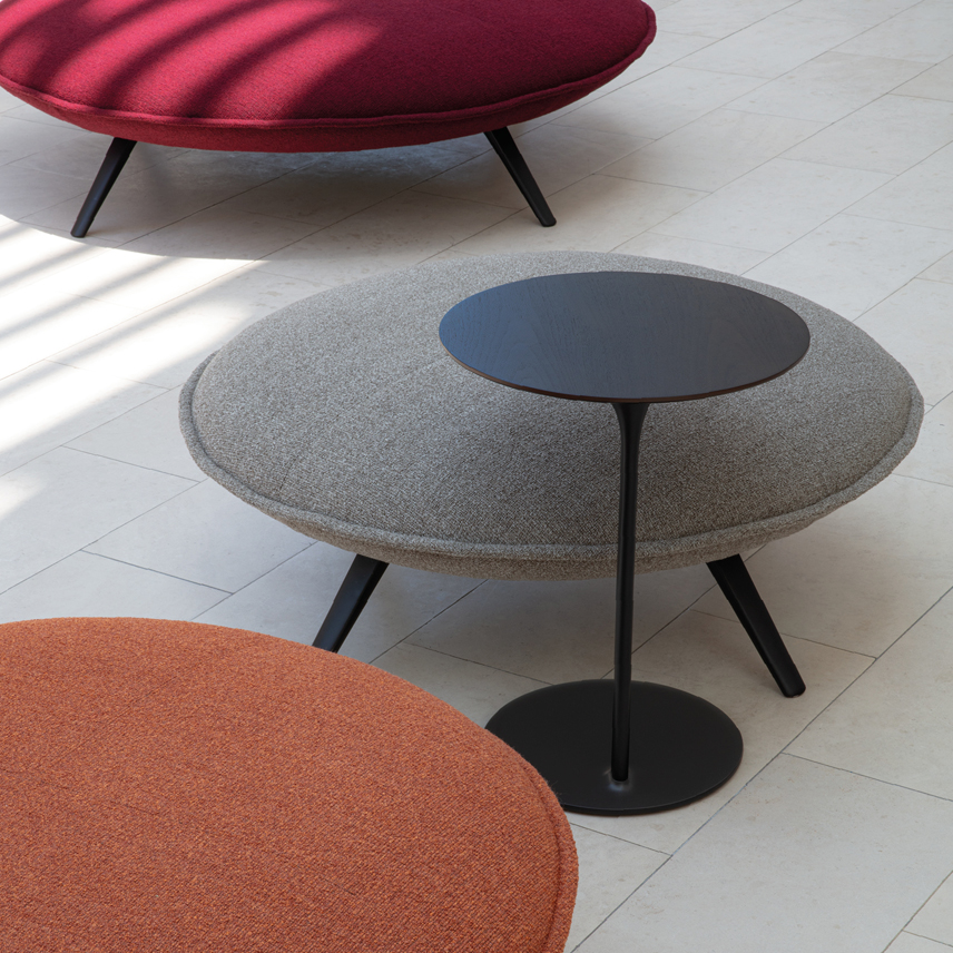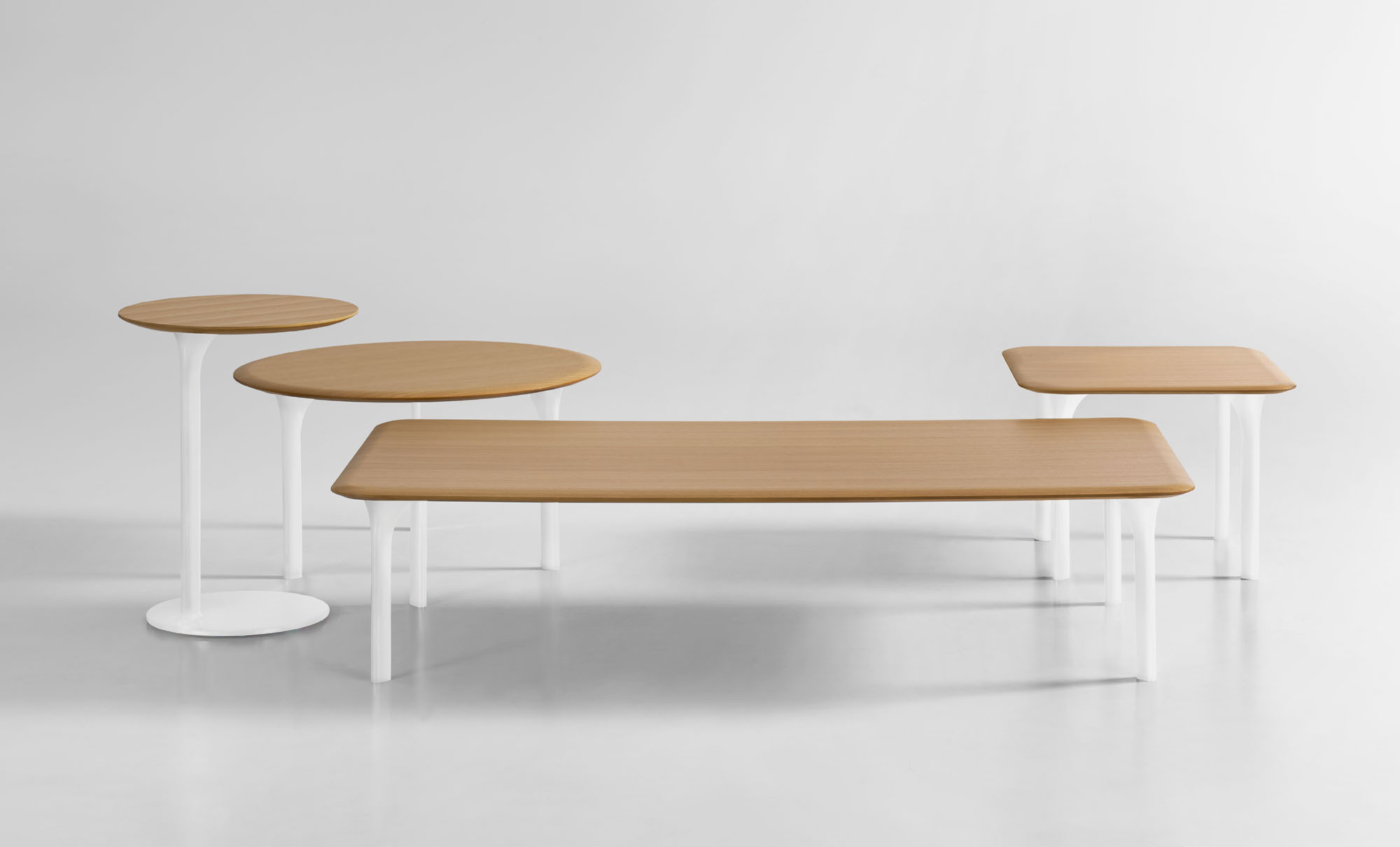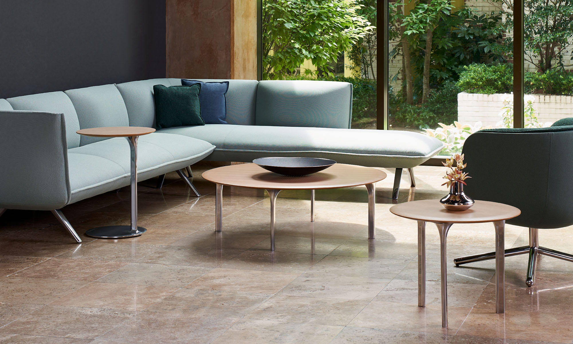 Luca is a collection of occasional and laptop tables designed to function as part of its modular seating system. Luca’s prominent angular legs balance the subtle curves of the tabletops.